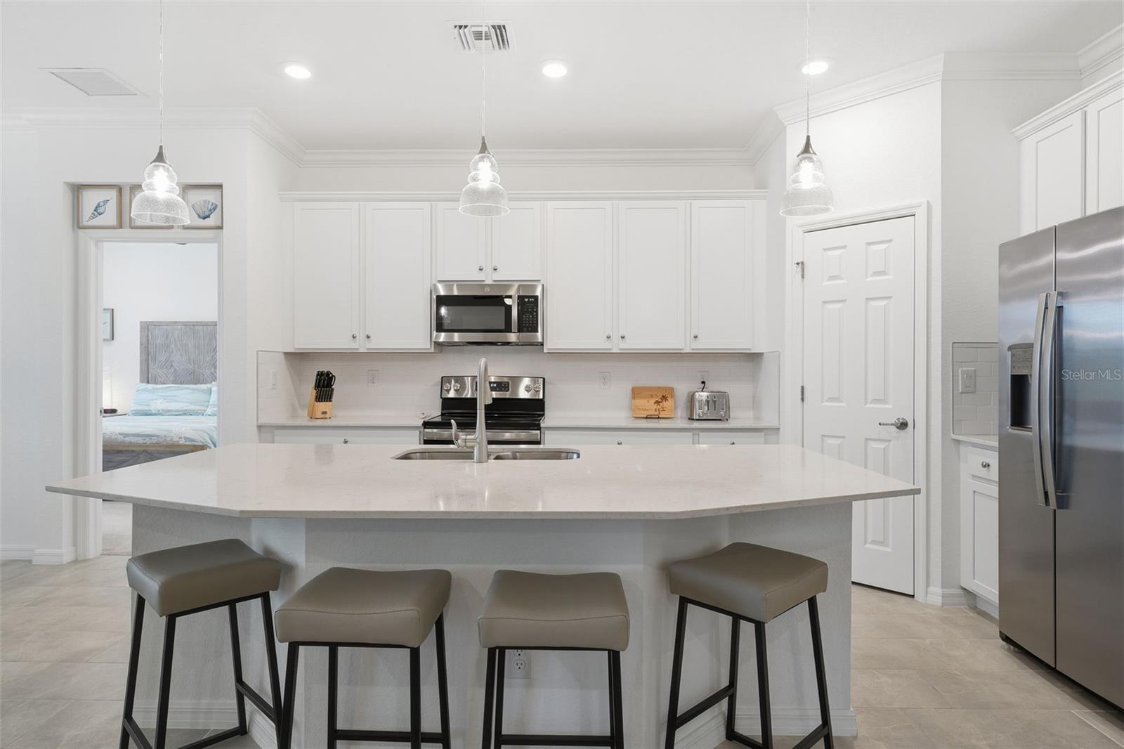 Agora é a sua oportunidade de possuir este condomínio MOBILIADO no último andar com belas vistas para o lago, localizado no muito procurado condomínio fechado de Sarasota National. Desfrute de vistas tranquilas na parte de trás enquanto se senta e relaxa na ampla varanda com tela, que é atualizada com guarda-sóis de privacidade e uma TV montada na parede. Na frente, você também pode ver a vista do lago que brilhará em tons dramáticos enquanto o sol se põe na água. Este condomínio é inundado de luz natural e possui uma planta de conceito aberto com 3 quartos adequados com muito espaço no armário e 2 banheiros. A unidade é equipada com belos móveis de alta qualidade que certamente impressionarão. Completamente livre de manutenção, esta casa está equipada com VIDRO DE IMPACTO HURRICANE e inclui uma garagem anexa para 1 carro e uma garagem pavimentada que oferece estacionamento adicional. A planta baixa de conceito aberto é perfeita para entretenimento, e uma parede de controles deslizantes na sala de estar permite que você desfrute de vistas pitorescas do lago enquanto se move pelo espaço. A cozinha é incrivelmente decorada com armários estilo shaker que oferecem muito espaço de armazenamento, uma enorme ilha com bancadas de quartzo cintilantes, backsplash de azulejos de metrô e um pacote de eletrodomésticos de aço inoxidável da GE. Outras atualizações incluem azulejos na diagonal em todas as áreas de estar principais, iluminação embutida extra, sancas decorativas, ventiladores de teto e luminárias. A grande suíte principal captura vistas deslumbrantes, e o banheiro privativo inspirado em spa possui uma grande pia dupla com muito espaço de armazenamento extra, box amplo de vidro, um vaso sanitário separado para privacidade e um ENORME closet. Localizado no lado oposto da casa criando privacidade para todos, você encontrará o segundo quarto no topo da escada e o terceiro quarto em uma alcova privada. O segundo banheiro é espaçoso e oferece muito espaço de armazenamento, além de um armário de roupa de cama extra. Há uma lavanderia ampla na unidade. TODA a manutenção exterior está incluída, como substituição do telhado, repintura do exterior; toda a manutenção do solo, incluindo cobertura morta e irrigação, TV a cabo, controle de pragas, água, esgoto, lixo e seguro de construção! Este condomínio é perfeito como residência a tempo inteiro, casa sazonal a tempo parcial ou até mesmo um grande investimento que irá gerar rendimentos substanciais de aluguer, quer seja alugado anualmente ou como aluguer sazonal de curta duração. Localizada numa das zonas mais sossegadas do condomínio, com acesso rápido ao portão traseiro do proprietário, permitindo-lhe entrar e sair do condomínio com facilidade. Viva como se estivesse em férias 5 estrelas com um clube de 30.000 pés quadrados com piscina estilo resort, banheira de hidromassagem, bar tiki ao ar livre que serve comida e bebidas diariamente, uma cafeteria, restaurante requintado, academia de ginástica de 7.000 pés quadrados com equipamentos e aulas de última geração, spa diurno, sala de jogos, bocha, bola de picles, tênis, parque para cães, playground e gramado para eventos! Sarasota National é um Santuário Internacional Audubon Bird de 2.400 acres, fechado por guarda, que oferece algumas das mais belas vistas de água e preservação de toda Veneza. Esta casa fica a poucos minutos do novo e emocionante centro da cidade de Wellen Park, do campo de treinamento de primavera do Atlanta Brave no CoolToday Park Stadium e de inúmeras comodidades da área. Explore 3 praias locais e o centro histórico de Veneza, tudo a menos de 15 minutos de distância! Se você sonhou em possuir um pedaço do paraíso da Flórida, não procure mais, Sarasota National... uma das principais comunidades de Veneza!
