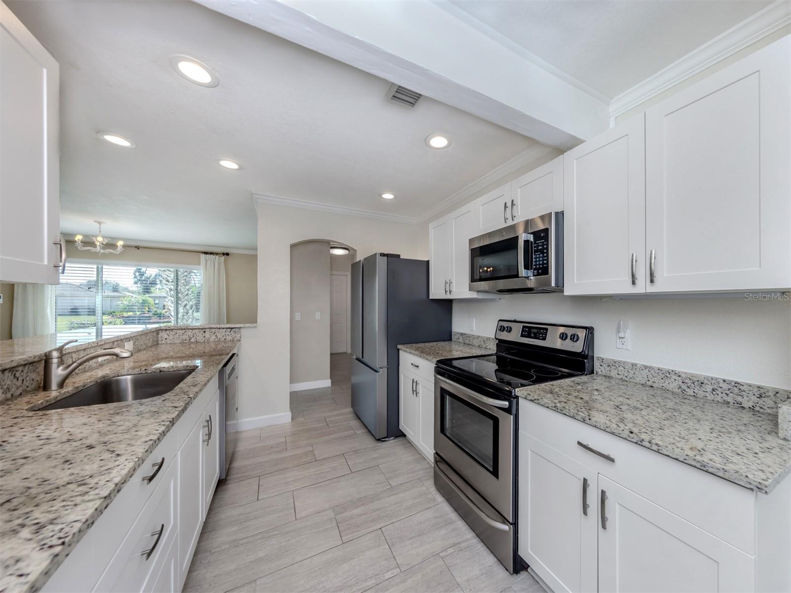Uma ou mais fotos foram virtualmente encenadas. Na água nos Jardins de Veneza! Esta linda casa de 3 quartos e 2 banheiros está situada em um beco sem saída tranquilo, sem HOA e sem taxas de CDD. Recém-pintada em tons neutros, a casa possui piso de porcelanato, janelas com impacto de furacão e uma planta aberta e arejada. A espaçosa área de estar e jantar apresenta elegantes portas em arco e flui perfeitamente para a cozinha e para a sala Florida (varanda). A cozinha oferece bancadas de granito, armários mais novos, uma nova geladeira de aço inoxidável, uma máquina de lavar louça mais recente e uma área de café da manhã com vista tranquila para o lago. A varanda é cercada por oito grandes janelas, uma porta resistente a furacões e uma porta adicional contra tempestades que leva ao pátio - perfeita para desfrutar do pôr do sol sobre a água. O quarto principal inclui prateleiras embutidas, um grande armário e banheiro privativo com box amplo. O segundo quarto fica ao lado de um banheiro completo que pode ser fechado para criar uma suíte de hóspedes privativa. O terceiro quarto, ideal como home office ou estúdio, possui armário, estantes embutidas e janelas nas duas faces com vista serena para o lago. A garagem para dois carros está excepcionalmente bem equipada com lavadora e secadora, abundantes armários de armazenamento, pia para lavanderia, área de trabalho com tampo de granito com gavetas e dois armários adicionais. Proprietário/agente. Convenientemente localizada perto de lojas, restaurantes, escolas e belas praias do Golfo, esta casa à beira-mar oferece conforto, funcionalidade e uma localização desejável. Imperdível!