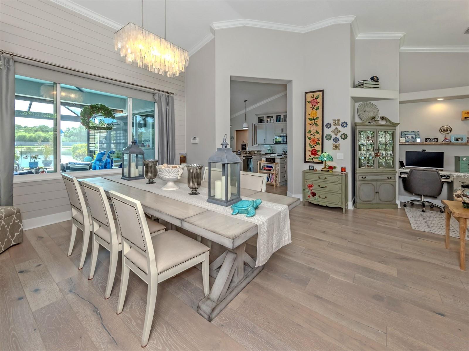 No enclave íntimo de Blue Heron Pond, esta bela residência personalizada de três quartos, dois banheiros, piscina e garagem para dois carros oferece uma vida refinada na Flórida, a poucos minutos das belas praias de Veneza. Nenhuma pedra foi deixada sobre pedra nesta casa meticulosamente atualizada. No interior, você encontrará ricos pisos de madeira fluindo por toda parte, complementados por portas internas de madeira maciça, sancas e marcenaria detalhada que aprimoram a suíte principal, a sala de jantar e a sala de família. Armários personalizados são apresentados em toda a casa, juntamente com um espaço de trabalho duplo integrado, ideal para a vida moderna. As venezianas adicionam privacidade e charme a todas as janelas. Esta casa é tão funcional quanto elegante, com armários personalizados para ótima organização e piso de garagem em epóxi. Grandes atualizações proporcionam tranquilidade, incluindo novas janelas contra o impacto do furacão, um gerador para toda a casa e um sistema de ar condicionado com três anos de uso. Saia para desfrutar de uma varanda cuidadosamente projetada com uma tela de visão clara e uma tela de furacão Kevlar, criando uma experiência interna e externa perfeita. O espaço é valorizado pela iluminação paisagística e pelo aquecedor de piscina Pentair, ideal para desfrutar durante todo o ano. Uma área exclusiva de parque para cães na varanda adiciona um toque raro e prático para os donos de cães. Recursos premium adicionais incluem um sistema de alto-falantes Sonos para toda a casa, um novo telhado de metal elegante, vida de baixa manutenção com baixas taxas de HOA, sem taxas de CDD e sem necessidade de seguro contra inundações. Esta pequena comunidade privada oferece tranquilidade enquanto permanece perto de praias, restaurantes requintados, instalações médicas, Sarasota Memorial Hospital, escolas com classificação A e tudo o que Veneza tem a oferecer, tornando esta casa uma rara mistura de luxo, conforto e conveniência.