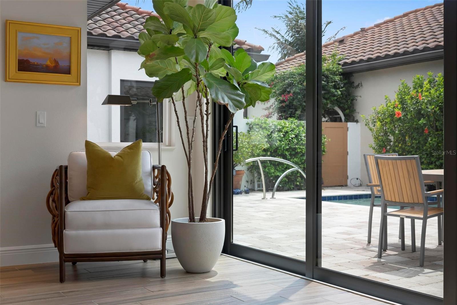 Posicionada na Ilha de Veneza, a poucos minutos de Venice Beach e a uma curta distância a pé de restaurantes, lojas e do núcleo cultural da Ilha, esta residência costeira contemporânea construída em 2018 oferece um nível de acabamento e coesão raramente alcançado em construções mais recentes. Os interiores com curadoria profissional refletem uma construção materialmente atualizada, onde as superfícies e seleções foram executadas como um programa de design unificado, em vez de atualizações incrementais. O design da residência principal Great Room oferece dois quartos, dois banheiros e meio, escritório com cama embutida personalizada e mesa integrada, complementado por uma casita de hóspedes individual com banheiro privativo, criando um arranjo flexível de terceiro quarto, ideal para hóspedes ou retiro privado. Disposta em torno de uma piscina no pátio privado, a propriedade foi projetada para uma vida interna e externa perfeita. A cozinha possui armários até o teto e bancadas de mármore, com mármore distribuído de forma consistente em todos os banheiros. Os azulejos, pisos e acabamentos da piscina foram atualizados em paralelo, criando continuidade nos espaços internos e externos. Um lavabo dedicado com acesso à piscina aumenta a funcionalidade para entretenimento. Os detalhes arquitetônicos incluem sancas, rodapés substanciais, revestimentos e uma paleta refinada executada com acabamentos de Benjamin Moore. Instalações hidráulicas, iluminação e hardware foram totalmente atualizadas. Uma camada de mobiliário selecionada - disponível sob contrato separado - inclui seleções de Serena & Lily, Palecek, Ro Sham Beaux, Quadrille, Tritter Feefer e French Market Collection. Piscina privativa no pátio com casita e floreiras italianas importadas completam a composição. Uma residência definida não apenas pela quantidade de quartos, mas pela integridade do design, continuidade material e proximidade com o melhor da vida na Ilha de Veneza.