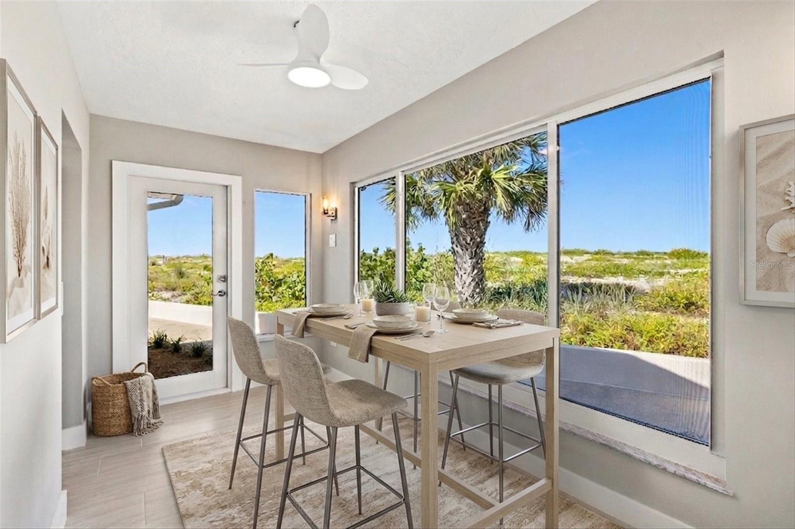 Uma ou mais fotos foram virtualmente encenadas. Villa Chateaugay – Um retiro raro à beira do Golfo Experimente uma oportunidade verdadeiramente excepcional de possuir uma villa única em frente ao Golfo que vive como uma casa unifamiliar privada, ao mesmo tempo que oferece o estilo de vida fácil e livre de manutenção da vida em condomínio. Perfeitamente posicionada em uma comunidade à beira-mar acolhedora e socialmente vibrante, esta residência lindamente remodelada é uma joia rara. A Villa 1 é a única residência independente e térrea do complexo - oferecendo a privacidade e a sensação de uma casa unifamiliar à beira do Golfo. Com mais de 1.300 pés quadrados de área de estar cuidadosamente projetada, esta vila totalmente renovada dispõe de entrada privativa, planta baixa em conceito aberto e muita luz natural por toda parte. Janelas e portas do impacto do furacão, persianas de plantações e vistas serenas do Golfo, emolduradas pela folhagem das dunas costeiras, criam uma atmosfera convidativa e tranquila. O coração da casa é uma cozinha moderna e deslumbrante, projetada tanto para a vida cotidiana quanto para o entretenimento. Equipado com armários de madeira maciça de 42 polegadas, gavetas em cauda de andorinha de extensão total, ferragens de fechamento suave, bancadas de quartzo, eletrodomésticos de aço inoxidável e uma ilha contrastante de bom gosto, ele flui perfeitamente para a área de estar. Um backsplash de ladrilho de vidro azul e uma despensa adicionam estilo e funcionalidade. A espaçosa suíte principal oferece um retiro tranquilo com acesso direto à marquise com ar-condicionado e uma varanda privativa - perfeita para desfrutar da brisa costeira. O banheiro privativo é discretamente escondido, proporcionando conforto e conveniência, enquanto um closet de tamanho generoso abriga uma lavadora e secadora empilhadas em tamanho grande, um luxo incomum na vida em condomínio. Quase cada centímetro desta villa foi meticulosamente atualizado, incluindo linhas de água e esgoto, sistema HVAC, janelas e portas de vidro de impacto, novos eletrodomésticos, pisos, acabamentos, portas de núcleo sólido, ferragens e todos os encanamentos e luminárias. Aprimoramentos adicionais, como pintura neutra fresca, guarda-sóis motorizados na marquise, venezianas e um depósito externo completam a casa. Chateaugay é uma comunidade bem administrada e bem mantida, conhecida por sua atmosfera amigável e estilo de vida envolvente. Os residentes aproveitam as reuniões ao pôr do sol, relaxam ao redor da piscina comunitária aquecida e outras atividades comunitárias. Esta comunidade bem conservada desfruta de telhados e garagens mais novos, edifícios recém-pintados, paisagismo atualizado e estacionamentos atraentes. Localização perfeita - a poucos passos do Venice Yacht Club, do Freedom Boat Club e do Crow 's Nest. Villa Chateaugay oferece a rara combinação de estilo de vida unifamiliar em frente ao Golfo por uma fração do preço, combinada perfeitamente com a facilidade e tranquilidade da propriedade de um condomínio. Não é hora de vivenciar a vida na praia em um lugar tão especial?