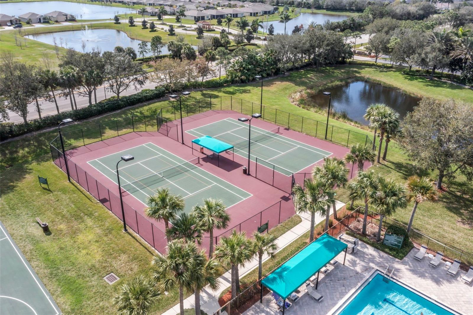 NOVA cozinha! Armários de bordo, aparelhos SS LG mais recentes, linha de indução, refrigerador de vinho embutido, bancadas de quartzito, perfeitas para entretenimento. Este espaçoso 2 quartos, mais deno/escritório, possui ladrilhos diagonais em áreas de estar, pisos de madeira em quartos, armários personalizados no quarto principal, sala de estar e sala de estar, canto do café da manhã e sala de jantar, grande lanai prolongado e gerador de casa inteira. Perto de comodidades comunitárias, incluindo piscina em estilo resort, clube, sala de fitness, área de recreação e quadras de tênis. Comunidade fechada.