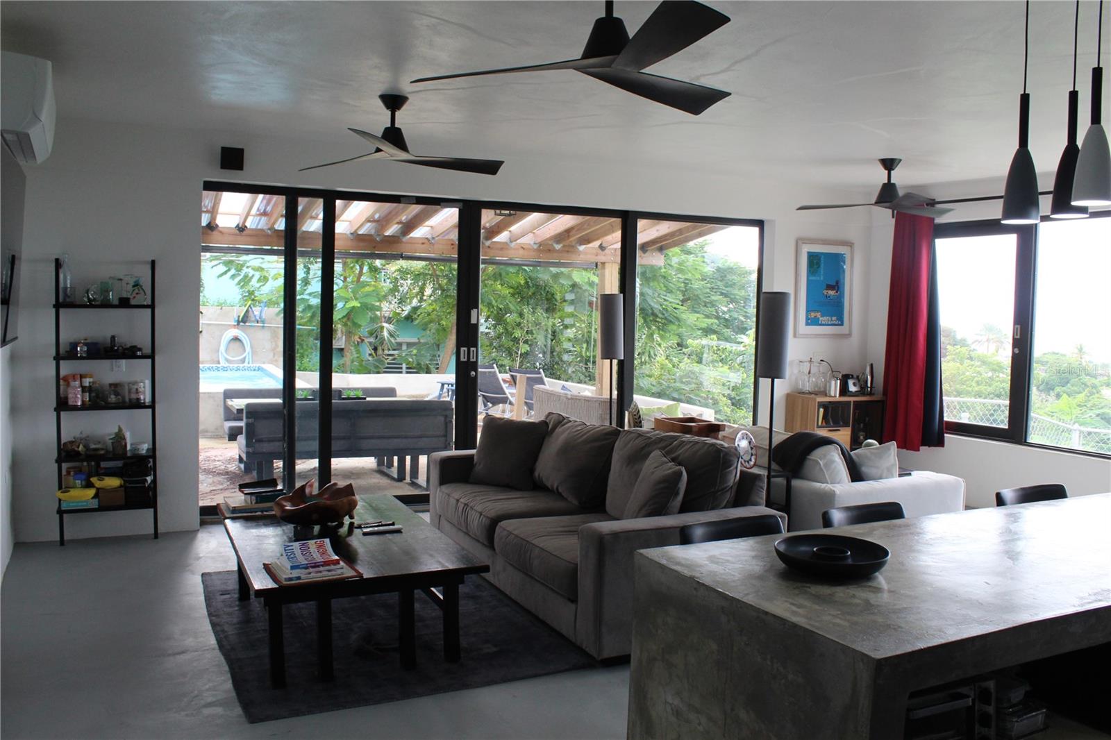 Bem-vindo ao Vista Bella, uma deslumbrante casa contemporânea com grandes janelas de vidro que oferecem vistas deslumbrantes. O foco do interior da casa é uma grande sala que abrange uma cozinha considerável, azulejos personalizados com uma ilha de 14 pés, ideal para entusiastas da culinária, e uma espaçosa sala de estar dividida em áreas de estar e de entretenimento. Uma parede de vidro de 18 pés de largura oferece vistas ininterruptas da exuberante ilha tropical circundante e do mar azul em constante mudança. Há um banheiro completo no andar principal. As áreas de estar exteriores são igualmente magníficas, com uma piscina exuberante, um pátio exterior coberto de dimensões generosas e um terraço rodeado por jardins tropicais. No andar de cima, as áreas privadas da casa oferecem suítes primárias duplas com salas de estar espaçosas e muito espaço no armário. Cada banheiro privativo possui azulejos personalizados, pias duplas e box amplo, todos com design moderno e elegante. Há uma garagem individual de grandes dimensões e lavanderia, além de oferecer muito estacionamento fora da rua. Vista Bella é uma oferta rara na Ilha de Vieques com construção totalmente nova e representa uma das melhores oportunidades para se mudar sem preocupações.