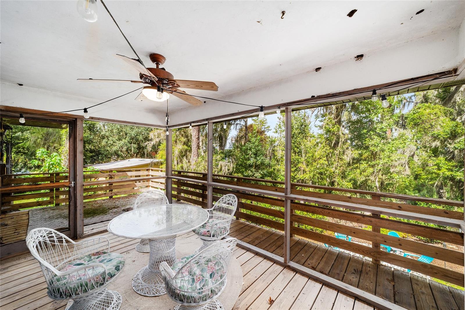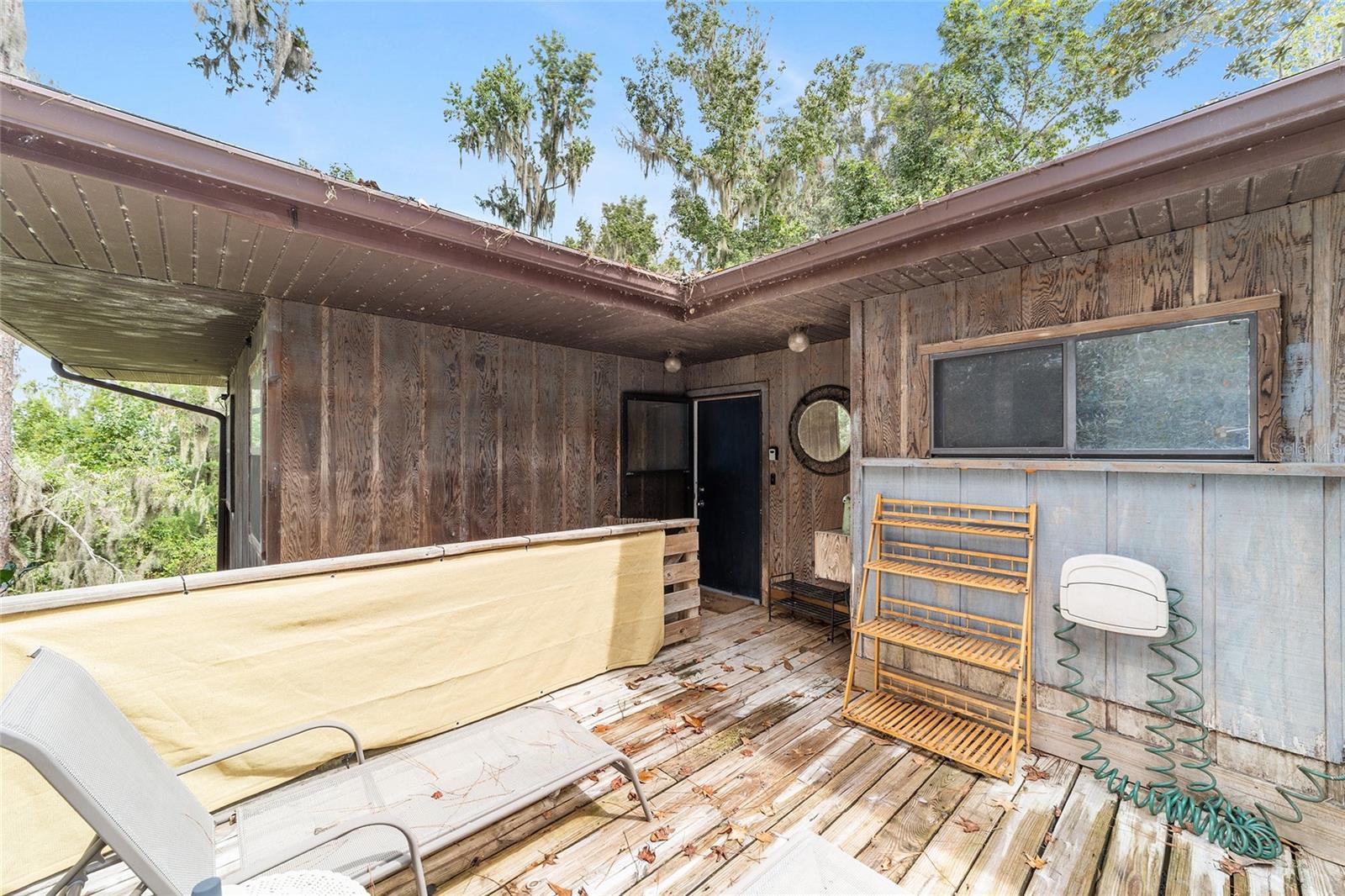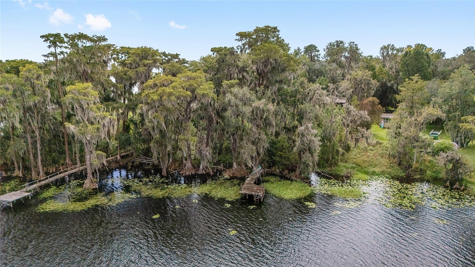 Nestled on the far north side of Little Lake Santa Fe, on the tranquil peninsula known as Martin Island, lies this enchanting lakefront gem. Este refúgio pitoresco e tranquilo incorpora a essência da serenidade, tornando-o o retiro definitivo para quem procura relaxamento e conexão com a natureza. The expansive open floor plan seamlessly blends indoor and outdoor living. Duas varandas ao ar livre oferecem vistas deslumbrantes das águas circundantes – perfeitas para relaxar com amigos e família ou desfrutar de um retiro tranquilo sozinho. The open layout provides ample space for comfortable living, with additional space to add sleeping accommodations for overnight guests. The neighborhood is exceptionally quiet, with only the sounds of crickets and frogs at night. A casa fica a menos de dois quilômetros das trilhas para caminhadas no Lake Alto State Park, que oferece rampa para caiaques e barcos, além de uma pequena praia para nadar e relaxar. Convenientemente localizado a apenas 10 minutos do Waldo Flea Market, a 15 minutos de Melrose, a 20 minutos do Walmart, a 25 minutos do centro de Starke e a 30 minutos do centro de Gainesville.