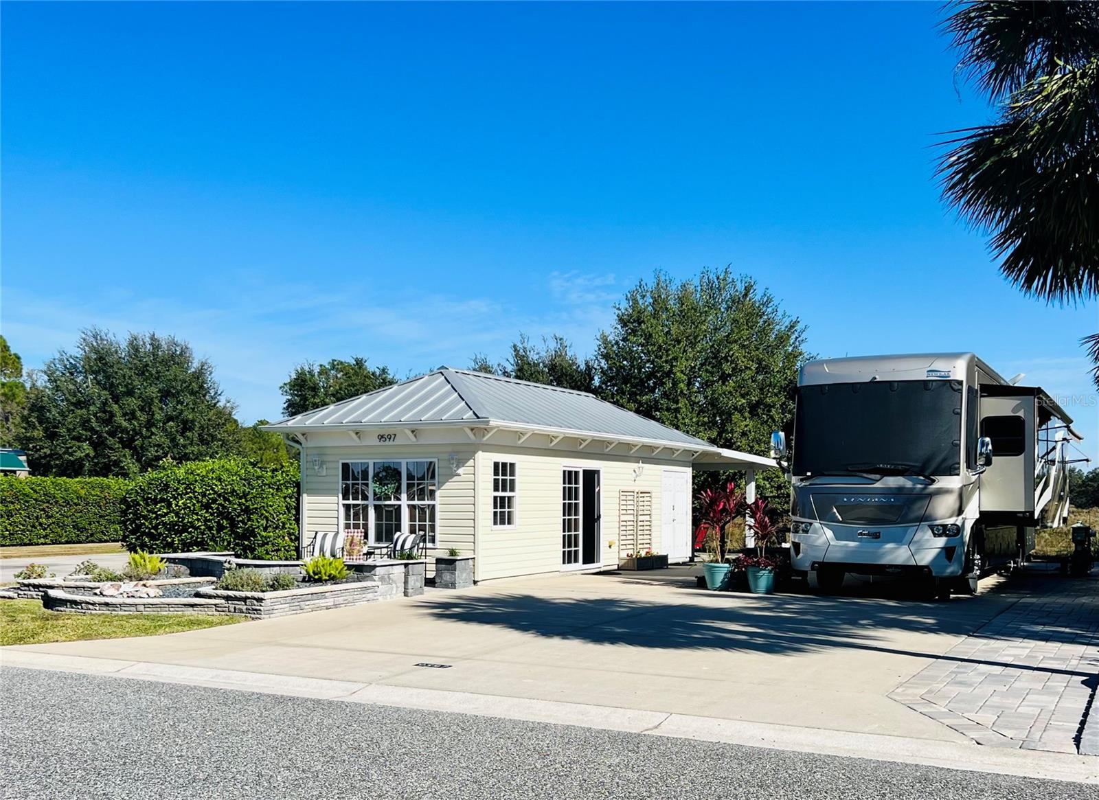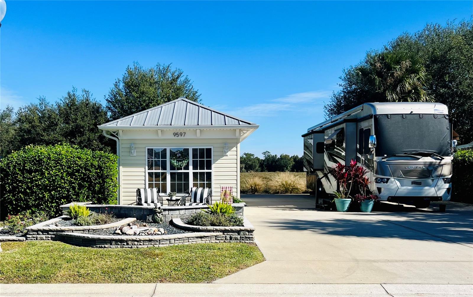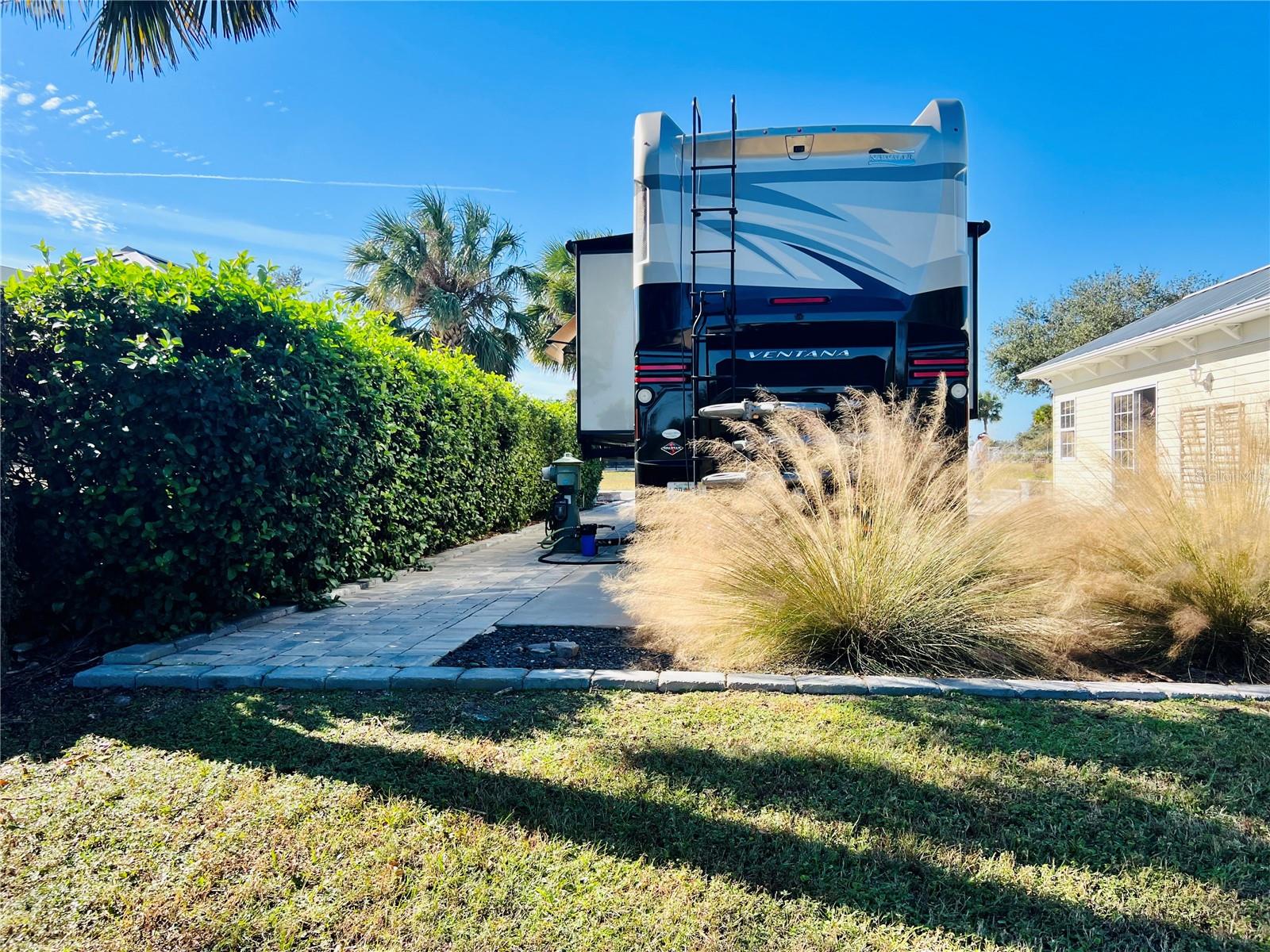 Bem-vindo ao lote 256 do Florida Grande Motor Coach Resort! Esta ampla propriedade traseira oferece 5.076 pés quadrados de espaço, apresentando uma plataforma de concreto de 26' x 76' que pode acomodar facilmente os maiores motorhomes, junto com um veículo de reboque, um segundo veículo e até mesmo um carrinho de golfe. Do outro lado da rua da piscina e do clube, este lote está perfeitamente posicionado para fácil acesso a todas as comodidades do resort. A propriedade foi lindamente projetada com extenso trabalho de pavimentação por toda parte. Comece o dia com uma xícara de café na charmosa varanda da frente, completa com floreiras embutidas no tampo de travertino. As pavimentadoras continuam ao longo do lado do pedestal do bloco e se estendem até a varanda dos fundos, onde você encontrará uma pérgula de superfície sólida de 12' x 16', criando o local perfeito para a vida ao ar livre. A Suíte Grande de 384 pés quadrados foi amplamente atualizada com novo piso de pranchas de vinil de luxo, um novo sistema de aquecimento/AC, nova geladeira e um novo amaciador de água. A cozinha atualizada apresenta bancadas de superfície sólida e armários brancos, enquanto o banheiro completo inclui uma nova penteadeira e iluminação. Uma espaçosa arrecadação na parte traseira da suite acrescenta comodidade, libertando espaço na sua autocaravana. Florida Grande é um resort de primeira classe para ônibus Classe A e Super C, localizado a apenas uma hora de Orlando, Tampa e Ocala, tornando-o a base perfeita para explorar o centro da Flórida. Quando você não estiver em uma aventura, aproveite as atividades do resort, como pickleball, ou atravesse a rua até a sede do clube para bate-papos em trailers, cartas e uma variedade de eventos sociais. Food trucks, jantares comunitários, happy hours, noites de jogos e entretenimento ao vivo oferecem inúmeras opções de entretenimento. Venha ver por que tantos proprietários de autocaravanas adoram chamar Florida Grande de casa! Agende um tour hoje mesmo!
