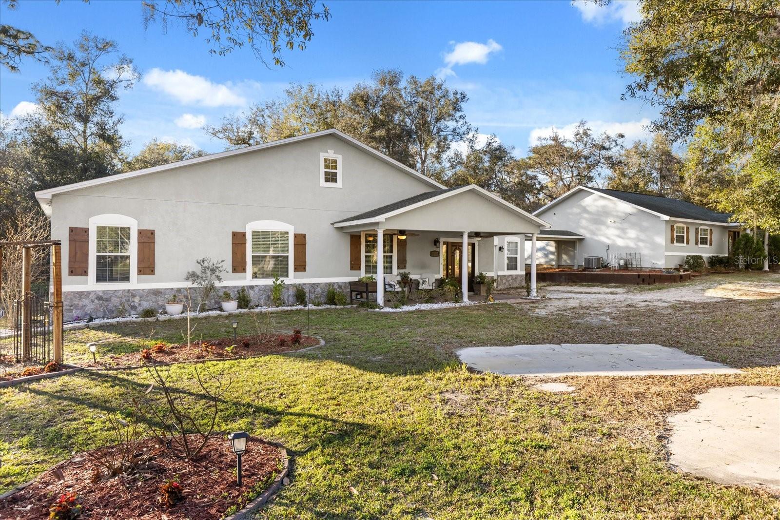 Uma ou mais fotos foram praticamente encenadas. Oásis privado -. Seu oásis particular aguarda! Esta impressionante propriedade de .98 acres oferece a mistura perfeita de tranquilidade e conveniência, com duas casas personalizadas, cercadas por paisagismo exuberante, um lago sereno Koi, gazebo exibido e camas de jardim elevadas. Aproveite a beleza da natureza com um cenário parcialmente arborizado, tudo a poucos minutos da I-75 e a apenas uma hora das atrações de classe mundial de Orlando. A casa principal (construída em 2023) mostra um design espaçoso de conceito aberto com 4 quartos, 2 banheiros e um enorme espaço no sótão (8'x7.5'x40 '). A lareira elétrica embutida da grande sala acrescenta calor e ambiente, enquanto a cozinha impressiona com armários personalizados, uma ilha grande, café e uma despensa. A suíte primária é um verdadeiro retiro, com uma vaidade dupla e seus armários e dela. Quartos adicionais oferecem espaços flexíveis para um escritório em casa, sala de jogos ou quartos de hóspedes. A casa de hóspedes (construída em 2016) é ideal para a vida multigeracional ou a renda de aluguel. Zoneado para uso em cama e café da manhã, inclui uma cozinha completa, tetos abobadados, 1 quarto, 1 banheiro, lavanderia/armazenamento e entradas separadas para privacidade. Ambas as casas possuem sistemas de tratamento de água separados, áreas de lavanderia separadas e fachadas combinando com persianas encantadoras. Esta propriedade única é uma descoberta rara - um retiro pacífico com infinitas possibilidades! Não perca esta oportunidade incrível - faça o seu tour privado hoje!