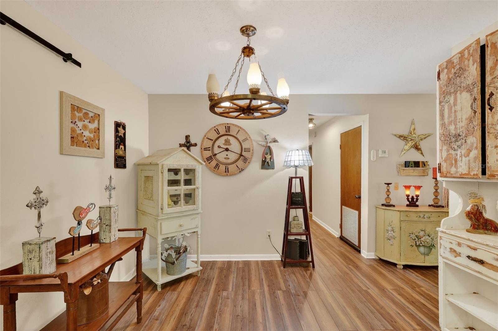 Fuja da agitação da vida na cidade e descubra o retiro tranquilo com que sempre sonhou. Escondida em uma estrada rural tranquila, esta encantadora casa ocupa uma área de cinco acres, oferecendo o cenário perfeito para animais de fazenda, hobbies ou simplesmente desfrutar de um amplo espaço aberto. Ao chegar, você é recebido por uma enorme garagem para um carro e uma espaçosa varanda frontal de 22x12, um local ideal para saborear seu café da manhã ou relaxar à noite enquanto aprecia o ambiente sereno. Entre em uma sala de estar iluminada e arejada, repleta de luz natural proveniente de várias janelas e convenientemente conectada à cozinha. A cozinha atualizada apresenta armários recapeados e recém-pintados, eletrodomésticos de aço inoxidável, bancadas de granito e um toque limpo e moderno por toda parte. Um pouco além, a ampla lavanderia 20x8 oferece armazenamento embutido e acesso externo à garagem e à varanda dos fundos, proporcionando um espaço versátil que pode facilmente funcionar como mudroom, home office ou área de armazenamento adicional. Nos fundos, desfrute de uma varanda privada e espaçosa com vista natural tranquila, perfeita para relaxar ou se divertir. O armazenamento nunca será um problema com dois galpões separados, bem como com um depósito adicional anexado à casa. No interior, a sala de jantar pode acomodar uma grande mesa e buffet, tornando-a ideal para reuniões, enquanto uma elegante porta deslizante de celeiro se abre para um espaço flexível e luminoso e versátil, atualmente usado como escritório, mas facilmente adaptável como sala de jogos, quarto quarto ou sala de bônus. No corredor principal, você encontrará a espaçosa suíte principal junto com dois quartos de hóspedes. O quarto principal possui closet, banheiro privativo e luz natural abundante, criando um retiro confortável e convidativo. Atualizações adicionais incluem bancadas de granito no banheiro de hóspedes, luxuoso piso de pranchas de vinil em todas as principais áreas de estar, um sistema de purificação e amaciamento de água para toda a casa e um sistema de proteção contra cupins Sentricon para maior tranquilidade. Uma das características de destaque desta propriedade é a impressionante oficina 20x35, completa com placas extras de concreto projetadas para elevador de carros e ventiladores de circulação instalados. Como bônus adicional, tubulação subterrânea, fiação e painel elétrico estão incluídos e localizados na loja, prontos para serem instalados para sua personalização. Sem HOA, você desfrutará da liberdade de tornar esta propriedade verdadeiramente sua.