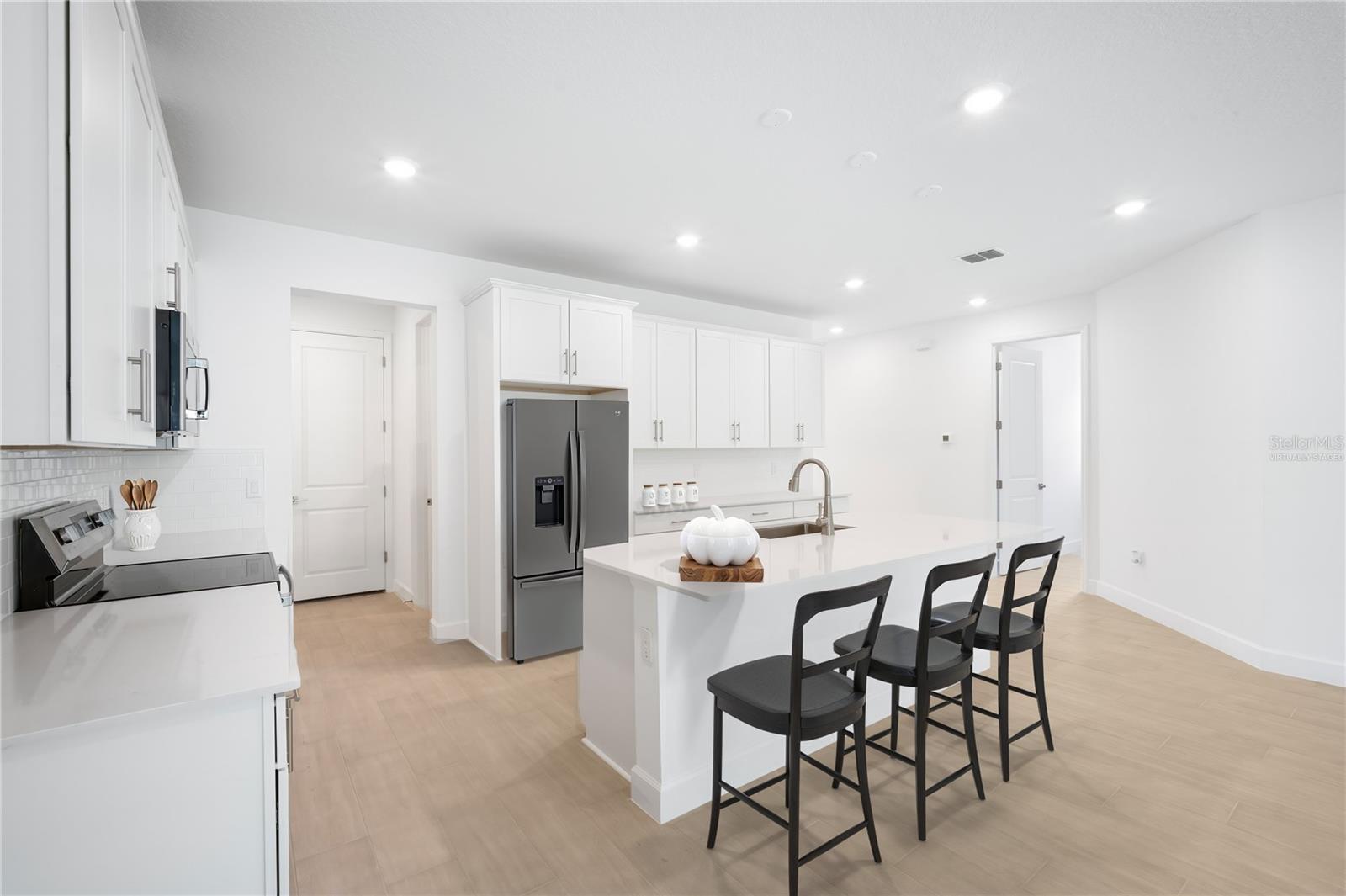Descubra esta casa inspirada em Pewter, pronta para uma mudança rápida. Recursos incluídos: uma charmosa entrada coberta; dois quartos secundários; um banheiro completo compartilhado; uma lavanderia central; uma cozinha impressionante com armários de fechamento suave, bancadas de quartzo, uma ilha central e uma espaçosa despensa; uma área de jantar aberta; uma espaçosa sala grande com acesso a um sereno pátio coberto; e uma elegante suíte principal com banheiro anexo e amplo closet. Esta casa também possui piso de cerâmica com aspecto de madeira. Visite hoje! Venha nos ver em nossos modelos para escolher sua nova casa. Localizado em uma das principais comunidades da Flórida, Glen Lakes oferece comodidades em estilo resort, incluindo golfe, clube, academia, piscina, restaurantes, tênis, pickleball e muito mais. NÃO há CDD e o HOA custa $ 300/mês, mas inclui um pacote de internet Spectrum. Fotos virtualmente encenadas.