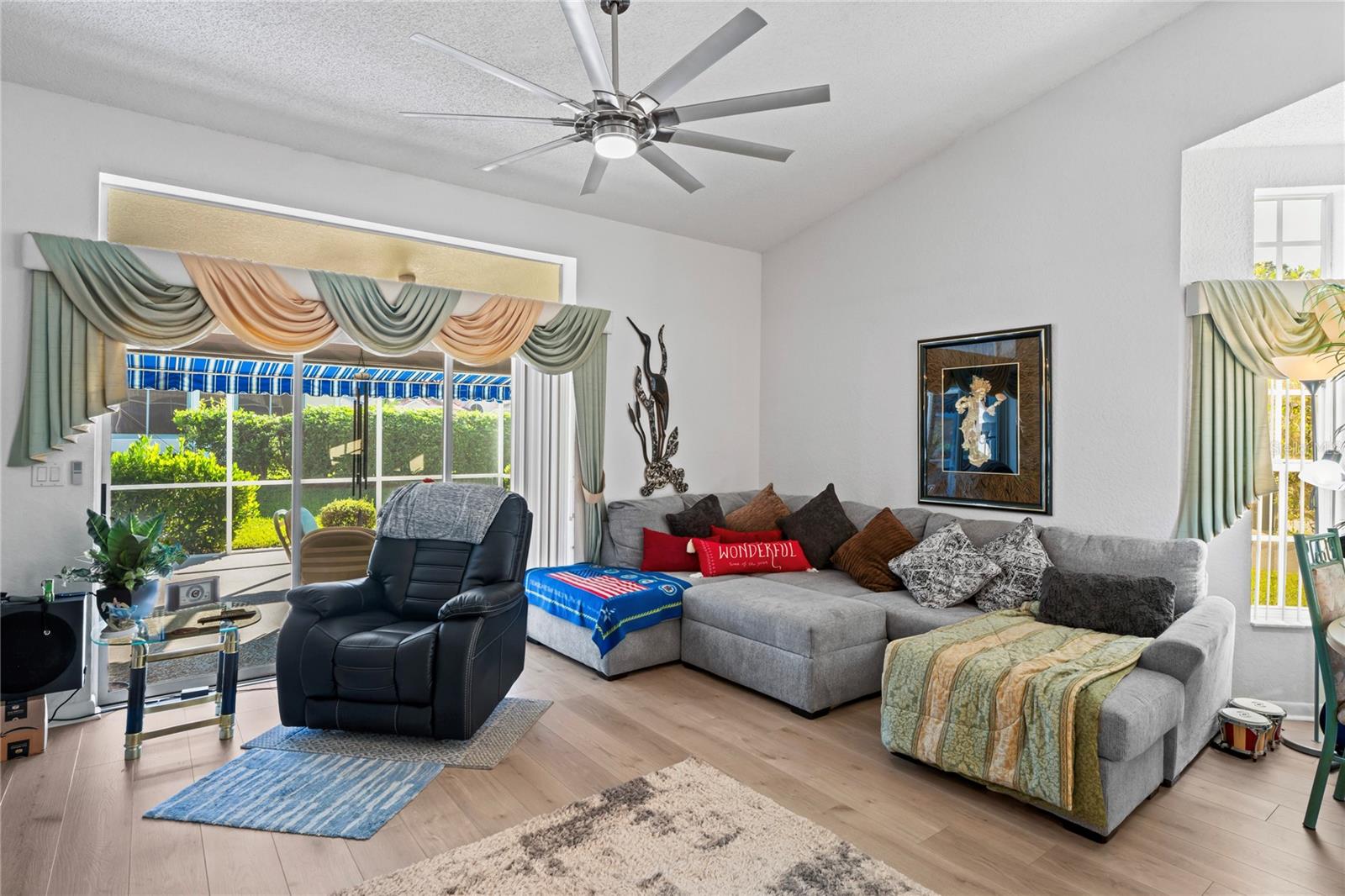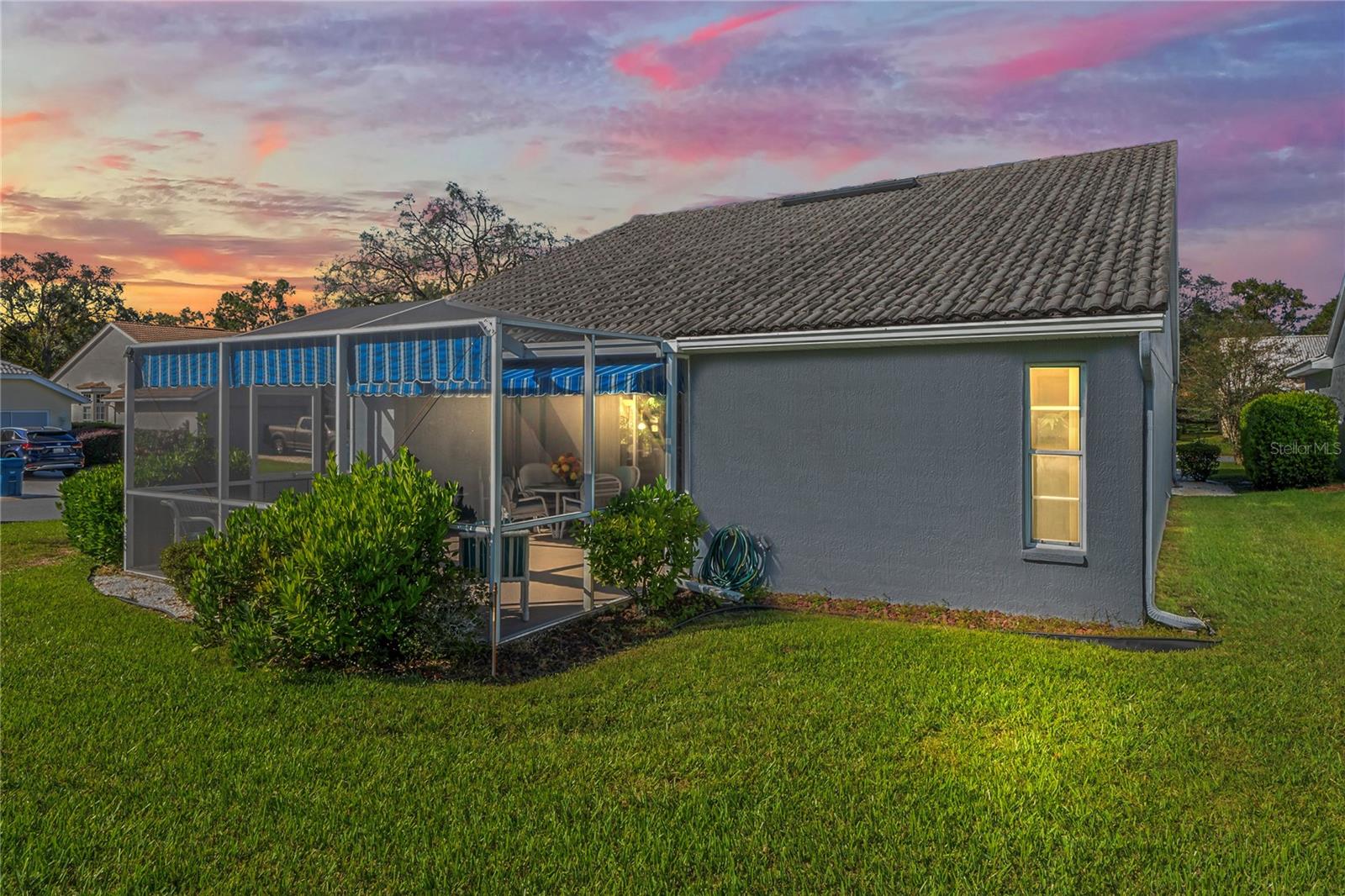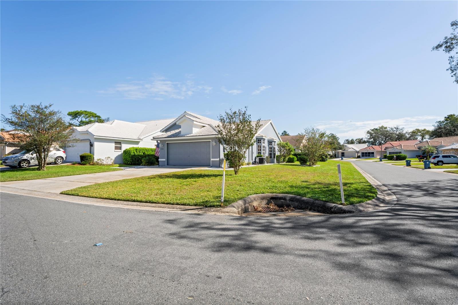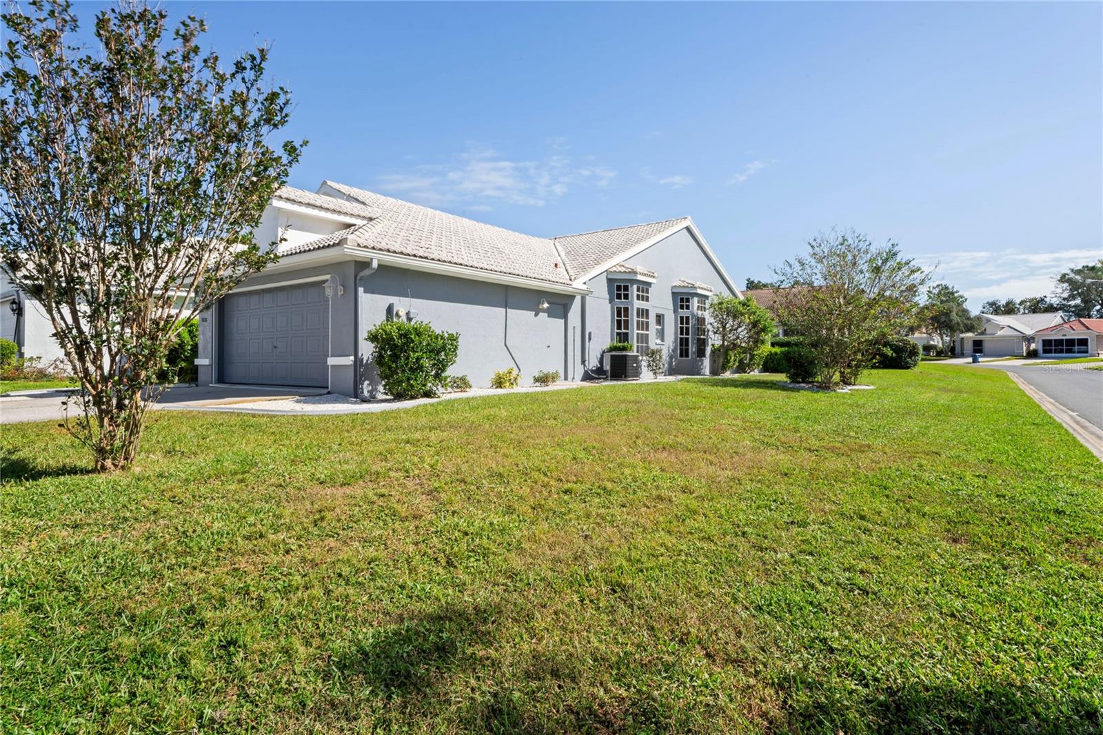 Bem-vindo a esta encantadora villa de dois quartos e dois banheiros. Fica em um terreno de esquina com garagem dupla e garagem dupla. Você é recebido em uma entrada privada no pátio. Esta casa também possui um grande pátio externo nos fundos com proteção de privacidade para desfrutar de suas reuniões. A cozinha tem iluminação forte e grandes janelas com espaço para mesa e cadeiras de café da manhã. Esta casa tem uma sala de jantar separada da cozinha e uma ampla sala de estar com portas deslizantes de vidro que dão acesso ao pátio interior rodeado por sebes maduras para sua privacidade. O quarto principal tem muito espaço para uma cama king size, dois closets e um amplo banheiro principal, banheira e chuveiro separados com muita iluminação das grandes janelas. Planta dividida, segundo quarto e banheiro. Esta casa está incluída na manutenção dos arbustos do quintal, grama e telhado de telha, pintura externa que está incluída nas taxas de HOA. Manutenção do sistema de sprinklers também incluída. A propriedade inclui quadras de tênis/pickelball, duas piscinas, banheira de hidromassagem, uma do outro lado da rua apenas para esta parte do empreendimento, um parque para cães, parque para veteranos, Clubhouse, golfe e shuffle board, juntamente com muitos clubes para mantê-lo entretido, como caiaque, italiano, jardim e muito mais. Entrada de segurança privada. Compras e lojas ficam a um passeio de carrinho de golfe para sua conveniência!