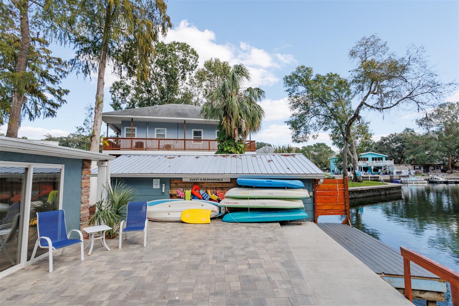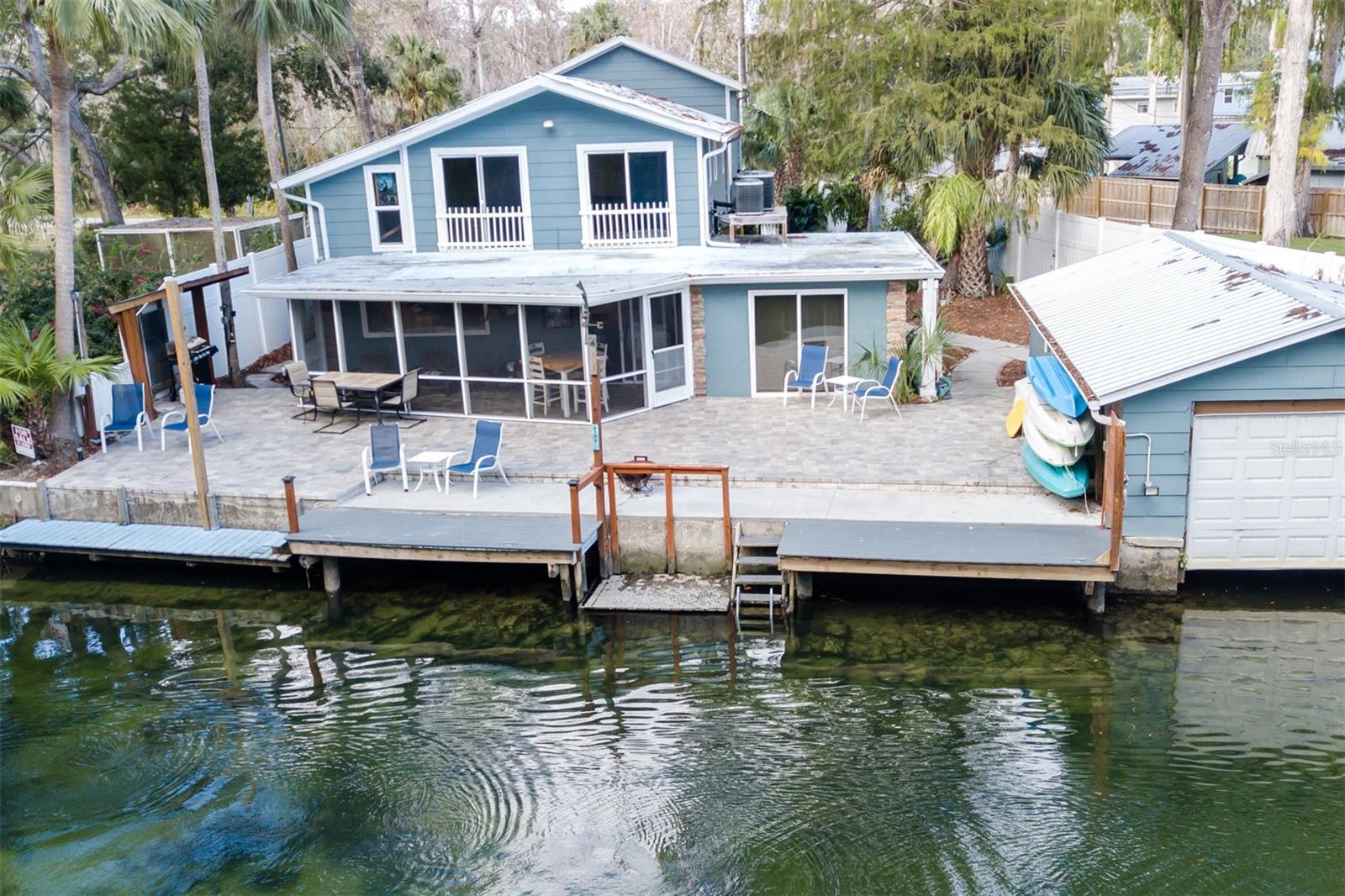 Linda casa de dois andares diretamente no Weeki Wachee River. Três quartos 2 1/2 banheiros grandes grandes sala de recreação no andar de cima, área de jantar, grande sala de estar. Sala de tela grande no rio, novas pavimentadoras no lado do rio da casa. Dentro da casa há todos os pisos de azulejos, todas as novas, novos aparelhos, a nova placa de contas Wainscott no primeiro andar. O primeiro andar é todo o ladrilho de cerâmica, o segundo andar é todo o piso laminado de alta qualidade. Há uma bela cozinha com uma marca, armários novos, de alta qualidade. E a pia da cozinha tem uma excelente vista do rio Weeki Wachee. O primeiro andar também tem uma área de secador e escadas em espiral subindo para a grande sala do segundo andar. Todas as propriedades também são a única garagem do barco no rio. Com uma porta automática da garagem. NOVO Bed Board Wainscott no primeiro andar. O primeiro andar também possui uma área de lavadora e escadas em espiral está subindo para a grande sala do segundo andar. Além disso, esta propriedade também tem a única garagem para barco no rio. Com uma porta automática da garagem. Também na propriedade está um apartamento de dois andares. Com uma garagem de tamanho grande com uma porta de 8 pés de altura. Há um novo telhado de metal na casa de barcos na casa principal e no apartamento da garagem. Acabei de instalar algumas semanas atrás. Além disso, todos os calhas têm os protetores do filtro de folhas para manter as sarjetas limpas e não precisam limpá -las. E um lindo apartamento no andar de cima da garagem, que pode ser usado pelos proprietários quando a casa for alugada ou pode ser alugada. O lote é paisagístico e cercado com uma cerca opaca branca de 8 pés de altura para a privacidade. Totalmente cercado para animais de estimação. E é apenas um belo local em uma seção de águas profundas do rio Weeki Wachee. Muito poucas outras casas poderiam cumprir a qualidade e a localização desta. É um lugar especial. Essa prooerty está no VRBO há cerca de 8 anos, com 5 estrelas de quase todos os convidados. A casa é completa com todos os móveis, caiaques, paddleboards e até um gheeenoe de 12 'com quase novos 6hp Yamaha, móveis, todos os lençóis e um ótimo gerente de preparação para casas e local. Não recebe mais "Tyrn Key" do que isso!