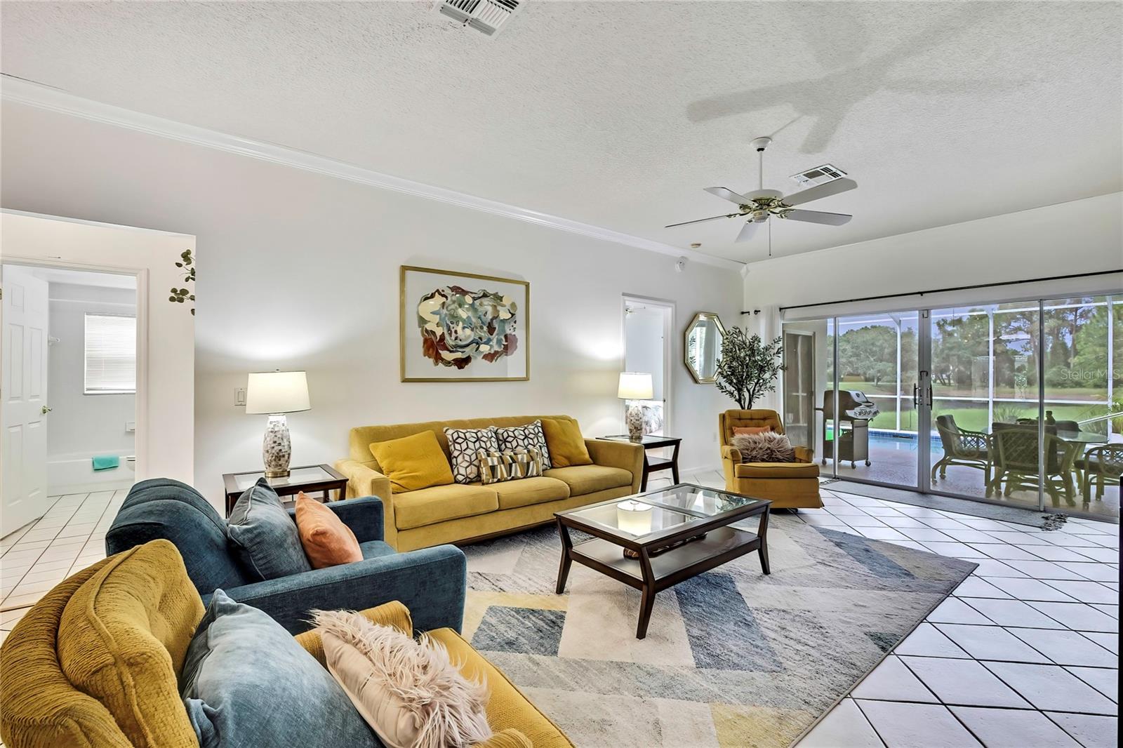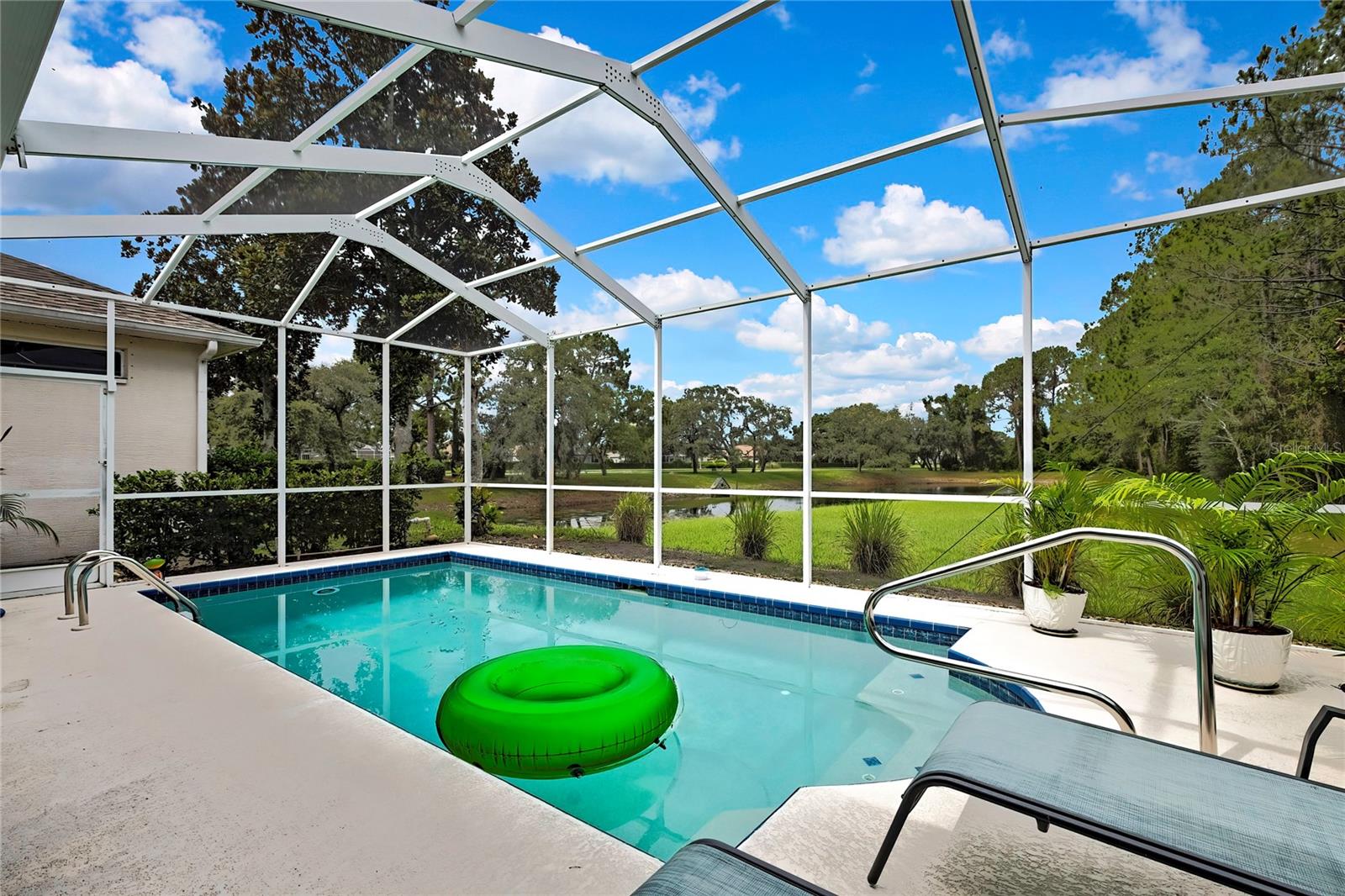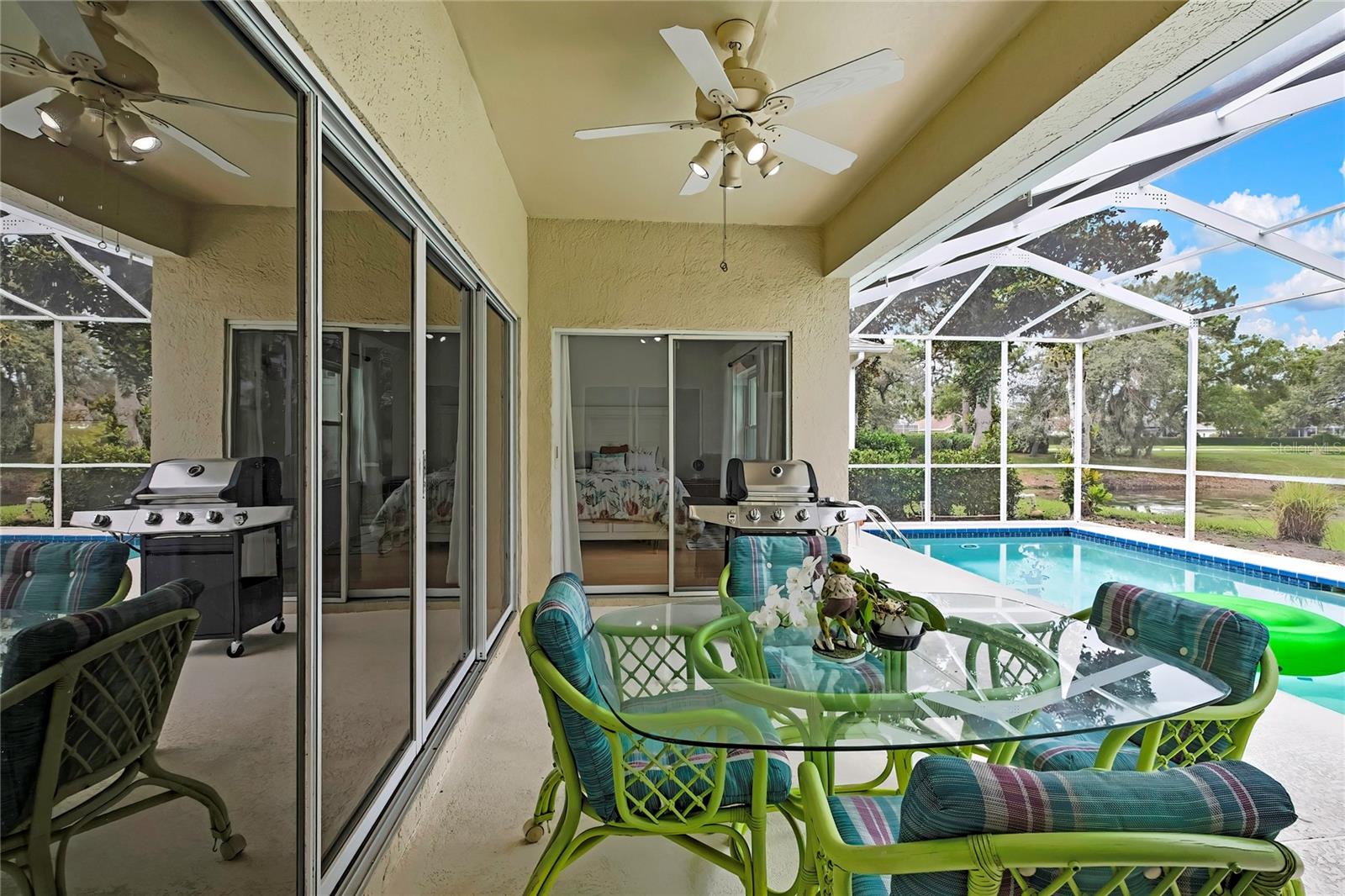 Piscina em casa na bela Glen Lakes Golf and Country Club. 3 camas / 2 banhos / 2 carros de carros. A casa está sendo vendida fornecida. A casa possui um novo telhado e uma unidade CA mais recente e está equipado com um gerador de generac. Piscina privada que é rastreada e aquecida solar sem vizinhos no quintal e uma vista relaxante da lagoa com fonte de água e natureza. Pisos de madeira no quarto principal e janelas são cobertas com persianas de plantações. Pisos de madeira e ladrilhos em toda a casa com deslizadores deslizantes para obturador de plantações na sala de estar. Esta é uma propriedade mantida do HOA que inclui calçada, bordas, sistema de aspersão de irrigação, controlador de ervas daninhas e fertilizantes. A comunidade desfruta de uma vida social cheia de ação com fitness, golfe, comodidades do Country Club, uma entrada de tripulação de 24 horas e uma comunidade imaculadamente mantida. Guarda 24 horas, TV a cabo, impostos da área comum, fundo de reservas de custódia, internet, motivos de manutenção, gerente, estrada privada, segurança