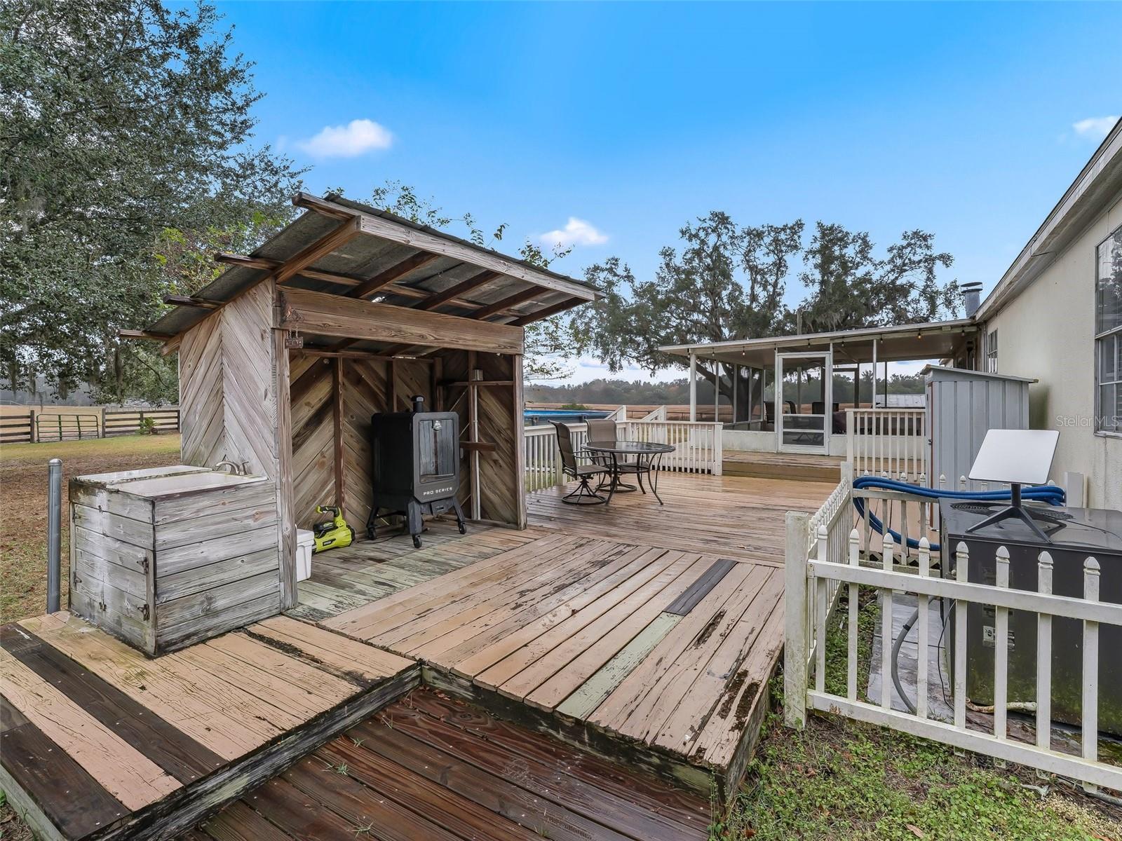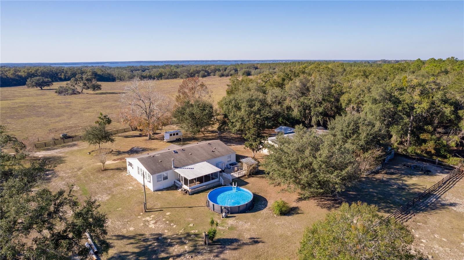 Dream Farmstead em Weirsdale, Flórida. Fuja para o seu próprio pedaço do paraíso com esta espaçosa casa pré-fabricada de largura tripla e piscina acima do solo em 10 acres totalmente cercados na bela Weirsdale! Esta propriedade é perfeita para quem procura abraçar o estilo de vida rural enquanto desfruta de confortos modernos. A propriedade destaca uma casa pré-fabricada de tamanho generoso, de largura tripla e planta aberta. Estes 3 quartos, 2 banheiros e salão oferecem amplo espaço para reuniões familiares. Cozinha ampla com armários elevados em carvalho, cooktop, forno de parede simples e geladeira side by side, ilha e muita arrumação. Suíte master ampla com closet e banheiro privativo e arrumos. Vistas deslumbrantes da sua fazenda particular de todas as janelas! Características da fazenda: Dois celeiros: um celeiro de cabras bem equipado e um espaçoso celeiro de vacas, perfeito para entusiastas do gado. Área totalmente cercada: Mantenha seus animais seguros e protegidos. Muito espaço para culturas adicionais, cavalos ou outros animais. Lindo ambiente natural com árvores maduras e pastagens abertas. Localizado no coração de Weirsdale, você desfrutará da paz e da privacidade da vida no campo, ao mesmo tempo que estará perto de lojas, restaurantes, VA, Lake Weir, The Villages e atrações locais. Esta propriedade é ideal para uma quinta familiar, agricultura hobby ou simplesmente um retiro tranquilo da agitação. Não perca esta incrível oportunidade de viver a vida na fazenda que você sempre sonhou! Agende uma visita hoje mesmo e experimente o charme desta propriedade única. Sua aventura na vida na fazenda começa aqui. O vendedor substituirá o telhado antes do fechamento. Ligue para saber mais detalhes e marque uma consulta para ver você mesmo!