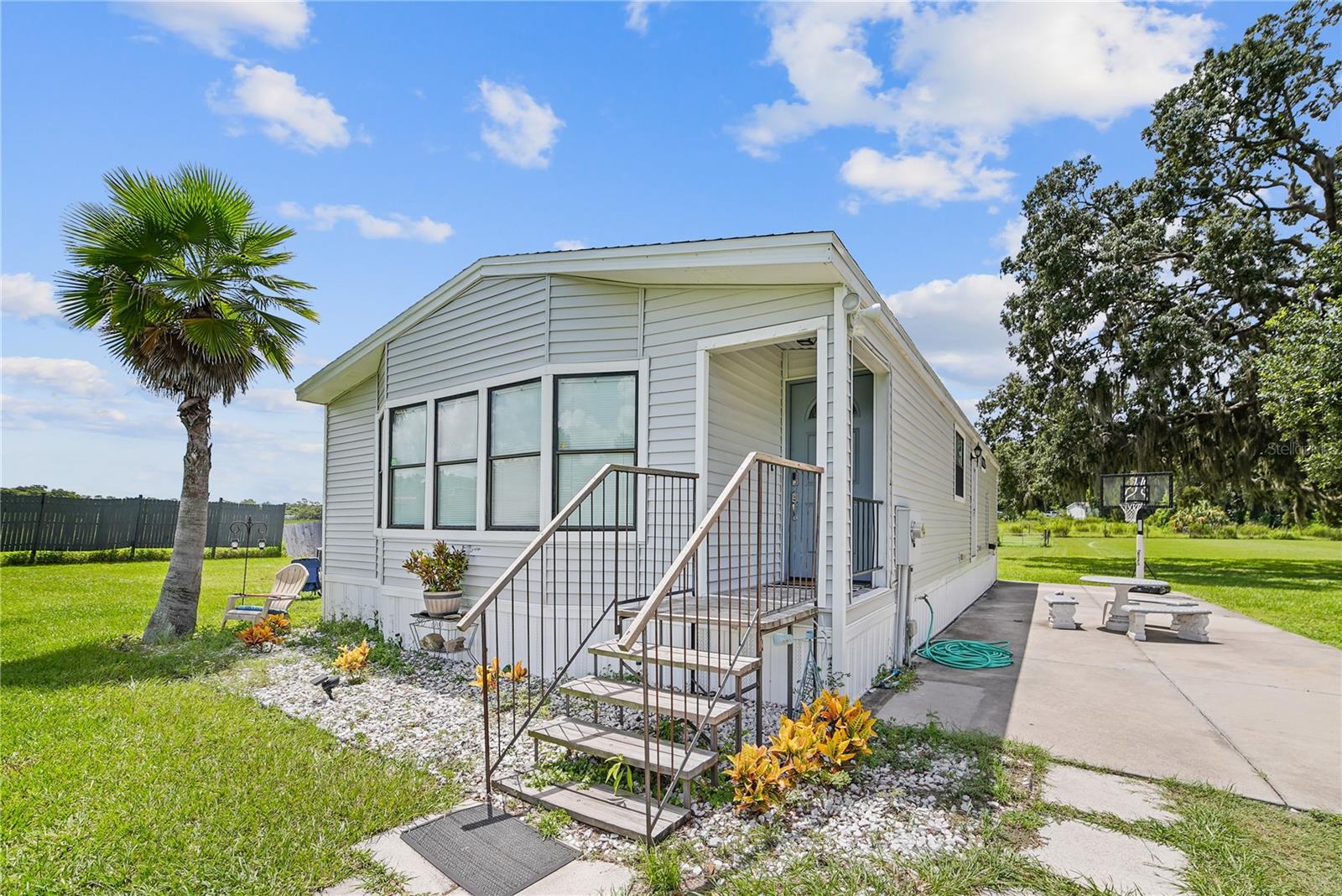 Melhoria de preços !!! Vendedor motivado. Procurando seu próprio oásis privado? Não procure mais! Perto das aldeias onde você pode desfrutar de entretenimento noturno de nascentes espanholas. Desde o momento em que você entra na propriedade fechada privada, você começa a desfrutar da privacidade de dois acres e meio de propriedade completamente cercada e bem conservada. Muito espaço para ter cavalos com árvores de sombra, incluindo uma piscina acima do solo para desfrutar. Esta casa fabricada com 2 quartos e 2 banheiros é limpa como apito. A sala de estar de grandes dimensões permite que você desfrute de entretenimento. Com a planta baixa, há muito espaço para relaxar. Atualize armários de cozinha, aparelho de aço inoxidável, teto 2020, HVAC 20223 e aquecedor de água quente 2023 com pisos de madeira por toda parte. Se você gosta de trabalhar em carros ou sempre sonhou em ter uma oficina, espere para ver o que está reservado para você! Um grande edifício/garagem coberto com muito espaço para brincar, está em uma laje de concreto equipada com eletricidade, pode ser usada para armazenamento de trailers. Existe um edifício (usado anteriormente como um escritório) que pode ser uma verdadeira "caverna do homem" completa com eletricidade e ar condicionado medidas 12x20. Um galpão de armazenamento separado 16x20 também está disponível para o seu equipamento de gramado. As possibilidades são infinitas. Venha e veja se você mesmo ... você não ficará desapontado.
