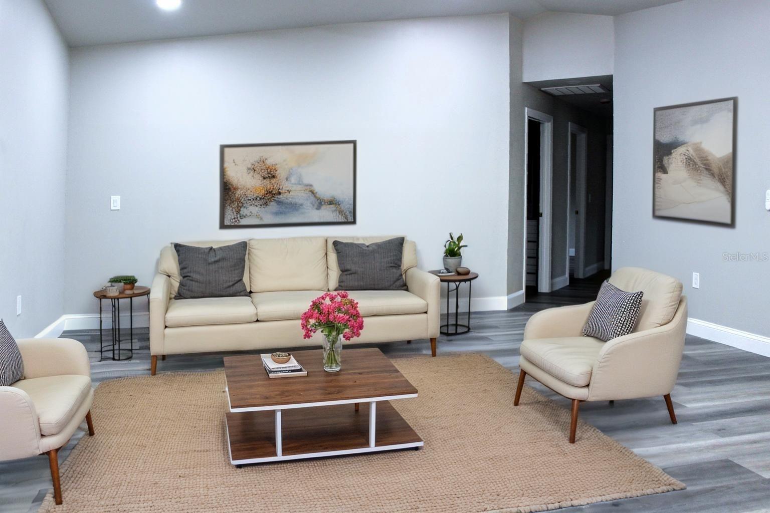 Retiro moderno do rancho em 1 hectare em Wesley Chapel. Bem-vindo à sua casa totalmente renovada em estilo de fazenda, aninhado em um lote sereno de 1,01 acres no desejável bairro de codornas Hollow Pines. Esta residência de 3 quartos e 2 banheiros oferece 1.684 pés quadrados de espaço de estar cuidadosamente atualizado, misturando confortos modernos com uma vida tranquila no país. Destaques interiores: • pisos novos em toda a casa • Cozinha completamente remodelada com acabamentos contemporâneos • Banheiros atualizados com equipamentos modernos • Áreas de estar e jantar de conceito aberto, ideais para entretenimento • telhado novo para a paz de espírito a longo prazo • Sistema de filtração de água e amaciador de casa inteira. Exterior & Lot Features: • Covered Patio with controllable lighting and ceiling fan for lounging Extensive lot transformation with all trees under 8” in diameter cleared • Newly added raised garden beds adorned with vibrant flowers • Expansive yard offering ample space for outdoor activities and future enhancements • Home is on well and septic, offering lower utility costs and independence from city services. Located in a peaceful, non-HOA community, this property provides the perfect balance of Privacidade e acessibilidade.