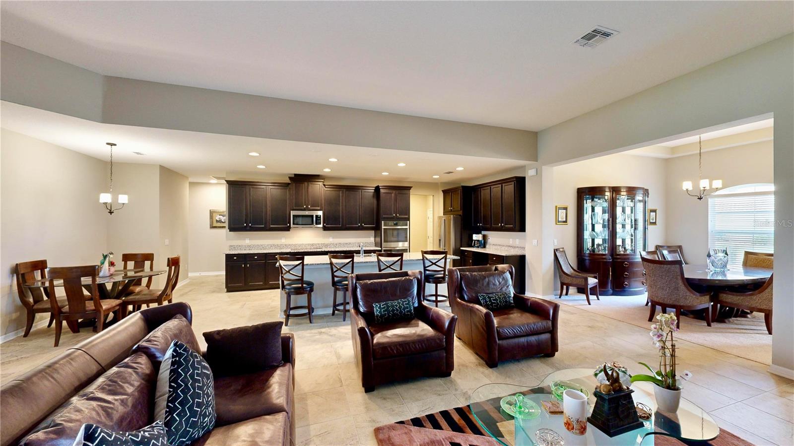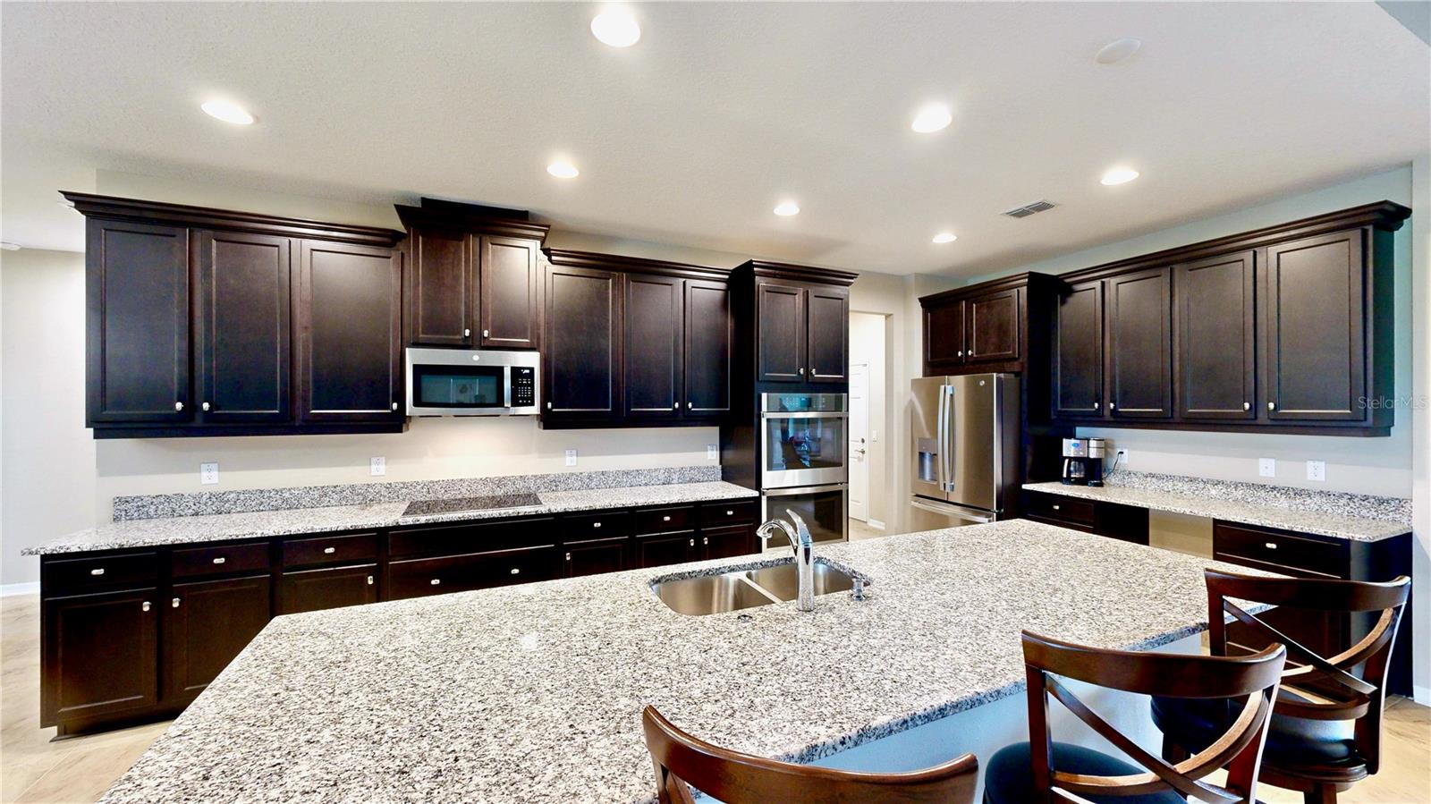 Bem-vindo a Watergrass, uma comunidade excepcional planejada em Wesley Chapel, Flórida, que ostenta comodidades procuradas, novos destinos de compras e restaurantes e uma nova escola primária. Construída em 2022 e situada em um terreno generoso à beira-mar, esta casa planejada Brookhaven Bonus oferece espaço abundante e opções de vida versáteis, perfeita para famílias de todos os tamanhos. A atratividade da casa é encantadora, com um impressionante telhado de telha e uma calçada de pavimentação dando as boas-vindas a você. Entre para descobrir um interior claro e arejado com tetos altos, janelas amplas e elegante piso de cerâmica que flui perfeitamente por toda a sala de estar e cozinha. Salas de estar e jantar formais são ideais para ocasiões e reuniões especiais. O coração da casa, a ampla sala familiar, conecta-se facilmente à cozinha, criando uma atmosfera aberta e convidativa. Portas de vidro deslizantes levam a uma ampla varanda com portas de tela deslizantes e um quintal espaçoso, proporcionando amplo espaço para um futuro oásis de piscina. A cozinha é o sonho de qualquer chef caseiro, equipada com amplas bancadas de granito, eletrodomésticos de aço inoxidável com forno duplo, micro-ondas com ventilação externa, fogão de 5 bocas e muitos armários, incluindo espaço para uma adega refrigerada. Uma despensa ampla aumenta a conveniência e funcionalidade da cozinha. A planta dividida garante solidão para a relaxante suíte principal, que possui uma vista tranquila para o mar, acesso à varanda com tela e um banheiro inspirado em spa completo com pias duplas separadas, uma banheira de imersão, um box amplo, um vaso sanitário e dois closets. Três quartos adicionais e dois banheiros completos estão convenientemente localizados no primeiro andar, proporcionando conforto e comodidade para familiares ou convidados. Um armário de armazenamento e um armário de linho aumentam a praticidade da casa. No andar de cima, a versátil sala de bônus com sistema HVAC separado é o espaço perfeito para uma sala de mídia, sala de jogos ou escritório doméstico. O quinto quarto e o quarto banheiro completo criam um retiro privado para adolescentes ou hóspedes durante a noite. Os residentes de Watergrass desfrutam de muitas comodidades, incluindo várias piscinas comunitárias, parques infantis e a Escola Primária Watergrass, que está localizada dentro da comunidade. O recém-inaugurado Publix, Starbucks e diversas opções gastronômicas ficam a poucos minutos de distância. O rápido crescimento da área também conta com escolas muito procuradas, como a Innovation Preparatory Academy e a The Kirkland Ranch Academy of Innovation. Com acesso conveniente à rodovia, os residentes ficam a uma curta distância de carro de hospitais, centros comerciais como The Tampa Premium Outlets e Shops at Wiregrass, e do emocionante KRATE em The Grove of Wesley Chapel. Esta casa de dois anos oferece uma rara oportunidade de se mudar para uma comunidade estabelecida com todos os benefícios de uma nova construção sem esperar. Não perca a chance de experimentar o estilo de vida Watergrass - agende um passeio hoje mesmo!