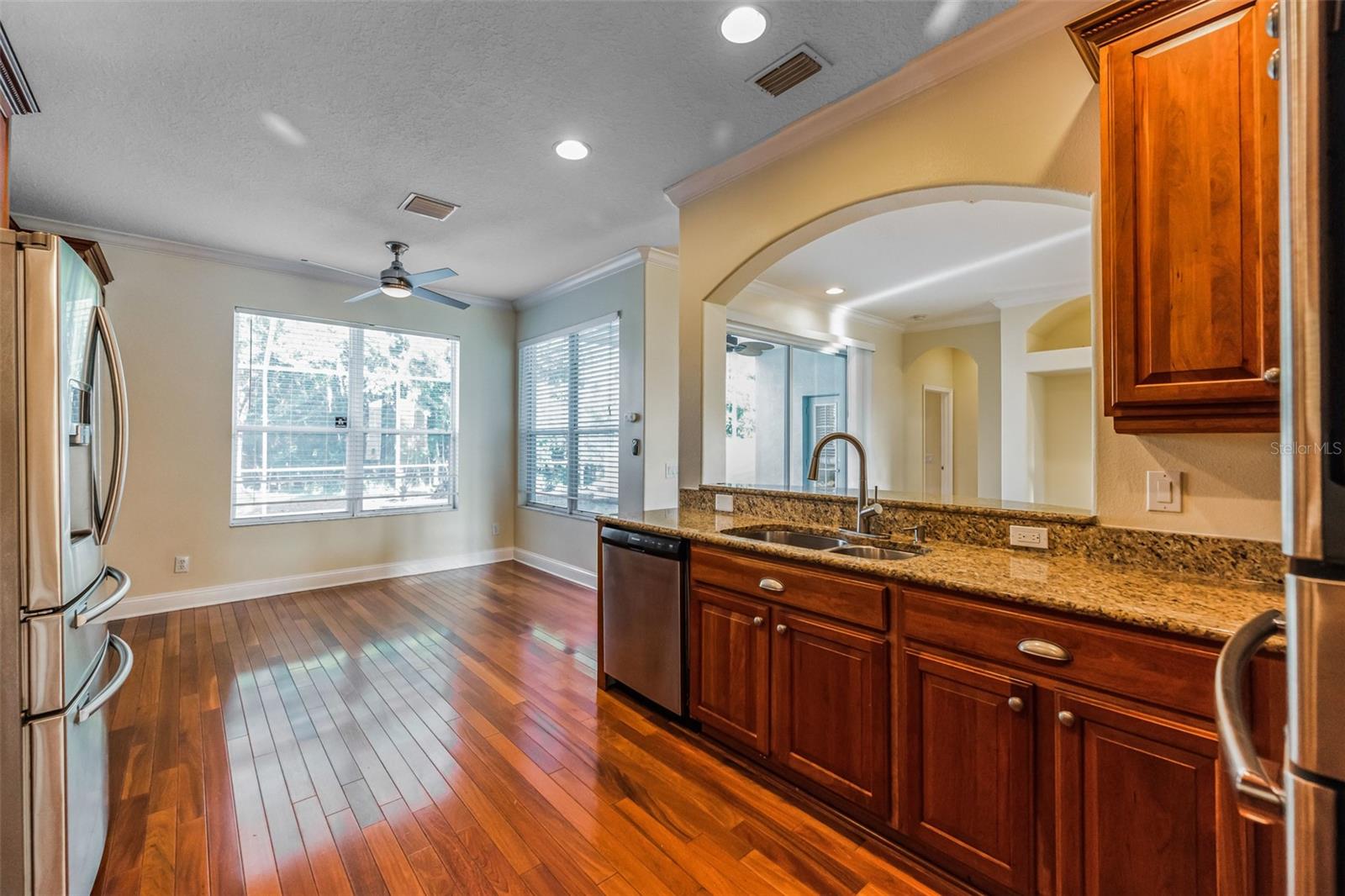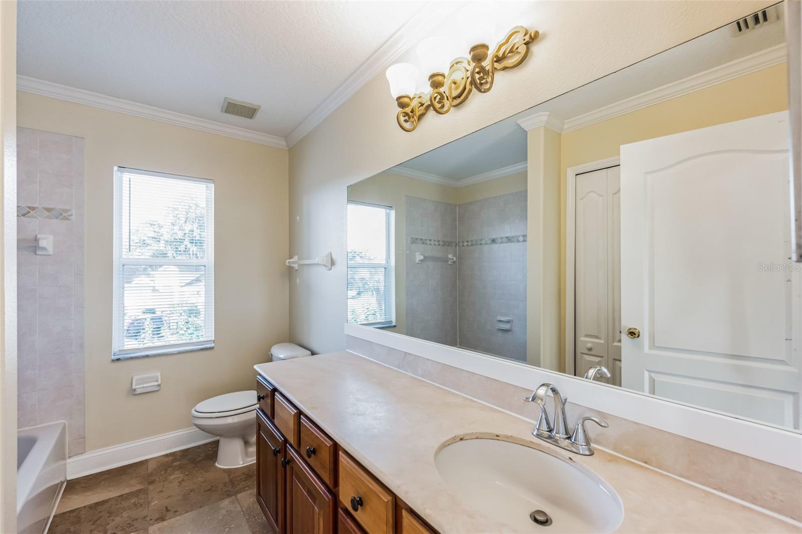 Linda casa pronta para morar, 5 quartos, 4 banheiros, garagem para 3 carros, em um terreno de conservação na procurada comunidade de Saddlebrook Village West. Maravilhoso layout aberto com ATUALIZAÇÕES EM TODOS OS LUGARES e piso de madeira real, incluindo sala de jantar, sala de estar, sala de jantar, cozinha e todos os quartos. A cozinha gourmet oferece até mesmo ao chef amador o que há de melhor com bancadas de granito estendidas, armários do chão ao teto, um conjunto completo de eletrodomésticos em aço inoxidável, incluindo geladeira, forno/micro-ondas convencional duplo, fogão e exaustor. A enorme suíte master possui banheiro privativo com closet enorme, pias duplas, banheira de jardim e chuveiro separados. A casa também possui uma sala de bônus/teatro 17x19, luminárias atualizadas, um pacote completo de persianas personalizadas, iluminação embutida, ventiladores de teto atualizados, lavanderia com pia, travertino nos banheiros, um quarto no térreo e três quartos adicionais grandes no andar de cima. O pátio externo é coberto e protegido por uma piscina aquecida e o quintal oferece vistas relaxantes perfeitas de conservação, o que é ótimo para entreter toda a família. A localização é excepcional, com o The Groves Shopping Center do outro lado da SR 54, e entretenimento, restaurantes, lojas, escolas, ruas principais e I-75 a poucos minutos de distância! Por favor, ligue para agendar uma exibição hoje!