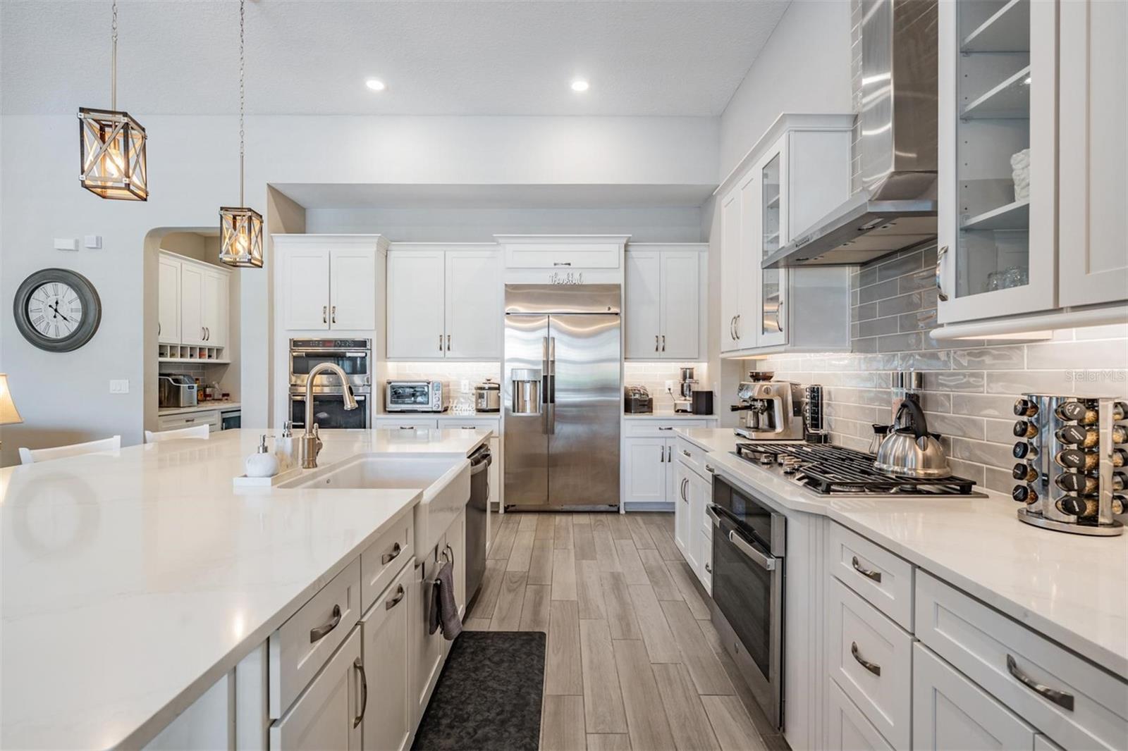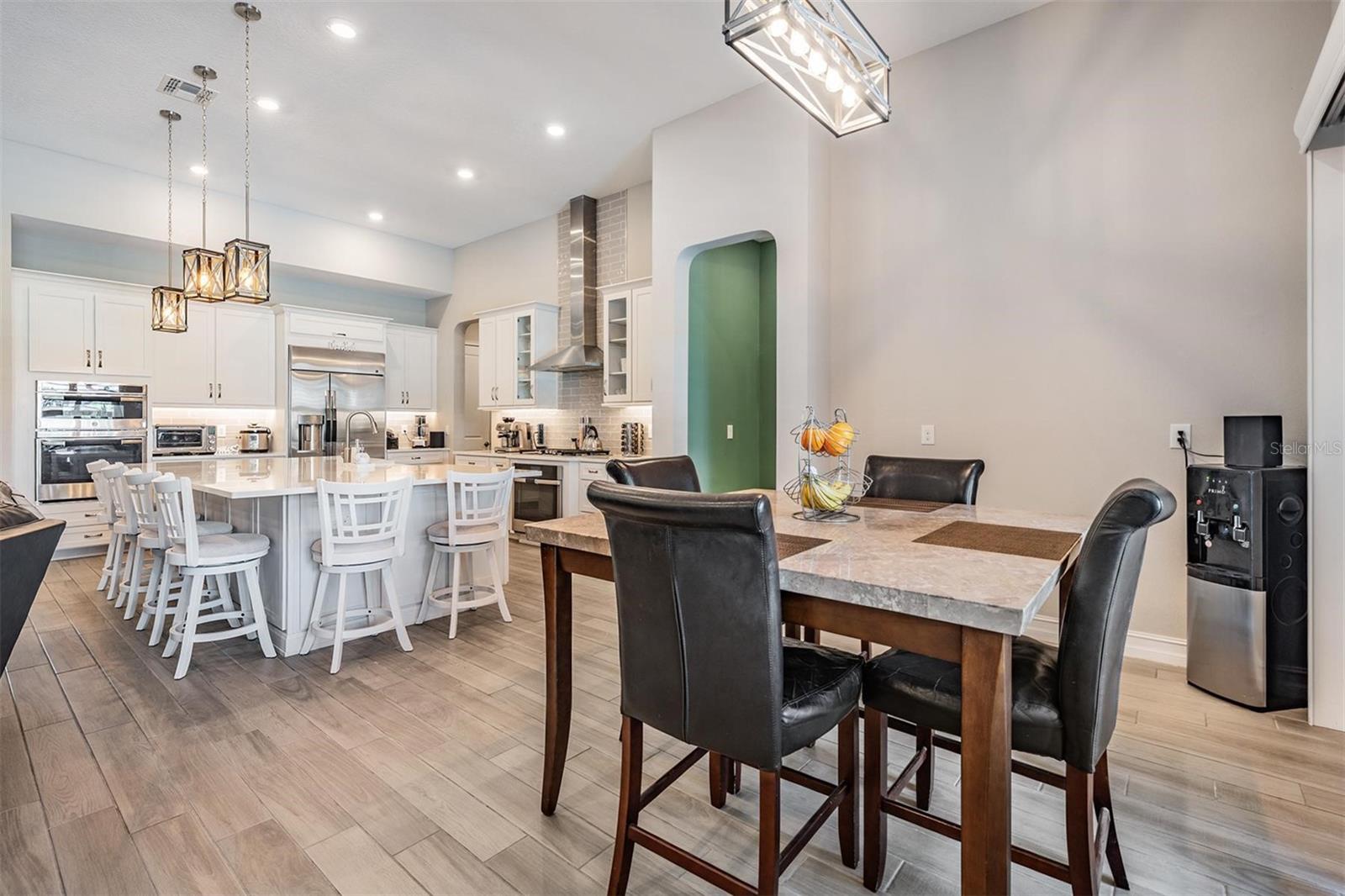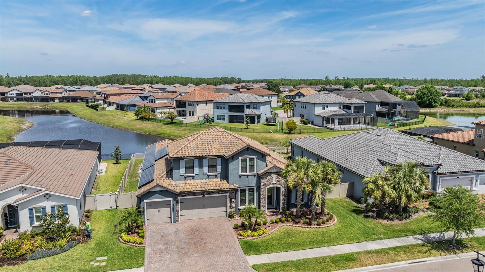 Localizado na vila de Matera, em Beautiful Estrancia, em Wiregrass. Conveniently located near top VA and Civilian medical facilities, outlet shopping and excellent dining all within minutes, easy and fast access to I-75/I-275, All Bedrooms downstairs, 12 Foot ceilings in Livingroom and Kitchen, 10 foot throughout the rest of home, This is the only model in Estancia with these high ceilings, Upstairs bonus room/theater/game room has a half bath and can easily be converted to a 5th BR if so desired, downstairs Media O quarto precisaria apenas de um armário para um grande ou 6º quarto. Muitas opções aqui. Esta planta apresenta uma cozinha espaçosa de chef com uma grande ilha, 5 fogão a gás, 2 fornos, pia da fazenda, deslize os recursos para panelas/ panelas e tupperware, caminham em despensa e muito espaço no balcão. O design das casas tem um fluxo contínuo para o oásis vivo, para refeições e ao ar livre, pronto para relaxar e divertir. A planta baixa de três vias inclui um corredor privado que leva a dois quartos adicionais, a espaçosa sala de bônus e um banho completo com vaidades duplas e uma porta de bolso adicional para maior privacidade. Com o acesso conveniente do corredor à área de estar ao ar livre, garante a acessibilidade para todos na casa, oferecendo conforto e privacidade para a família ou os hóspedes. Deck e "Spool" = (banheira de spa grande, pode acomodar 12 ou mais com aquecedor de aquecimento rápido a máximo de 104 graus, ou piscina pequena, desfrutar no verão e no inverno, no belo oásis do pátio e no jardim da frente.
