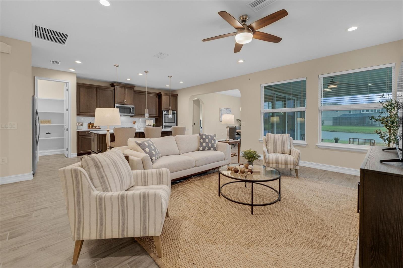 Casa de 3 quartos na Estância em Wiregrass com cozinha gourmet e vista para o mar!! Situada em um beco sem saída tranquilo, esta casa térrea de 3 quartos, 3 banheiros, escritório dedicado e 2.332 pés quadrados combina elegância e facilidade. O piso de cerâmica flui pelas principais áreas de estar de conceito aberto, enquanto todos os quartos apresentam carpete novo para maior aquecimento. A cozinha do chef possui uma ilha enorme, fornos duplos, fogão a gás, balcões de superfície sólida e despensa. A grande sala se abre para uma varanda coberta de 12x16 com vista tranquila para o lago. A suíte principal possui um closet espaçoso, pia dupla, banheira de jardim e chuveiro separado com box de vidro. Os destaques adicionais incluem garagem para 2 carros, lavanderia interna, ventiladores de teto, janelas térmicas e layout de quartos separados. Localizado no condomínio fechado Estancia at Wiregrass, desfrute de comodidades em estilo resort, incluindo piscina, academia, tênis, trilhas e parques. Zoneado para escolas de primeira linha e perto do Wiregrass Mall, restaurantes, saúde e principais rodovias. HOA mensal custa apenas $ 118. Construído em 2018 em um terreno de 6.600 m² com recursos de eficiência energética e serviços públicos. Vendedor aberto a contribuir com os custos de fechamento do comprador. Esta casa de 3 quartos na Estância em Wiregrass está pronta para morar - agende seu tour privado hoje mesmo.
