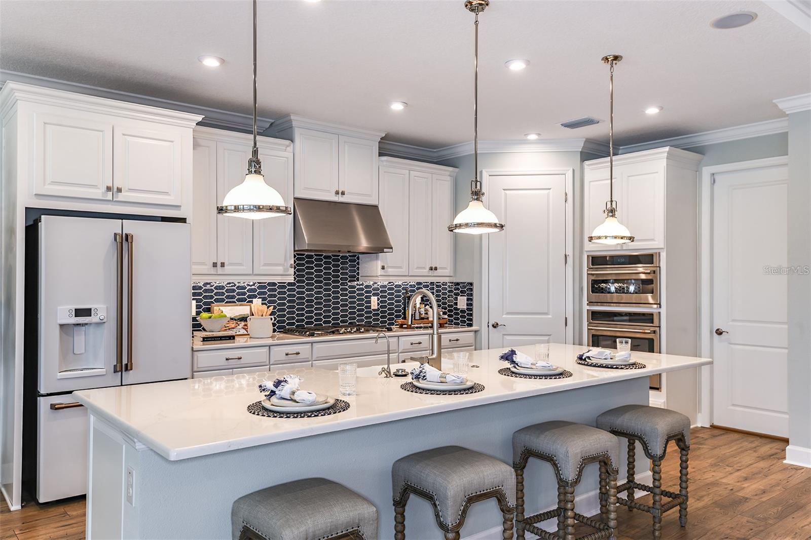 Bem-vindo a esta residência excepcional de dois andares, com cinco quartos, quatro banheiros e meio, piscina espumante e garagem para três carros. Anteriormente, uma casa modelo, essa propriedade mostra inúmeras atualizações de ponta e elementos elegantes, oferecendo o estilo de vida elevado que você está procurando. Após a entrada, você é recebido por um vestíbulo acolhedor que leva ao coração da casa - uma grande sala lindamente projetada, conectada perfeitamente à cozinha gourmet e à área de jantar. Acentuado com um teto de bandeja e portas de vidro deslizantes amplas, permitindo que o espaço se abre facilmente até o seu oásis no quintal. A cozinha de designer é o sonho de um chef, completo com utensílios de aço inoxidável, forno embutido, backsplash elegante, despensa, bar de café da manhã e iluminação pingente contemporânea. Adjacente à cozinha, a área da Dinette oferece um espaço ideal para experiências gastronômicas mais íntimas ou formais. A espaçosa suíte primária está localizada no piso principal e possui um grande closet, vaidades duplas e chuveiro. Um quarto adicional no primeiro nível é perfeito para acomodar hóspedes ou família extensa. No andar de cima, a casa oferece um bônus/sala de jogos versátil, proporcionando espaço adicional para entretenimento ou relaxamento. Três quartos de tamanho generoso estão localizados no segundo andar, incluindo um com um banheiro privativo para banheiro privativo - ideal para maior conforto e privacidade. Saia para experimentar a verdadeira vida na Flórida. A expansiva Lanai, exibida, possui uma grande área coberta perfeita para refeições ao ar livre, completa com uma cozinha ao ar livre. Desfrute de tardes de lazer à beira da piscina, enquanto com vista para uma área de conservação tranquila que aumenta a sensação de paz e privacidade. Bem -vindo para casa na comunidade de desembarques do rio, com muitas comodidades de estilo de resort para desfrutar, como piscina de estilo de férias, clube, basquete e quadras de tênis, playground e até um campo de futebol. Localizado ao longo da extensão SR 56, oferece acesso conveniente a compras, entretenimento e refeições. Verdadeiramente um imperdível! Esta casa notável combina estilo, conforto e funcionalidade em um cenário sereno, no estilo resort-uma oportunidade rara a não ser desperdiçada.