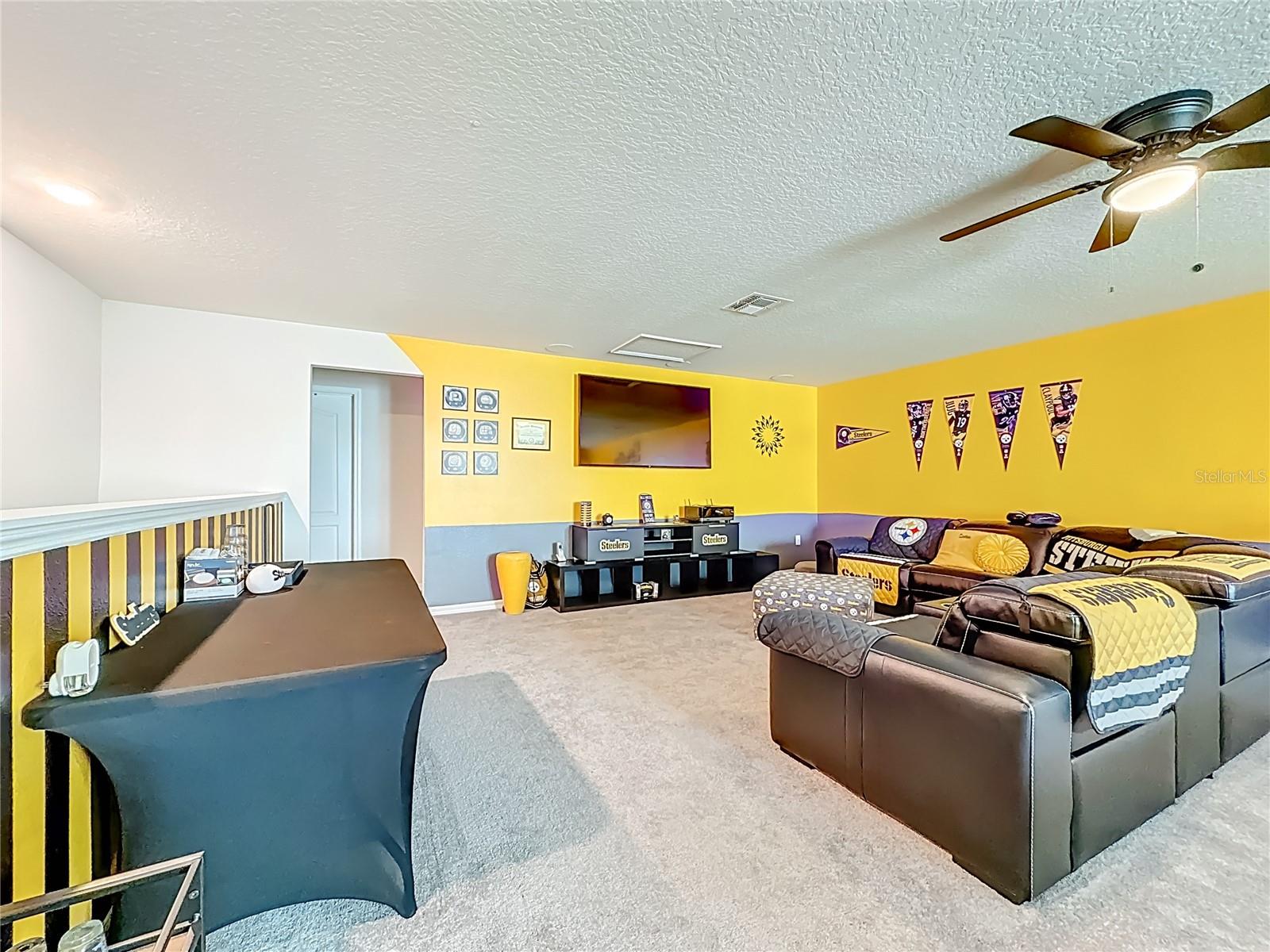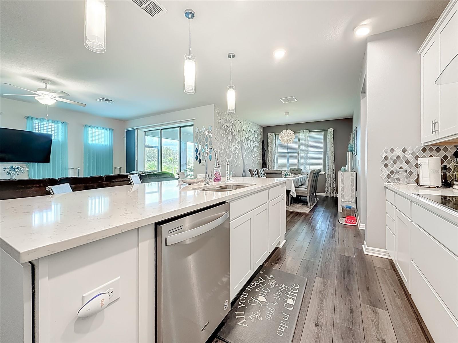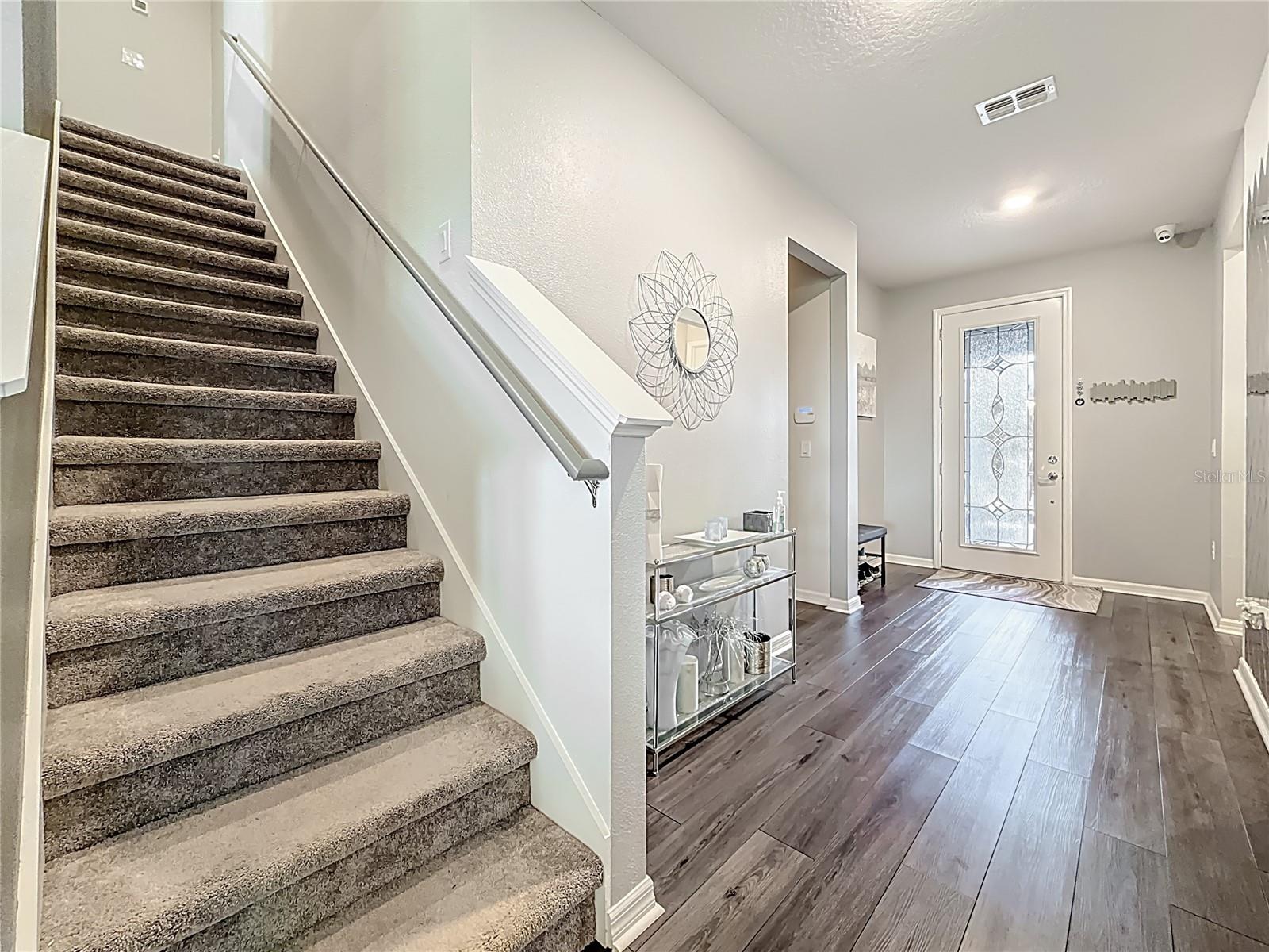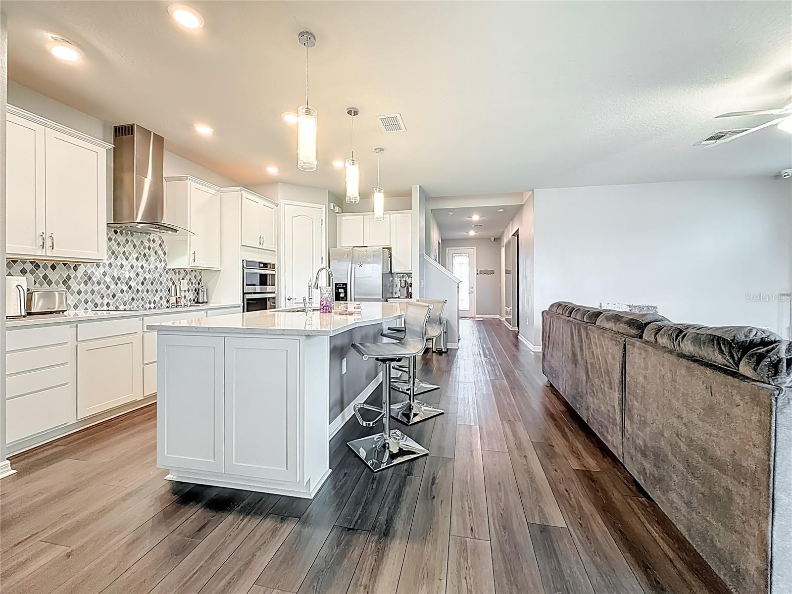 Bem-vindo à casa dos seus sonhos no condomínio fechado Epperson Ranch em Wesley Chapel, Flórida! Esta deslumbrante casa de 4 quartos e 3 banheiros com um escritório dedicado combina design moderno, eficiência energética e vida em estilo resort. Entre para descobrir uma planta aberta e arejada com piso de madeira vinílica nas principais áreas de estar e carpete cinza macio nos quartos. A luminosa sala de estar possui portas de vidro deslizantes empilháveis que se abrem para um grande pátio coberto, perfeito para relaxar ou se divertir no lindo clima da Flórida. A cozinha gourmet apresenta eletrodomésticos de aço inoxidável, bancadas de granito, elegantes armários de madeira e uma ilha espaçosa com assentos - ideal para reuniões familiares e receber amigos. Uma sala de jantar formal adiciona um toque de sofisticação para ocasiões especiais. A suíte principal do primeiro andar oferece um retiro tranquilo com pias duplas, box amplo e closet espaçoso. Dois quartos adicionais, uma casa de banho completa e um escritório privado completam o primeiro andar. No andar de cima, uma generosa área de loft – atualmente uma sala de jogos – pode facilmente ser usada como home theater, sala de jogos ou espaço secundário. O quarto quarto e o terceiro banheiro completo no andar de cima proporcionam privacidade para hóspedes ou familiares. Desfrute de atualizações modernas, incluindo um sistema de som surround Yamaha, sistemas HVAC duplos, painéis solares e um sistema de segurança para conforto, eficiência e tranquilidade. Morar no Epperson Ranch significa acesso a comodidades de classe mundial, incluindo a famosa Metro Lagoon, iluminação pública ecológica, Eagle Park com trilhas para caminhada e áreas de piquenique, Lake House com academia e espaços para eventos, parque para cães, jardim de borboletas, lote para carrinhos de golfe e caminhos para carrinhos de golfe. O HOA inclui cabo e internet de altíssima velocidade, oferecendo ainda mais valor. Convenientemente localizada perto do centro de Tampa, das praias do Golfo e das principais rodovias, esta casa oferece o equilíbrio perfeito entre luxo, conforto e comunidade. Não perca a oportunidade de tornar sua casa incrível - agende sua exibição privada hoje mesmo!