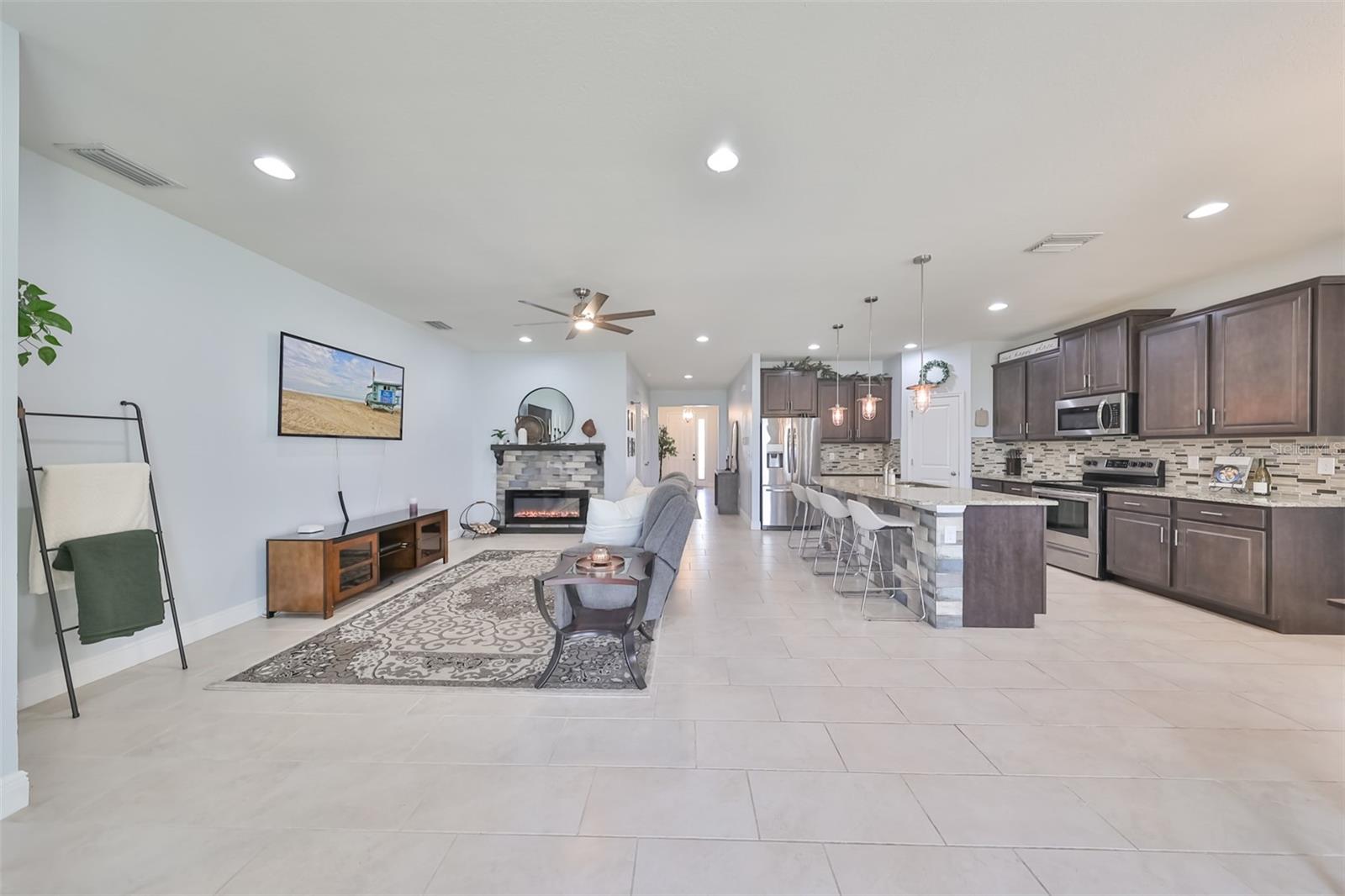 Confira esta incrível descoberta em Wesley Chapel, FL! Esta beleza de 4 quartos e 2,5 banheiros tem todas as atualizações que você poderia desejar. Entre e você notará os corredores largos que levam a um layout inteligente de quarto dividido que faz sentido. A sala é super aconchegante, com lareira elétrica e piso de cerâmica fácil de limpar que mantém o visual elegante. A cozinha? É um empecilho total! Pense em armários de café expresso, bancadas de granito e aquelas luminárias pendentes sobre uma grande ilha. Perfeito para receber amigos ou simplesmente sair. Há ainda espaço para uma grande mesa de jantar onde você pode preparar refeições memoráveis. Saia pelas portas de vidro deslizantes para uma varanda com tela, onde você pode desfrutar da brisa da Flórida sem que nenhum vizinho do quintal atrapalhe seu estilo. É aberto, é privado e parece perfeito. O quarto principal é o seu próprio refúgio com closet, banheiro privativo luxuoso com banheira de jardim, chuveiro independente, pias duplas e vaso sanitário privativo. E quando se trata de relaxar, a comunidade oferece um splash pad para as crianças, um parque para cães para seu amigo peludo e duas piscinas; um para relaxar e outro para voltas. Além disso, a subassociação fechada e o HOA cuidam do seu cabo, assim como da internet. Morar aqui é fácil, divertido e totalmente confortável. Esta casa não é apenas um espaço para viver, é um lugar para viver!