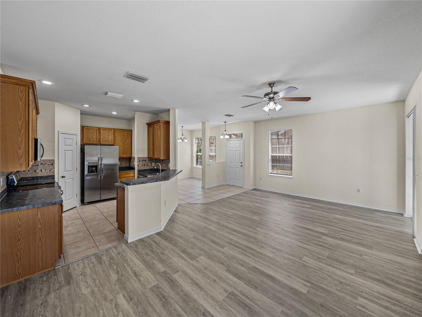 Chave na mão com 3 quartos, 2,5 banheiros, garagem para 2 carros, residência urbana em condomínio fechado de SelaCreek! Esta propriedade foi bem conservada e está a poucos minutos de vários locais desejáveis da Wesley Chapel. O primeiro andar oferece piso vinílico, recanto de entretenimento, e luz natural abundante através de dois conjuntos de portas de correr na ampla sala de estar. Com vista para a sala de estar, a cozinha possui amplo espaço de preparação na bancada, balcão para café da manhã assentos, um pacote de eletrodomésticos de quatro peças e uma grande despensa. Para um jantar mais formal experiência e comodidade, sala de jantar, lavabo e lavanderia completam o primeiro andar. No andar de cima, a espaçosa suíte principal é lindamente equipada com piso vinílico, ventilador de teto, closet e banheiro privativo com banheira/chuveiro de jardim. Também no 2º andar encontram-se 2 quartos de hóspedes e uma 2ª casa de banho completa. Aproveite o ar livre no pátio traseiro, nade na piscina comunitária ou dê um passeio pela rua ladeada de calçadas. As residências urbanas de SaddleCreek ficam perto de Grove, Krate, muitos restaurantes locais, serviços médicos instalações e principais rodovias. Ligue-nos hoje para sua exibição privada!