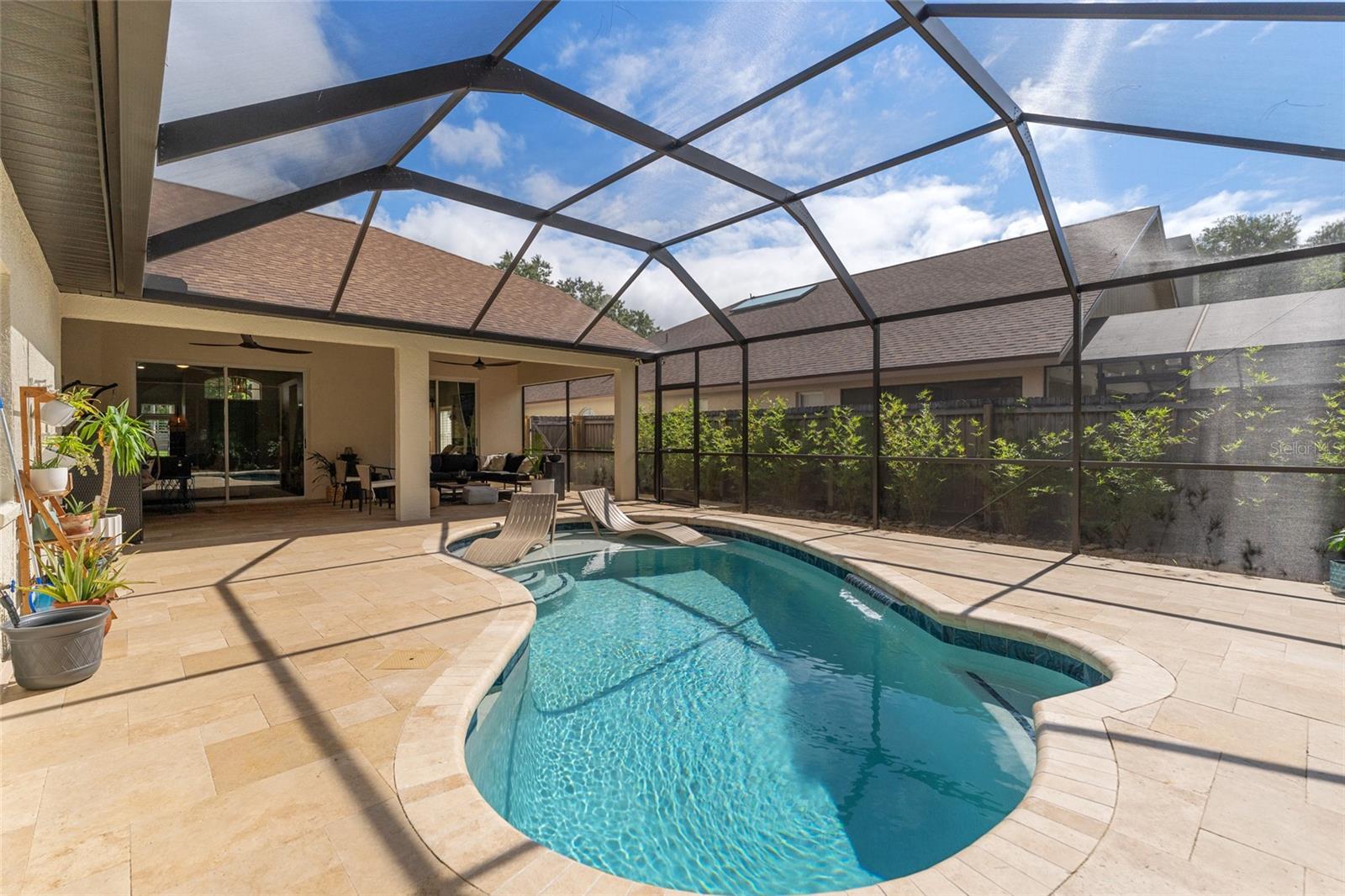 Ao entrar na casa, você será saudado por tetos altos de 13 pés que criam um ambiente grandioso e espaçoso. As renovações interiores (2023) transformaram esta casa numa obra-prima moderna. A cozinha foi totalmente refeita com armários Shaker com prateleiras removíveis e gavetas com fechamento suave. Ele também possui duas despensas, bancadas de quartzo, iluminação LED sob o gabinete e eletrodomésticos de aço inoxidável - criando o espaço dos sonhos de um chef. Ambos os banheiros foram cuidadosamente projetados com penteadeiras Shaker, gavetas com fechamento suave, bancadas de quartzo e portas de box de vidro sem moldura. O banheiro principal é particularmente opulento, com espelho LED sensível ao toque e banheira de hidromassagem. O piso de toda a casa foi atualizado para madeira de lei projetada, enquanto os banheiros e a lavanderia apresentam porcelanato. Nenhum detalhe foi esquecido nas atualizações internas - novos rodapés foram instalados por toda parte e venezianas adornam a sala de jantar, a área de estar, a cozinha e a suíte principal. Novas persianas foram adicionadas ao banheiro secundário e outros quartos. Todo o interior foi pintado recentemente. Novas luminárias, iluminação embutida e ventiladores internos adicionam um toque de elegância a todos os ambientes. As renovações da área da piscina concluídas em 2024 transformaram-na num verdadeiro oásis ao ar livre. Pavimentos de travertino agora enfeitam a área da piscina e do pátio, proporcionando uma superfície atemporal e durável. A piscina em si foi recapeada com mini seixo de quartzo e apresenta novos azulejos, uma prateleira de sol e uma cachoeira cativante. A gaiola da piscina foi pintada e redesenhada, e novas portas foram instaladas. A adição de um teto de varanda macho e fêmea de madeira com ventiladores inteligentes adiciona um toque de charme dos velhos tempos. Além disso, foram instaladas uma nova bomba de piscina e um sistema de água salgada, garantindo uma experiência de natação imaculada. No exterior, as melhorias exteriores e paisagísticas melhoram o apelo geral da propriedade. Uma nova camada de pintura externa dá à casa uma aparência polida, enquanto a adição de uma campainha e amaciante de água proporciona conveniência e funcionalidade. O quintal com vista para o terreno de conservação privado foi totalmente vedado, com uma combinação de cercas de madeira e vinil instaladas. O sistema de irrigação dos jardins da frente e dos fundos também foi atualizado, garantindo um paisagismo exuberante e vibrante. Situada em um local desejável, esta casa oferece fácil acesso à I-75 e fica próxima ao Tampa Prime Outlet Mall, vários restaurantes, shopping centers, hospitais e muito mais. Sem taxas de CDD e com HOA baixo, esta propriedade realmente oferece o melhor dos dois mundos - qualidade e conveniência excepcionais. Não perca a oportunidade de fazer desta a sua nova casa.