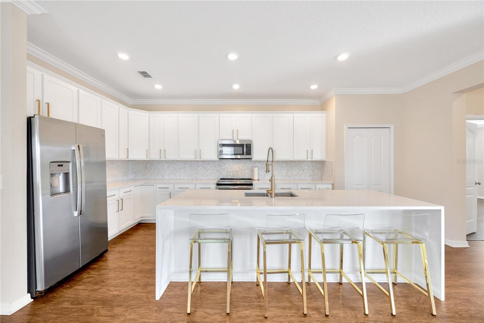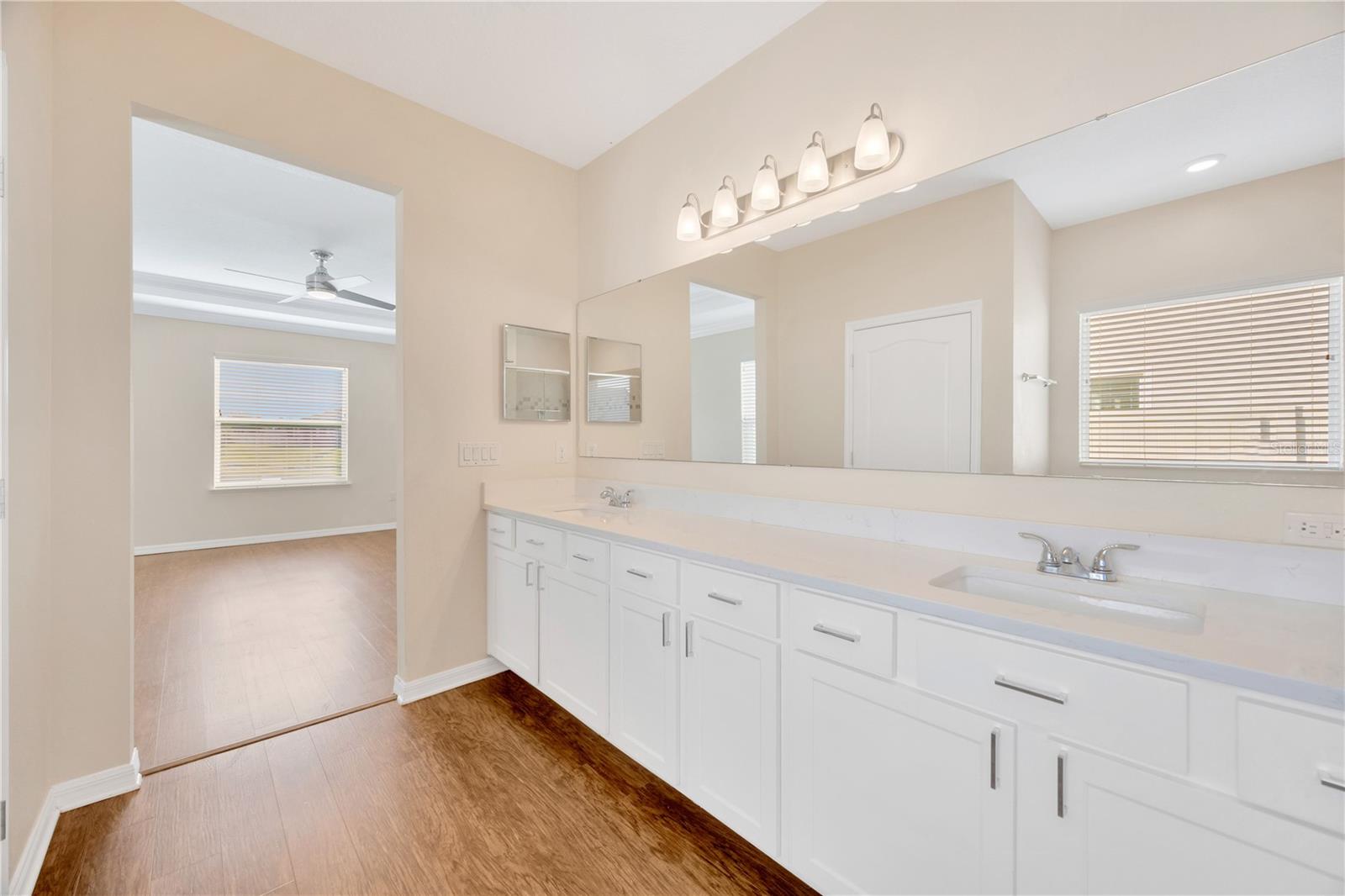Bem-vindo à casa dos seus sonhos na cobiçada comunidade Wi-Fi Metro Epperson Ranch! Esta linda casa de quatro quartos e dois banheiros oferece uma vista deslumbrante para o lago, oferecendo tranquilidade à sua porta. Localizado em um condomínio incrível, você terá acesso exclusivo a comodidades de alto nível, garantindo um estilo de vida de conforto e conveniência. Entre em uma espaçosa cozinha e sala familiar de conceito aberto, onde abundam os toques modernos. A cozinha apresenta atualizações elegantes, como backsplash estiloso, puxadores contemporâneos e sancas, tudo complementando o design elegante da casa. O quarto familiar é aprimorado com armazenamento e decoração embutidos, incluindo uma TV, tornando-o o local perfeito para relaxar ou se divertir. Aprecie a vista serena do lago no conforto da sua varanda, um espaço ideal para café da manhã ou reuniões noturnas. O quarto principal é um verdadeiro retiro, oferecendo amplo espaço para uma suíte king-size. O banheiro privativo é um refúgio semelhante a um spa, completo com um grande chuveiro luxuoso, banheira de imersão, pia dupla e lavatório separado. A planta dividida da casa garante privacidade para todos, com os quartos adicionais cuidadosamente localizados longe da suíte master. Um lindo hall de entrada recebe você em casa todos os dias, dando o tom para a elegância que o aguarda no interior. Localizada perto da vibrante área de Wesley Chapel, esta casa inclui serviços de TV a cabo, internet e lixo, todos cobertos pela taxa HOA. A comunidade Epperson aceita carrinhos de golfe, com trilhas e túneis serpenteando por todo o bairro, perfeitos para explorar os parques adicionais, playgrounds, parques para cães e espaços verdes que tornam esta área tão desejável. A LAGOA, peça central da comunidade, oferece praias de areia, cabanas, bar aquático e uma variedade de atividades como paddle boarding, caiaque, pista de obstáculos e eventos musicais. Com filmes no gramado, noites de karaokê e desafios de curiosidades, sempre há algo acontecendo no Epperson, tornando-o o lugar perfeito para viver, brincar e criar memórias duradouras. Não perca a chance de chamar esta propriedade excepcional de lar!