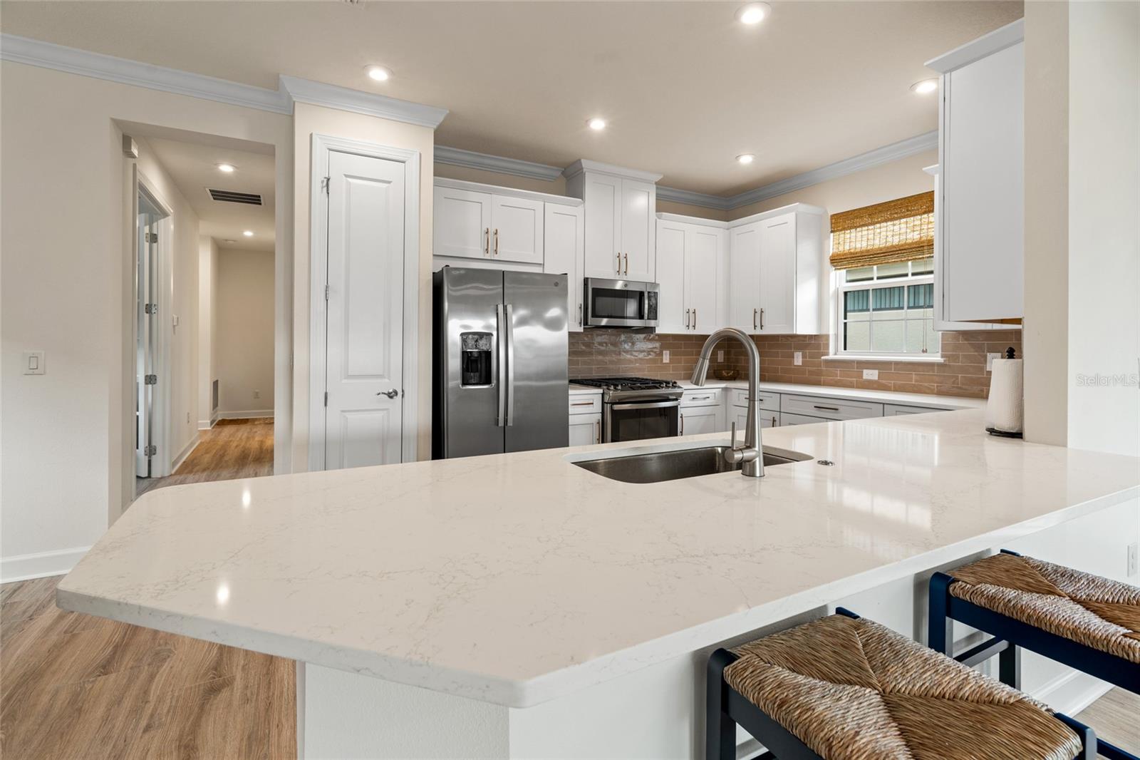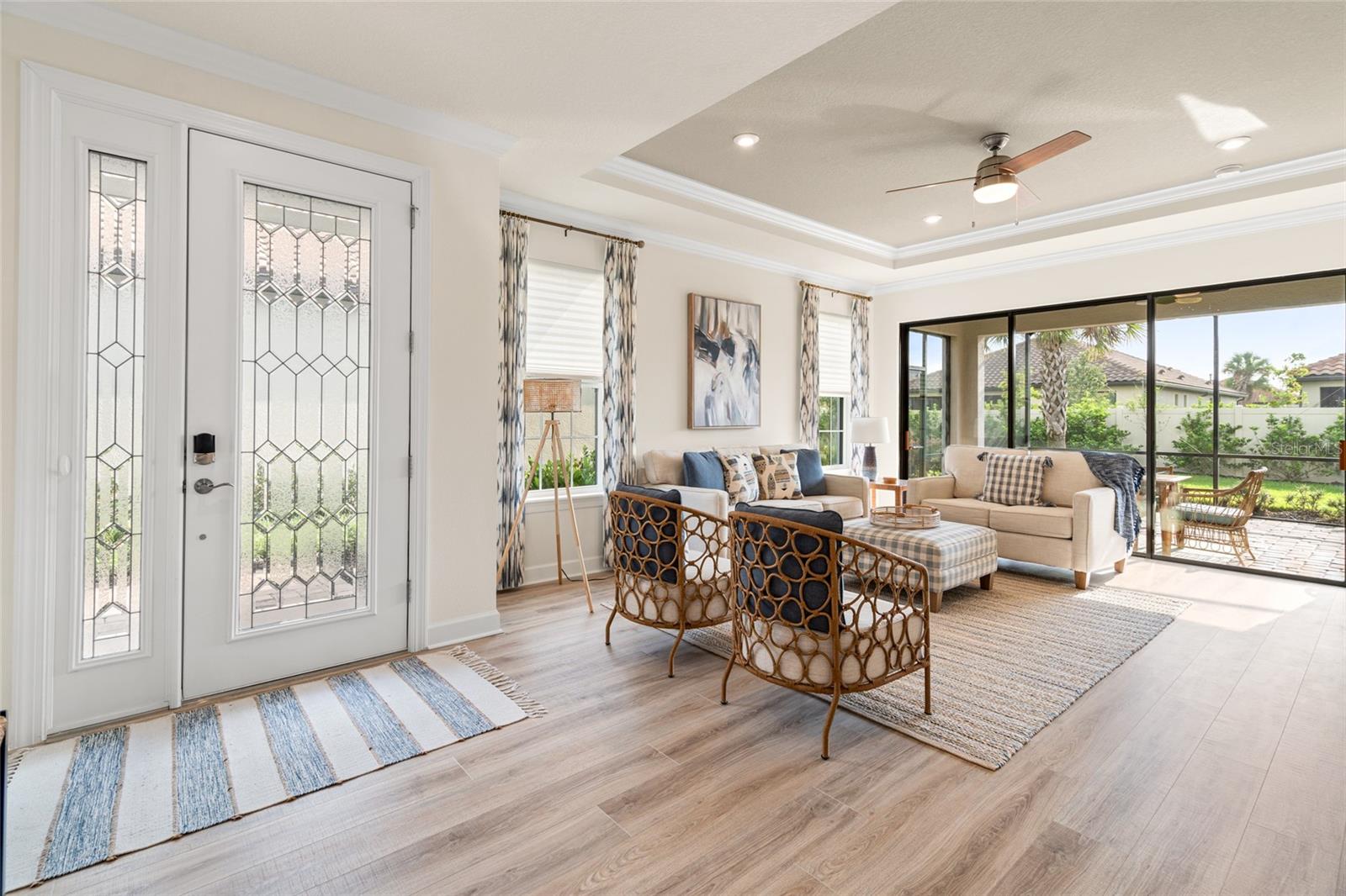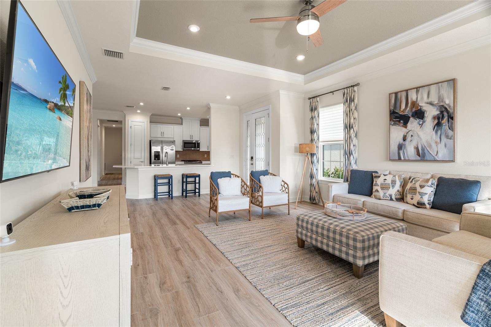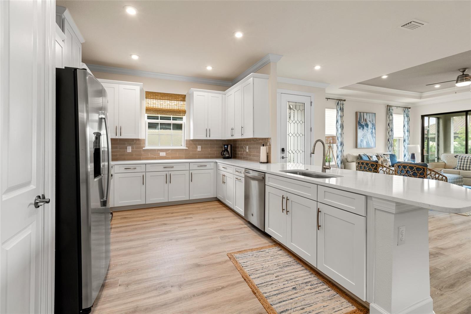 Bem-vindo ao lar! Elegante e lindamente decorada casa pronta para mudança de Taylor Morrison em Esplanade no Wiregrass Ranch, localizada na comunidade de luxo Premier 55+ Resort Style & Maintenance Free de Wesley Chapel. O vendedor está oferecendo este modelo Arezzo requintado e espaçoso de 1926 pés quadrados com móveis negociáveis. A casa possui 3 quartos e 2 banheiros completos, escritório/escritório privativo com portas francesas com moldura de vidro. A Lanai privada pavimentada com tela estendida inclui churrasqueira a gás embutida, geladeira para bebidas, balcão de granito de bom gosto com pia. Relaxe com a família e amigos ou curta seu evento esportivo favorito na TV externa! O interior possui piso de tábuas largas decorado com bom gosto, tons suaves, tetos trey e ampla luz natural das janelas de atualização do Tilt-in Dual Pane Builder. A imponente entrada frontal cria um abraço acolhedor à singularidade interior. Orgulho de ter uma casa própria é um eufemismo! O modelo Arezzo apresenta um layout de quarto dividido em planta aberta. O quarto principal com suíte completa fica escondido longe dos quartos secundários. O banheiro privativo inclui pia dupla individual com bancada de quartzo, chuveiro espaçoso com azulejos elegantes, banheiro privativo e closet master split completo! Os quartos secundários apresentam piso berbere com acesso ao banheiro completo, também adornado com um lindo balcão de quartzo, pias duplas e chuveiro elegantemente revestido de azulejos. Os recursos adicionais incluem: todos os eletrodomésticos permanecem em casa, cozinha deslumbrante com armários de 42', balcões de quartzo, eletrodomésticos de aço inoxidável GE (fogão a gás de convecção com perfil GE) e torneira sem toque e pia de cozinha de 9" em aço inoxidável; Moldura de coroa por toda parte, refrigerador de vinho na sala de jantar, sala de estar inclui protetor solar elétrico, lavanderia com armários de tamanho grande, balcões e pia de Corian, tratamentos de janela personalizados em todos os quartos e sala de família, aquecedor de água a gás comercial, porta de garagem isolada, amaciante de água , conjunto de lavadora e secadora Whirlpool, portas de sala de 8 pés por toda parte, muitas, muitas mais atualizações para compartilhar! Suas taxas HOA incluem: cuidado do gramado, TV a cabo Spectrum e Internet, manutenção do sistema de irrigação e água recuperada, remoção de lixo e todas as comodidades do resort! Esplanade possui um Clubhouse de atividades completas com piscina e spa, cabanas, academia de ginástica de última geração, sala de bilhar/cartas, quadras de pickleball, parque para cães, quadra de bocha, quadras de tênis e gerente de estilo de vida em tempo integral no local para ajudar com seu precisa. Defina uma data de jogo! Idealmente localizado perto de escolas, shoppings, restaurantes, pista de hóquei no gelo e MUITO MAIS. Acesso à principal rodovia interestadual ao centro de Tampa e às praias a poucos minutos de distância!