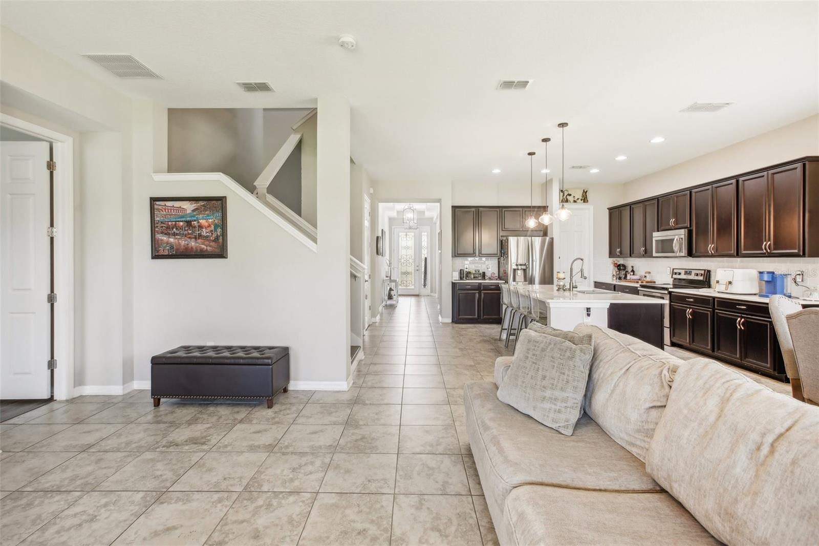 Bem-vindo a esta casa lindamente decorada de 4 quartos e 3,5 banheiros com um escritório, um novo telhado AC e novo localizado na comunidade desejável da Country Walk em Wesley Chapel. Esta residência excepcional apresenta um espaçoso quarto primário no primeiro andar, junto com uma sala de estar brilhante, uma área de jantar elegante e uma cozinha atualizada com aparelhos de última geração e bancadas de granito. No andar de cima, você encontrará três quartos adicionais, dois banheiros completos e um loft versátil, todos aprimorados por um piso deslumbrante que se estende por todo o segundo andar, escritório e quarto primário. Saia para uma varanda ampla e encantadora, oferecendo uma vista serena do vasto quintal cercado e um lago pacífico. O amaciador de água de alta eficiência incluído, bem como construído em cães. Situado em um lote de 0,21 acres, esta casa combina luxo, conforto e beleza natural. Não perca a chance de possuir esta propriedade notável!