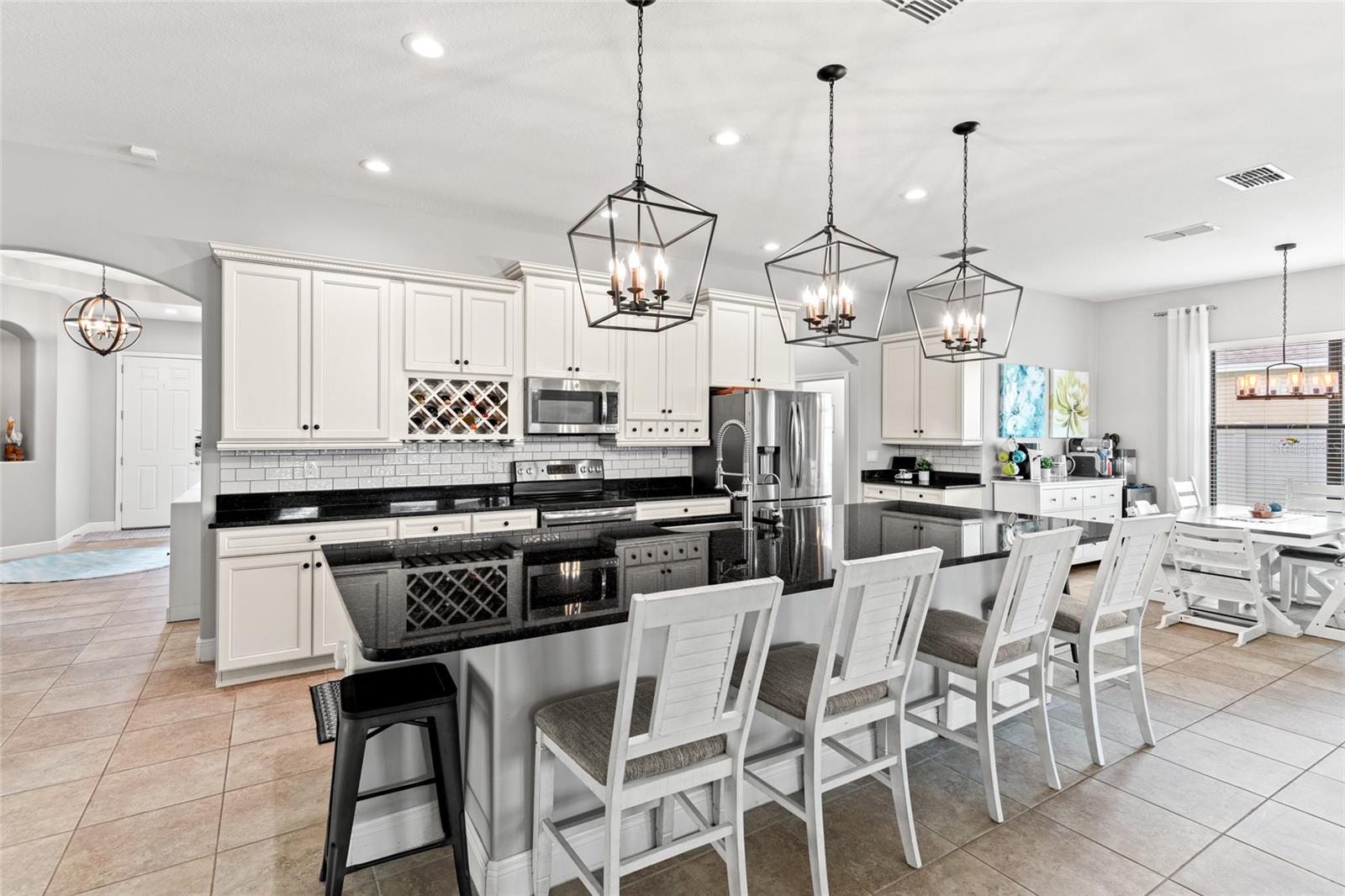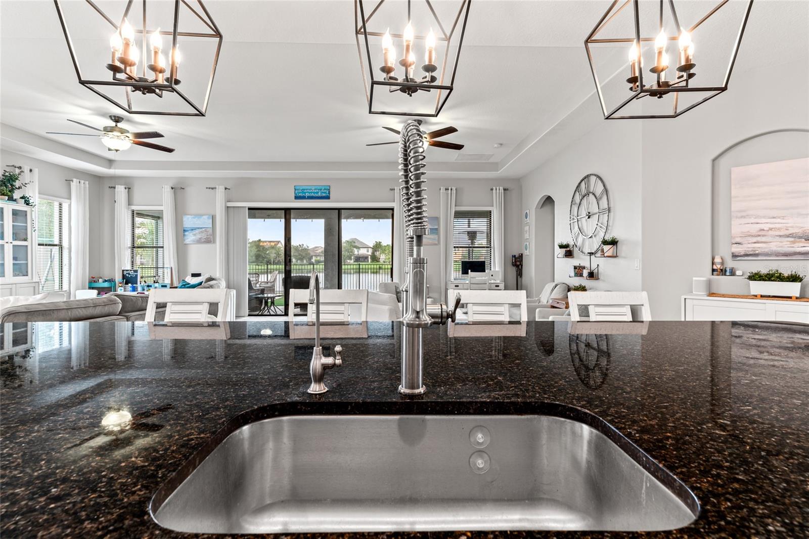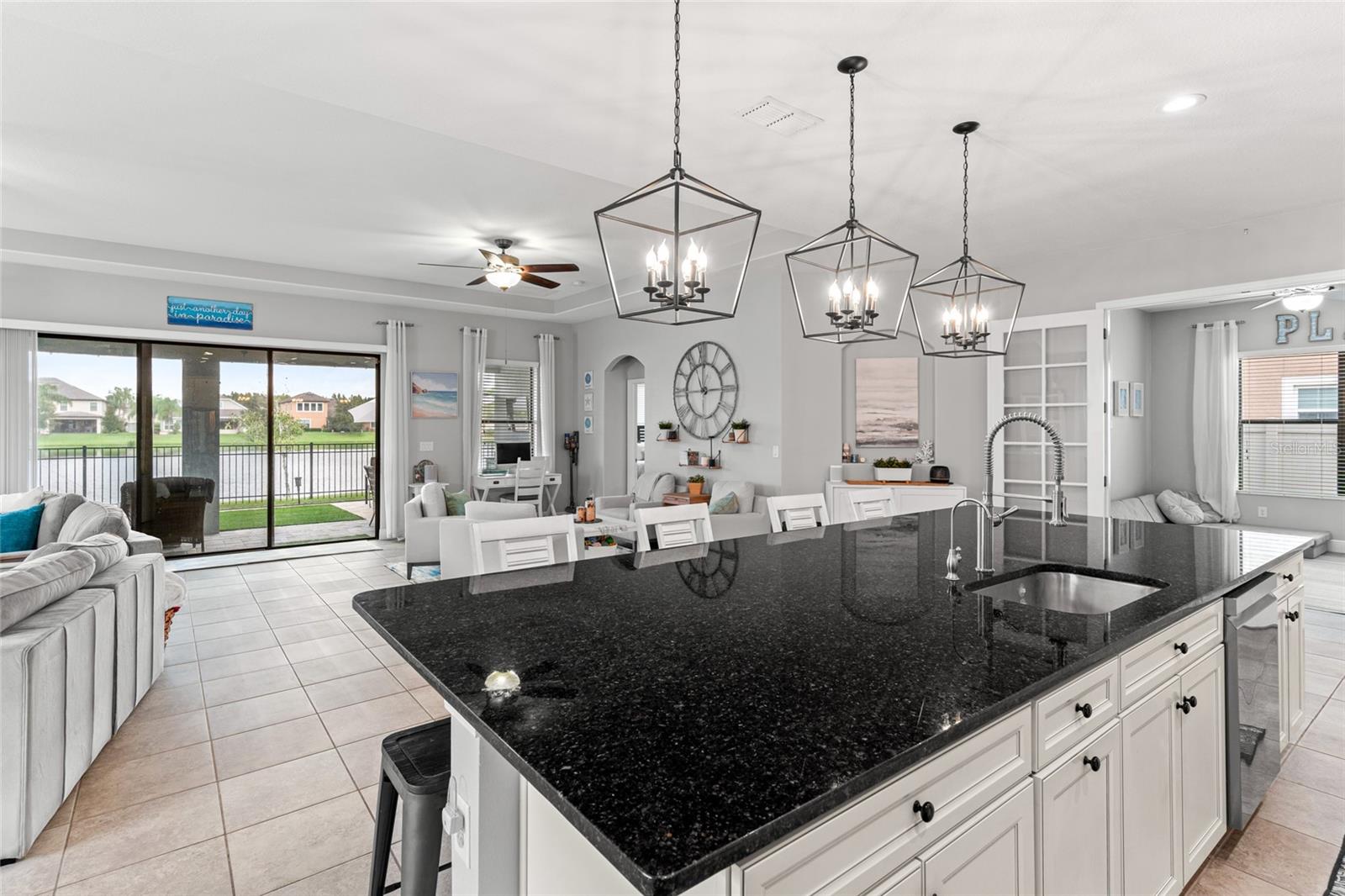 Esta casa espetacular está localizada no UNION PARK em Watoga Loop, situada em um terreno premium com vista para a água. Ao se aproximar da frente da casa, você apreciará o quão meticulosamente os vendedores cuidaram da casa, a apelação do freio é inigualável. Ao entrar na frente da casa você notará quanta luz natural existe. Esta planta Split permite o máximo de privacidade para o retiro dos proprietários que fica nos fundos da casa, com grandes janelas com vista para o lago, closet e banheiro privativo com banheira de imersão, box amplo e duas pias. Dois quartos secundários ficam na frente e compartilham um banheiro Jack & Jill, e ambos têm um bom espaço no armário. Há também um banheiro de 1/2 hóspedes no corredor. No final do corredor você entrará na parte principal da casa, que é um conceito de ótimo ambiente. Quando você entra pela primeira vez à direita há uma sala Flex com portas francesas de vidro, os proprietários atualmente usam esta sala de jogos, também é um ótimo espaço de escritório, sala de jantar formal e tantos outros usos para este espaço. A cozinha possui muitos armários superiores e inferiores, bancadas de granito reluzentes, eletrodomésticos de aço inoxidável, garrafeira e uma enorme ilha central de 12 pés de comprimento com muito espaço para sentar e belas vistas para o exterior Lanai e água. Há área de jantar e os proprietários têm área de tv e área de estar para conversação, as possibilidades de montar a grande sala são infinitas. Há muitas janelas grandes na grande sala que trazem muita luz natural e os controles deslizantes de 12 pés levam à varanda. Ao passar pelos controles deslizantes, você se apaixonará pela ampla varanda com tela que percorre toda a parte de trás da casa, com vistas espetaculares e desobstruídas do lago e da vida selvagem, bem como pavimentação e grama de nível superior (seguro para animais de estimação). espaço. No interior da casa existe uma grande despensa e uma ampla lavandaria e não podemos esquecer a garagem para 3 carros. Existe um sistema de osmose reversa, bem como um amaciador de água. A casa tem um pátio lateral estendido que é totalmente cercado, assim como o quintal. Union Park é uma bela comunidade repleta de trilhas para caminhada, parques para cães, club house, 2 piscinas, quadras de basquete e muito mais. Tudo o que você deseja ou precisa está a uma curta distância de carro, supermercados, hospitais, escolas, todos os tipos de compras e muito mais