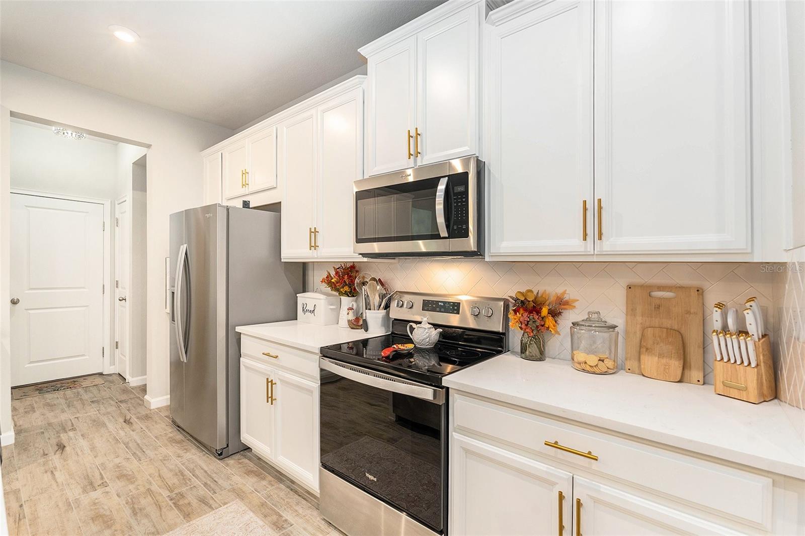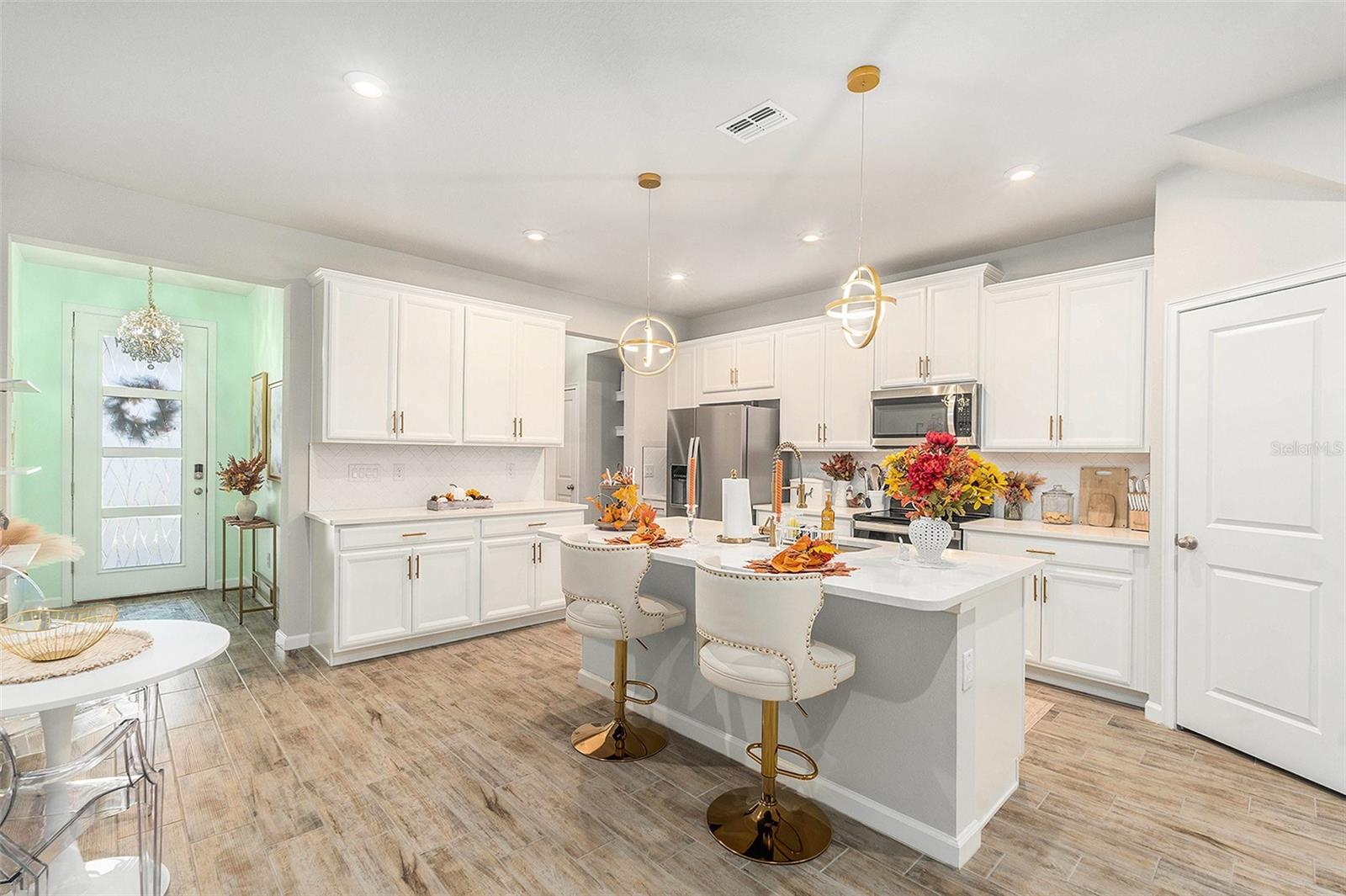 Bem-vindo ao 5513 Brooklet Woods Drive, uma residência urbana recém-construída em 2024 na área altamente desejável de Wesley Chapel. Esta casa apresenta a popular planta Marianna, oferecendo 3 quartos, 2,5 banheiros e 1.667 pés quadrados de área útil cuidadosamente projetada. O que realmente diferencia esta residência urbana de outras novas construções padrão da mesma planta baixa são as atualizações personalizadas adicionadas pelo atual proprietário, incluindo ferragens douradas nos armários, uma torneira dourada na cozinha e novas luminárias em toda a casa - incluindo pingente elegante luzes sobre a ilha e vários lustres – recursos normalmente não encontrados em novas construções deste modelo. A casa irradia claro orgulho de propriedade, com cada atualização adicionando estilo e função. A cozinha gourmet é um verdadeiro destaque, com bancadas de quartzo, elegantes detalhes em ouro e eletrodomésticos de aço inoxidável, tudo contra um impressionante backsplash de azulejos em espinha de peixe. Todo o primeiro andar é revestido com luxuosos ladrilhos vinílicos que imitam a aparência da madeira, oferecendo durabilidade e um visual moderno e polido. No andar de cima, a suíte principal oferece um retiro espaçoso com três closets e um banheiro lindamente decorado com box amplo e bancadas de quartzo. Dois quartos adicionais compartilham um banheiro lindamente projetado, também com balcões de quartzo. Uma espaçosa área de loft no segundo andar oferece espaço flexível para um escritório doméstico, sala de jogos ou uma segunda área de estar. Aproveite o ar livre no pátio traseiro, um lugar perfeito para relaxar e descontrair. A garagem anexa para 1 carro oferece comodidade e armazenamento extra. O estacionamento para hóspedes está convenientemente localizado do outro lado da rua, facilitando as visitas de amigos e familiares. A própria comunidade oferece comodidades incríveis, incluindo uma piscina estilo rio lento, um clube, quadras de picles e muito mais, tornando-a o lugar perfeito para relaxar e aproveitar a vida na Flórida. Localizada perto de escolas, lojas, restaurantes e principais rodovias, esta casa pronta para morar é imperdível. Agende hoje mesmo sua exibição privada e experimente os detalhes excepcionais que tornam esta casa única!