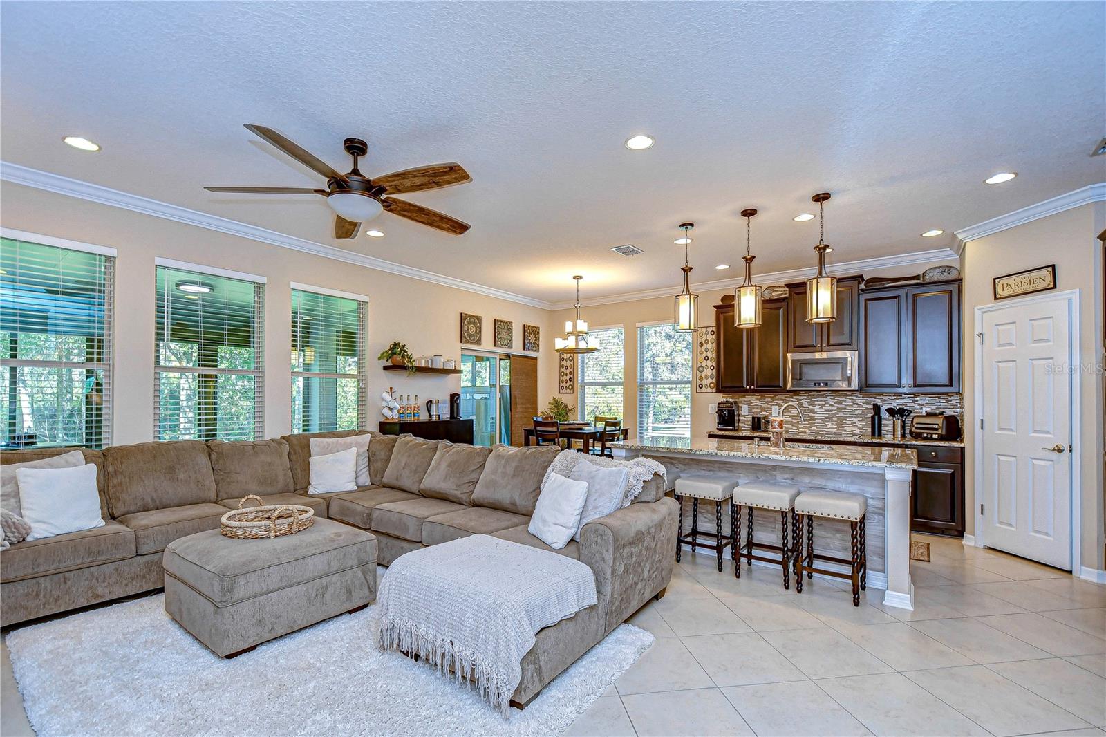 Situada na serena comunidade Country Walk de Wesley Chapel, esta deslumbrante casa de 4 quartos e 2 banheiros é uma verdadeira joia, perfeitamente situada em um terreno de conservação no final de um tranquilo beco sem saída. Com uma variedade de características requintadas e uma localização privilegiada, esta propriedade foi projetada para oferecer conforto e estilo. Ao entrar, você será saudado pelo elegante hall de entrada estendido e pelos tetos que adicionam personalidade e charme a toda a casa. As espaçosas áreas de estar são realçadas por belas paredes, criando um ambiente acolhedor e convidativo para reuniões familiares ou noites aconchegantes. As sancas adicionam um toque de sofisticação, elevando a estética de cada quarto. O coração da casa é, sem dúvida, a cozinha lindamente desenhada, completa com uma despensa embutida que oferece amplo armazenamento para todas as suas necessidades culinárias. Quer você seja um aspirante a chef ou simplesmente goste de entretenimento, esta cozinha certamente impressionará. Retire-se para a luxuosa suíte master, que possui dois closets generosos para todos os itens essenciais do seu guarda-roupa. A lavanderia acabada se conecta convenientemente ao armário principal, facilitando o dia da lavanderia. Os destaques adicionais desta casa notável incluem ar condicionado substituído em 2020, pintura interior mais recente que refresca o ambiente e uma garagem estendida que oferece amplo estacionamento para familiares e convidados. A marquise fechada é um espaço versátil que pode ser transformado em escritório, sala de jogos, arrumos ou simplesmente num local sereno para desfrutar das vistas deslumbrantes sobre a área de conservação. A comunidade Country Walk oferece uma variedade de comodidades, incluindo piscinas cintilantes, parques bem cuidados e um clube acolhedor, promovendo um senso de comunidade e proporcionando inúmeras oportunidades de recreação e relaxamento. Não perca a chance de personalizar esta linda casa! Agende um passeio hoje e experimente a combinação perfeita de luxo, conforto e natureza neste paraíso de Wesley Chapel.