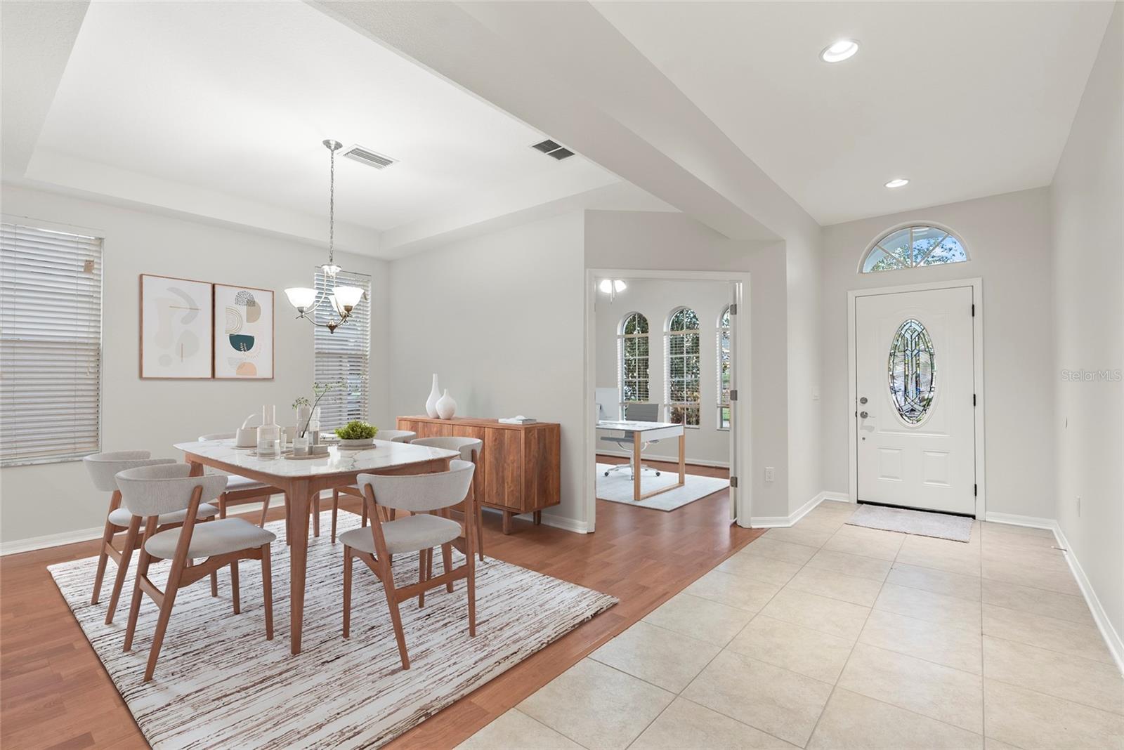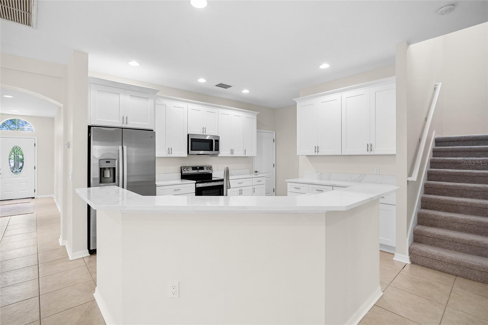 Oportunidade incrível na estimada Comunidade Country Walk de Wesley Chapel, onde a elegância se mistura perfeitamente com a vida moderna. Esta propriedade lindamente atualizada possui uma cozinha novíssima equipada com armários brancos intocados, bancadas de quartzo Calacatta, novos utensílios de aço inoxidável e uma espaçosa bar de café da manhã, tornando-o ideal para a família e os amigos. Atualizações adicionais incluem um telhado totalmente novo para sua paz de espírito, tinta fresca por dentro e por fora, luxuosos carpetes novos e uma vaidade recém-instalada no banheiro do hóspede no andar de baixo. Todos os aspectos desta casa mostram a qualidade e a atenção aos detalhes. Com cinco quartos generosos, dois banheiros adicionais (3 totais) bem projetados, um espaço de escritório dedicado e opções de refeições flexíveis, você experimentará funcionalidade e sofisticação por toda parte. Descontraia o quintal totalmente cercado pela fogueira, completa com belas vistas de conservação, enquanto desfruta de acesso conveniente a escolas altamente classificadas, hospitais e uma vibrante variedade de opções de compras e refeições centradas no coração da capela Wesley mais procurada, FL. Não perca a chance de possuir esta casa notável - faça o seu tour particular hoje e entre em um reino de elegância e conforto.