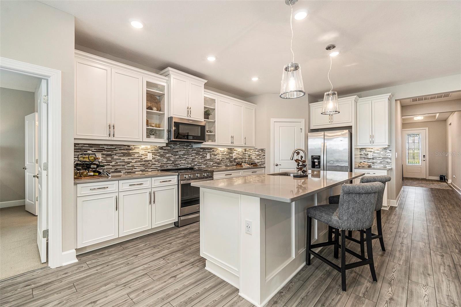 Bem -vindo para casa! Concessão de US $ 5.000 para o custo de fechamento disponível. Escondido na comunidade de capim -aquáticos, este quarto de quatro quartos, com bom gosto, três banheiros situado em um lote premium à beira -mar é simplesmente uma obrigação! O apelo do meio -fio é abundante com uma garagem de pavimentação e a entrada da frente da frente. Ao entrar, você será recebido por uma abundância de luz natural e encantada com o atraente piso de prancha que corre por toda a casa. Seu passeio começa na área de entrada dedicada e no teto de bandeja embutida. A planta baixa do quarto de três vias coloca dois quartos em sua própria asa na entrada, juntamente com um banheiro compartilhado. O terceiro quarto de hóspedes ocupa outra asa com seu próprio private ENSUITE. O Open Concept Living brilha na grande sala, com a cozinha com vista para as áreas de estar e de jantar. A cozinha salta das páginas da mais recente revista de design, nomeada com armários agitados de acabamento leve, bancadas de quartzo, utensílios de aço inoxidável, uma despensa e uma grande ilha com assentos de balcão. As áreas de estar e jantar compartilham vistas pitorescas da água com a área de jantar com uma porta de vidro deslizante que leva ao pátio coberto. A suíte proprietária é realmente adequada para a realeza, com vistas para a água e uma suíte privada completa com um chuveiro com uma porta de vidro cheia, uma vaidade de pia dupla e um amplo closet "dela" e armário de linho "dele". O quintal é superdimensionado com muito espaço verde ou uma futura piscina. A comunidade de capim -aquático apresenta comodidades inigualáveis com o clube de capim -aquático com uma piscina de tamanhos olímpicos, piscina de resort, clube, fitness center e quadras de tênis e basquete. Também incluído nas comodidades da comunidade está o Promenade Park com playground, piscina, splash pad, parque de cães e pavilhão. Localização maravilhosa com um novo Publix logo no final da estrada e fácil acesso à I-75 via Overpass Road.