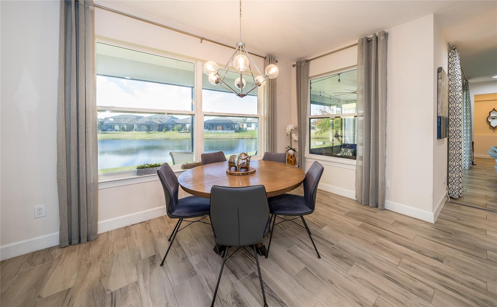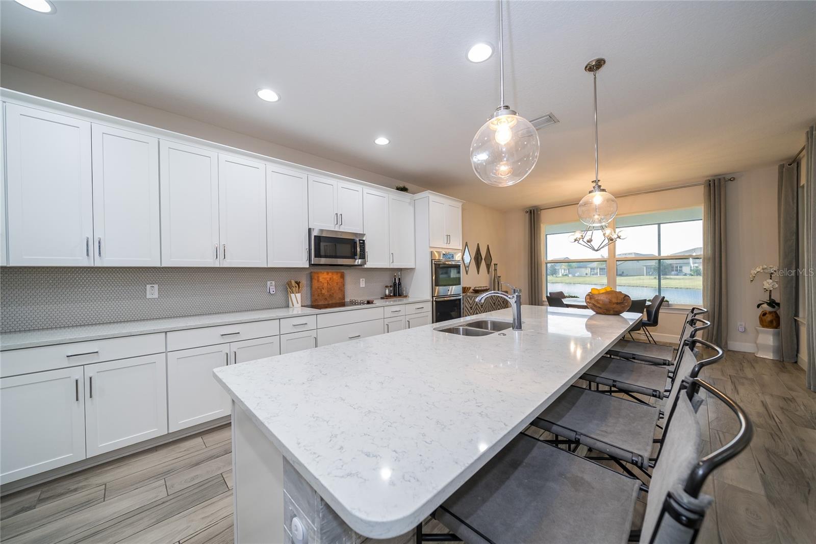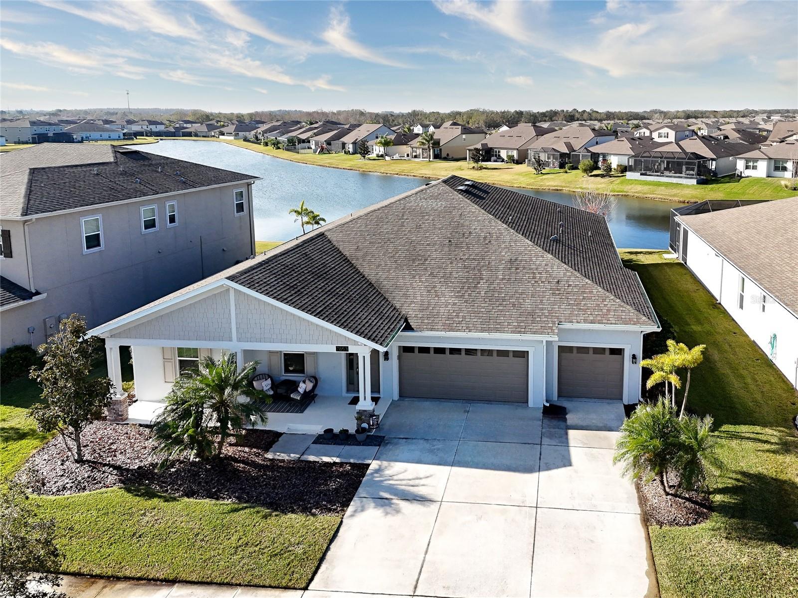 Bem-vindo a esta deslumbrante casa modelo antiga, a Abby by Avex! Ao se aproximar, reserve um momento para relaxar e aproveitar a espaçosa varanda frontal, perfeita para relaxar. Entre e seja recebido por uma entrada que realmente brilha com os toques únicos que você só encontra em um modelo de construtor. A sala/escritório frontal, com suas elegantes portas duplas de vidro, cria uma primeira impressão convidativa e, logo depois, a grande sala de jantar é ideal para jantares, reuniões familiares e para mostrar seu estilo pessoal com obras de arte ou fotos de família. A despensa do mordomo se conecta perfeitamente à ampla sala grande, cozinha e sala de jantar, continuando com os lindos pisos de tábuas de madeira por toda parte. As grandes janelas e portas de correr emolduram vistas deslumbrantes do lago, acrescentando uma sensação de tranquilidade à casa. A cozinha é o sonho de qualquer chef, com muitos armários e balcões, elegantes bancadas de quartzo, eletrodomésticos de aço inoxidável e uma espaçosa despensa. Esteja você desfrutando de um café da manhã casual na sala de jantar ou relaxando no bar de café da manhã enquanto aprecia a vista, este espaço rapidamente se tornará seu local favorito na casa. Uma característica de destaque na Grande Sala é o centro de entretenimento embutido, com espaço para uma grande TV de tela plana e prateleiras, gavetas e armários personalizados. A Suíte do Proprietário oferece o melhor retiro, completo com acesso privado à varanda e vista panorâmica do lago. O banheiro privativo dispõe de box amplo, azulejos do chão ao teto e controles duplos - perfeito para o máximo relaxamento. Os quartos dois, três e quatro oferecem amplo espaço e privacidade. O segundo quarto tem banheiro privativo e fica afastado das principais áreas de estar, tornando-o um quarto de hóspedes perfeito. Os quartos três e quatro são conectados por um conveniente banheiro Jack e Jill, com penteadeiras privativas e armários espaçosos. Na garagem para 3 carros, aproveite a área de armazenamento embutida para sapatos e mochilas, além da conveniente lavanderia e lavabo de hóspedes. Saia para a varanda com tela, onde você pode apreciar as vistas serenas da grama verdejante e do lago tranquilo. Este espaço é perfeito para relaxar ou se divertir, com espaço para sentar, mesa de jantar e churrasqueira. Como parte da sua casa própria, você terá acesso à cristalina Epperson Lagoon de 7 acres, um paraíso tropical com experiências exclusivas para residentes e aventuras aquáticas, bem no seu próprio quintal! Epperson é uma comunidade que aceita carrinhos de golfe e cães, com dois parques para cães e fácil acesso às principais conveniências. Você está a apenas 5 minutos da nova rampa de saída da I-75, do Wesley Chapel Recreational Park, do Publix, do Starbucks e muito mais. O shopping ao ar livre Grove/KRATE e o Tampa Premium Outlets ficam a apenas 10 minutos de distância, tornando este local perfeito para tudo o que você precisa.