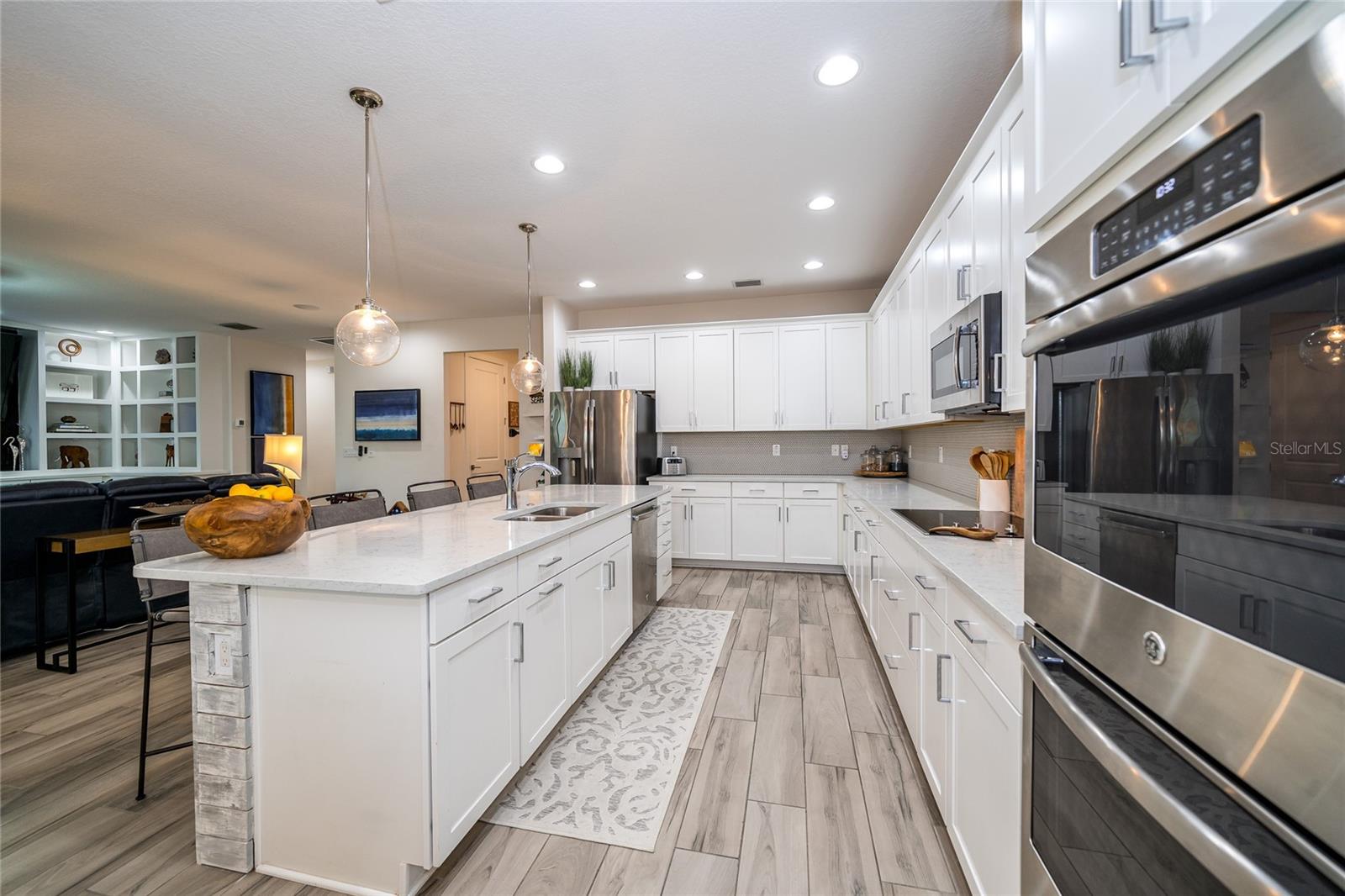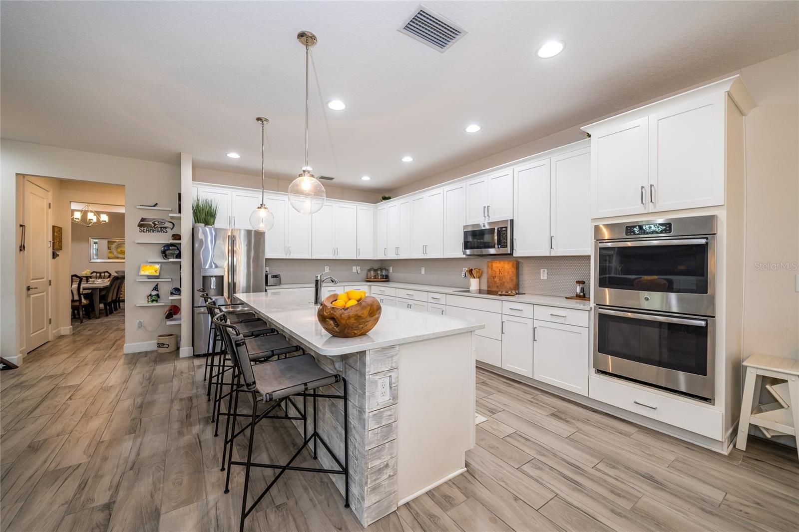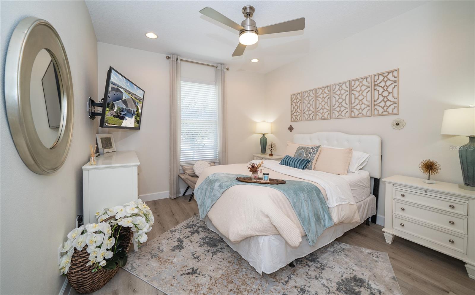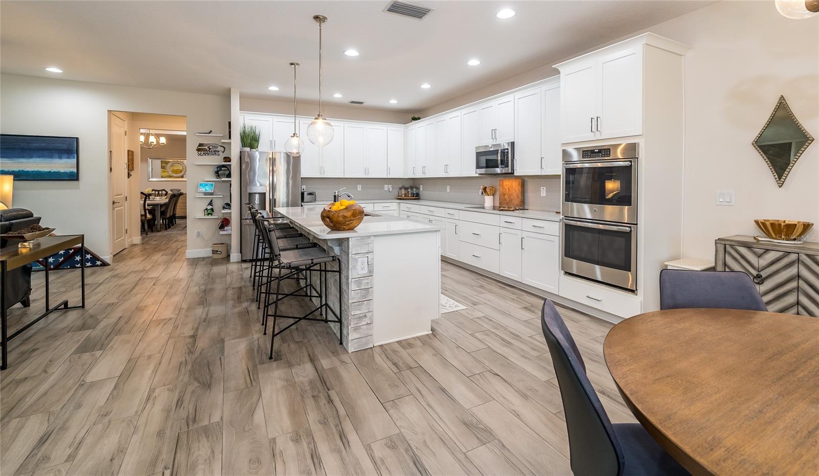 Bem-vindo a esta deslumbrante casa modelo antiga, a Abby by Avex! Ao se aproximar, reserve um momento para relaxar e aproveitar a espaçosa varanda frontal, perfeita para relaxar. Entre e seja recebido por uma entrada que realmente brilha com os toques únicos que você só encontra em um modelo de construtor. A sala/escritório frontal, com suas elegantes portas duplas de vidro, cria uma primeira impressão convidativa e, logo depois, a grande sala de jantar é ideal para jantares, reuniões familiares e para mostrar seu estilo pessoal com obras de arte ou fotos de família. A despensa do mordomo se conecta perfeitamente à ampla sala grande, cozinha e sala de jantar, continuando com os lindos pisos de tábuas de madeira por toda parte. As grandes janelas e portas de correr emolduram vistas deslumbrantes do lago, acrescentando uma sensação de tranquilidade à casa. A cozinha é o sonho de qualquer chef, com muitos armários e balcões, elegantes bancadas de quartzo, eletrodomésticos de aço inoxidável e uma espaçosa despensa. Esteja você desfrutando de um café da manhã casual na sala de jantar ou relaxando no bar de café da manhã enquanto aprecia a vista, este espaço rapidamente se tornará seu local favorito na casa. Uma característica de destaque na Grande Sala é o centro de entretenimento embutido, com espaço para uma grande TV de tela plana e prateleiras, gavetas e armários personalizados. A Suíte do Proprietário oferece o melhor retiro, completo com acesso privado à varanda e vista panorâmica do lago. O banheiro privativo dispõe de box amplo, azulejos do chão ao teto e controles duplos - perfeito para o máximo relaxamento. Os quartos dois, três e quatro oferecem amplo espaço e privacidade. O segundo quarto tem banheiro privativo e fica afastado das principais áreas de estar, tornando-o um quarto de hóspedes perfeito. Os quartos três e quatro são conectados por um conveniente banheiro Jack e Jill, com penteadeiras privativas e armários espaçosos. Na garagem para 3 carros, aproveite a área de armazenamento embutida para sapatos e mochilas, além da conveniente lavanderia e lavabo de hóspedes. Saia para a varanda com tela, onde você pode apreciar as vistas serenas da grama verdejante e do lago tranquilo. Este espaço é perfeito para relaxar ou se divertir, com espaço para sentar, mesa de jantar e churrasqueira. Como parte da sua casa própria, você terá acesso à cristalina Epperson Lagoon de 7 acres, um paraíso tropical com experiências exclusivas para residentes e aventuras aquáticas, bem no seu próprio quintal! Epperson é uma comunidade que aceita carrinhos de golfe e cães, com dois parques para cães e fácil acesso às principais conveniências. Você está a apenas 5 minutos da nova rampa de saída da I-75, do Wesley Chapel Recreational Park, do Publix, do Starbucks e muito mais. O shopping ao ar livre Grove/KRATE e o Tampa Premium Outlets ficam a apenas 10 minutos de distância, tornando este local perfeito para tudo o que você precisa.