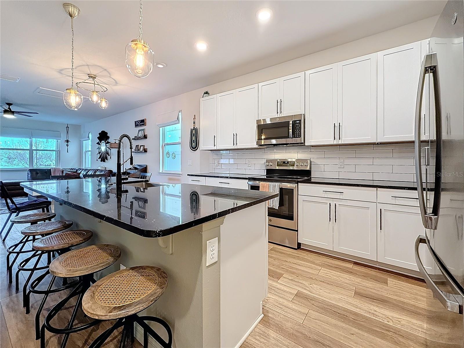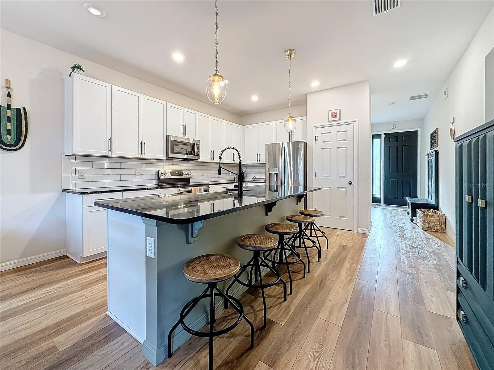 Bem -vindo ao Avalon Park West, uma das comunidades mais cobiçadas do mundo! Esta bela casa de Stanley Martin (Avex) fica em um lote à beira-mar e oferece 4 quartos espaçosos, 2,5 banheiros, uma área flexível no andar de cima e uma garagem espaçosa de 2 carros. No momento em que você chega, você será recebido por um exterior deslumbrante de pedra empilhada e paisagismo bem conservado que adiciona charme e apelo ao restrição. Ao caminhar pela porta da frente, você é imediatamente recebido por um layout aberto e arejado, toneladas de luz natural e um design contemporâneo. A cozinha é um verdadeiro destaque, com armários brancos elegantes, hardware moderno, bancadas em granito, utensílios de aço inoxidável e um backsplash de ladrilhos do metrô. A grande ilha com uma barra de café da manhã é perfeita para assentos extras ou uma mordida casual. A planta baixa inteligente coloca a suíte primária no primeiro andar para obter a privacidade final, longe dos outros quartos. A suíte em si é cheia de luz, possui um closet e oferece um banheiro privativo luxuoso com vaidades duplas, balcões de granito, um chuveiro decorativo e uma banheira de imersão-seu retiro pessoal! Um meio banho conveniente está localizado no térreo para os hóspedes. No andar de cima, você encontrará um espaço flexível versátil que poderia funcionar como escritório, sala de jogos ou segunda área de estar, além de três quartos adicionais que compartilham um banheiro espaçoso com pias duplas e uma combinação de chuveiro/banheira. Saia para o Lanai e relaxe com vistas serenas de água - perfeitas para beber café, ler ou simplesmente desfrutar do silêncio. O quintal cercado é ideal para animais de estimação e há uma área designada para grelhar e entretenimento ao ar livre. A garagem de grandes dimensões oferece amplo espaço de armazenamento e a garagem longa com portões duplos facilita o estacionamento de seus carros. O Avalon Park West tem todas as comodidades que você pode pedir: uma piscina comunitária, playground, parque de cães, splash pad, quadras de basquete, trilhas para caminhada e um clube. Além disso, fica a poucos minutos das compras, jantares, SR-54 e I-75!