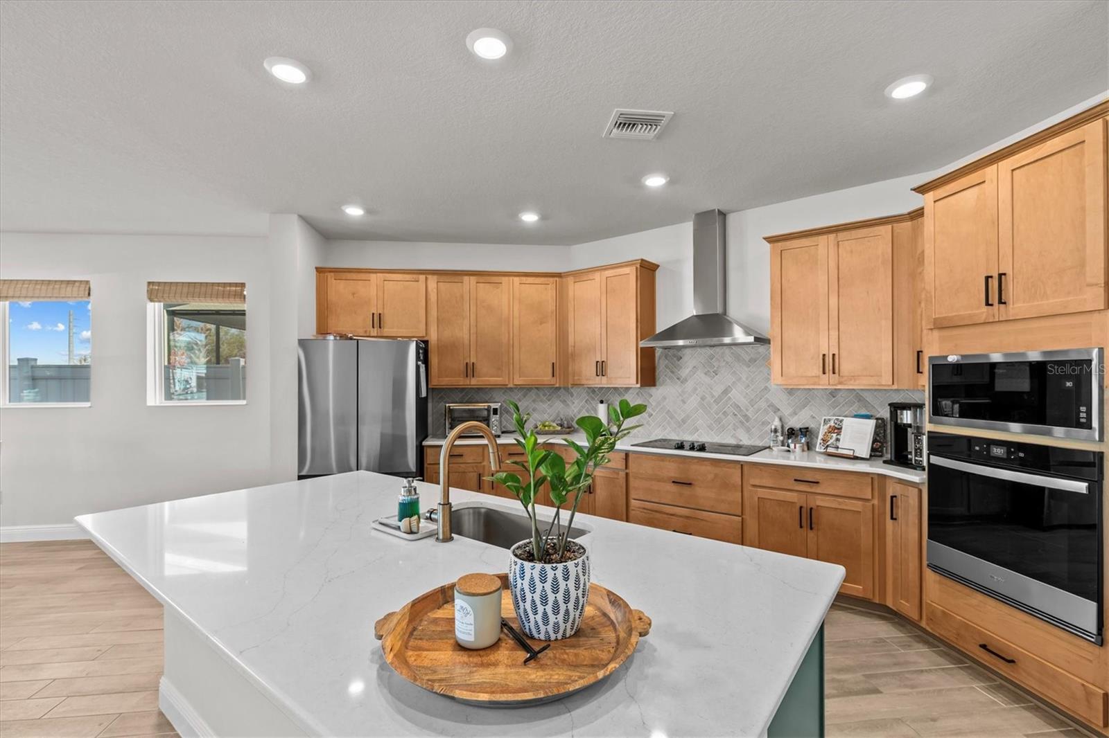 Like-New David Weekley Home em Persimmon Park! Bem-vindo a este modelo impressionante, David Weekley "Lennox", oferecendo a próxima melhor coisa para a nova construção! Com menos de um ano, esta casa vem com todos os benefícios de novas construções - além do bônus adicional sem esperar. E as garantias do construtor já estão em vigor para a paz de espírito. Localizada na comunidade procurada de pendimon parque, você estará perto de tudo o que a Wesley Chapel tem a oferecer. Sentado em um grande estacionamento de canto, esta casa é espaçosa e funcional. Ao entrar, você é recebido por um belo piso de prancha de ladrilhos que se estende por todo o primeiro andar, melhorando o design de conceito aberto que conecta perfeitamente a cozinha, a sala de estar e a área de jantar. A cozinha inspirada no chef possui armários personalizados, uma grande ilha perfeita para utensílios de aço inoxidável, bancadas de quartzo de nível 5 e um elegante backsplash de ladrilhos. Para maior conveniência, o centro de chegada embutido, perto da garagem, oferece um espaço organizado para todos os seus itens essenciais. O primeiro andar também possui um quarto adicional com portas duplas e um armário, ideal para um escritório, quarto de hóspedes ou espaço multifuncional. No andar de cima, você encontrará 4 quartos de tamanho generoso, cada um com armários grandes ou walk-in. A espaçosa área do loft oferece espaço flexível extra - perfeito para uma segunda área de estar, sala de jogos ou academia em casa. O quarto principal é um verdadeiro retiro, com um grande armário e um banheiro luxuoso que aumenta o apelo. Outras características especiais da casa incluem um pátio coberto com portas deslizantes triplas, oferecendo fácil acesso ao estacionamento traseiro adicional para os hóspedes, toneladas de luz natural por toda parte, cores de tinta neutra frescas e iluminação atualizada para elevar o espaço. Esta casa realmente tem tudo! Mudar-se pronto e esperando você fazer o seu próprio!