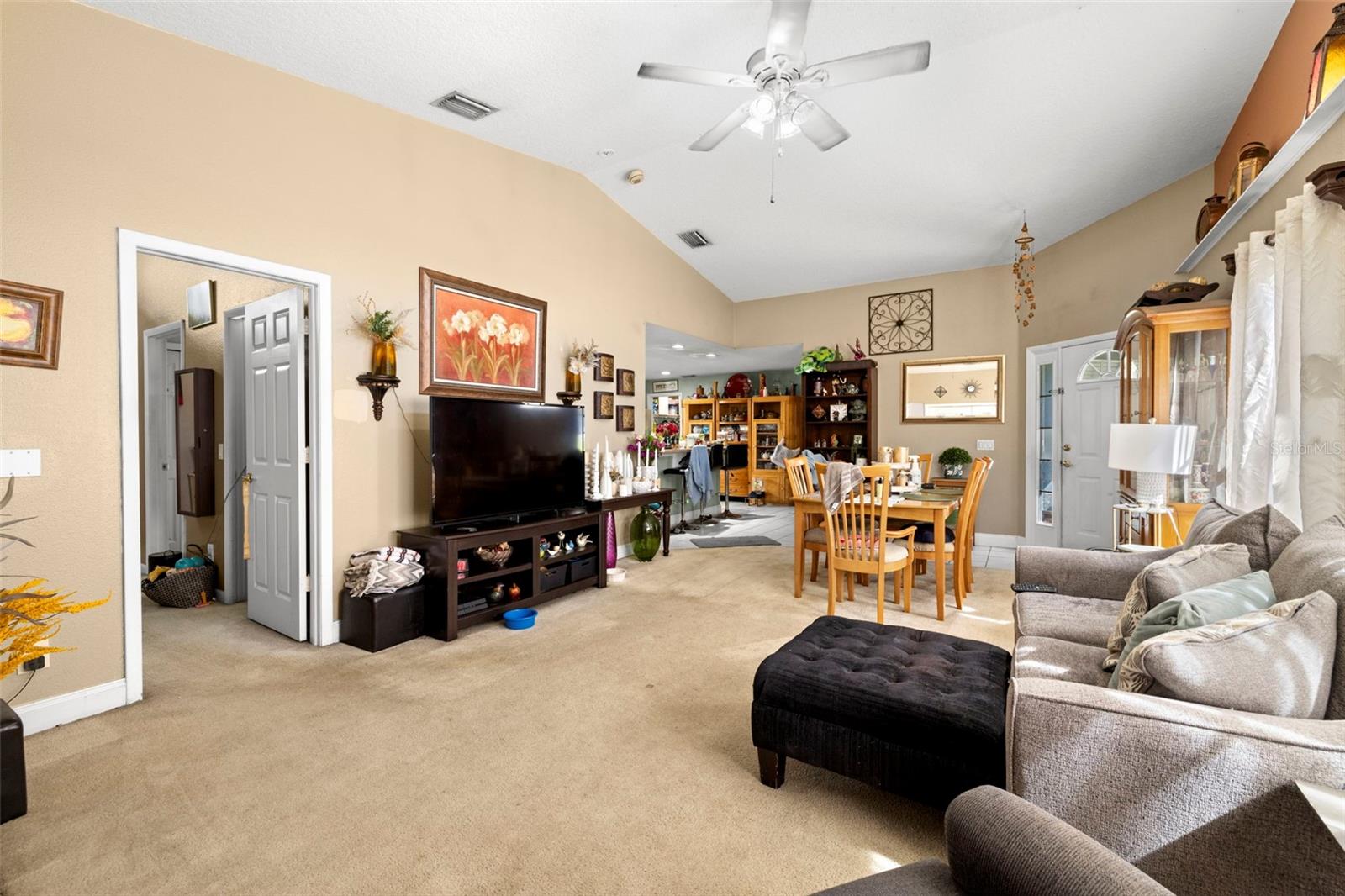 Notícias emocionantes! Incentivo ao comprador incrível de menor taxa de juros por 1 ano! Esta casa está pronta para suas novas idéias de renovação e um pouco de cuidados amorosos ~ Este lar de 3 quartos 2 banheiros One Story Home apresenta um ótimo layout aberto! Grande sala com tetos abobadados e ventilador de teto. Desfrute de relaxar perto da lareira aconchegante. Cozinha aberta com utensílios inoxidáveis, bar de café da manhã, iluminação embutida, pia dupla e uma janela do jardim também ~ O quarto primário é espaçoso e inclui janela de popa, um grande armário, um ventilador de teto e um banho de banheiro privativo. O banheiro privativo oferece uma banheira de jardim jato, chuveiro de azulejos separados e vaidade de pia dupla. A lavanderia acomoda uma lavadora e secadora de tamanho completo e oferece uma pia de lavanderia também. Garagem de 2 carros com abridor automático. Sistema de irrigação incluído. As portas francesas levam ao lanai exibido com ventilador de teto. Piso laminado nos 2º e 3º quartos. O AC instalado em 2018. O HOA é de US $ 160 por mês e inclui tinta externa da manutenção da casa e do gramado pelo HOA. Sem taxas de CDD! X Zona de inundação-Não é necessário um seguro de inundação!