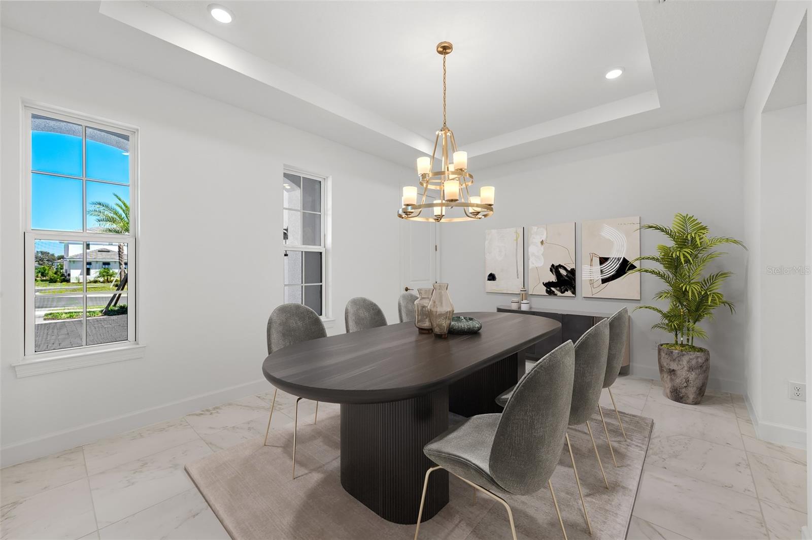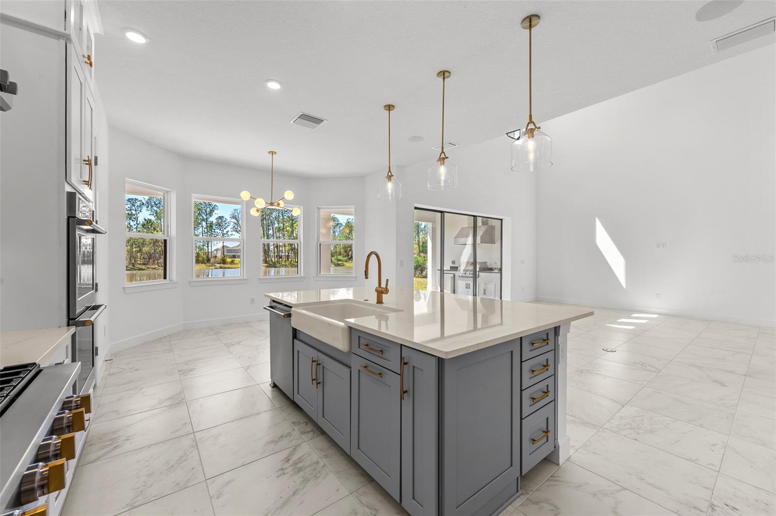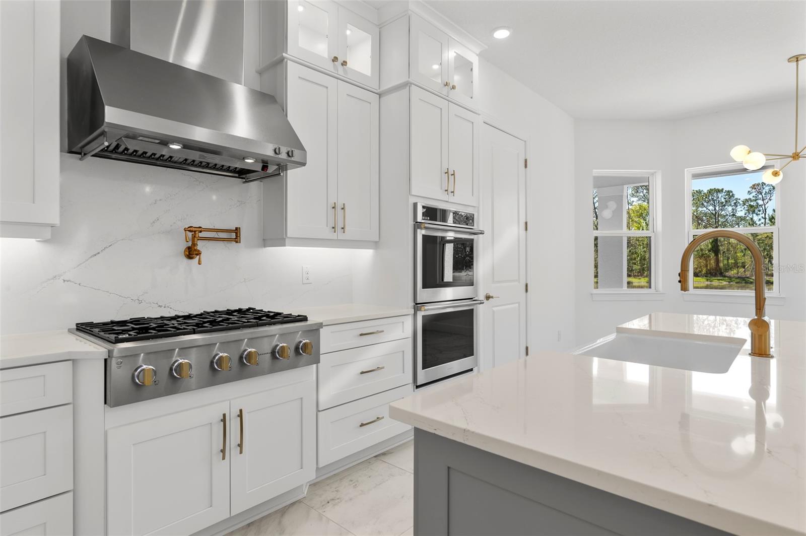 Apresentando uma residência incomparável no condomínio fechado exclusivo do River's Edge. Esta nova propriedade de construção requintada oferece seis quartos, 4,5 banheiros, garagem de três carros de grandes dimensões, escritório dedicado, sala de teatro, loft bônus com bar molhado, sala de jantar formal com despensa de mordomo e varanda de segundo andar com vista para as vistas panorâmicas. Esta casa exclusiva oferece luxo, conforto e um elevado senso de privacidade, pois repousa em um lote de canto premium dentro de um beco sem saída tranquilo e apresenta casas vizinhas mínimas ideais. Esta planta baixa de Taylor Morrison Forsyth possui vistas de lagoas ocidentais de tirar o fôlego, criando um cenário sereno e pitoresco para o pôr do sol e a vida cotidiana. Desde o momento em que você entra, você será cativado pela grandeza do vestíbulo e sala de estar abertos de dois andares, acentuados por tetos altos e portas de 8 pés, irradiando uma aura de espaço e elegância. O interior cuidadosamente projetado apresenta uma sala de jantar formal, ideal para entreter ao lado da despensa do mordomo com acesso direto à cozinha de tirar o fôlego. Você também encontrará um espaço de escritório designado com portas francesas de vidro e uma sala de mídia separada com alto-falantes de som surround embutidos e um teto abobadado otimizado para visualização do projetor. A telha de grande formato flui perfeitamente por toda a área de estar principal, levando a uma incrível cozinha aberta que é o sonho de um chef. Equipado com utensílios de aço inoxidável de monograma atualizados, uma grande ilha central com uma bela iluminação pendente, um preenchimento de panela, pia da fazenda com uma torneira sem toque e uma grande despensa, esta cozinha é tão funcional quanto requintada. A suíte primária apresenta vistas idílicas da água e inclui um banho de banho com um elegante chuveiro de vidro sem moldura, completo com chuveiro de chuva adicional, uma banheira independente e um armário de água privado. Os tetos da bandeja na suíte primária, na sala de jantar e no escritório adicionam um toque de sofisticação arquitetônica. Saia através das portas deslizantes do bolso para descobrir uma lanchonete coberta e uma cozinha ao ar livre, ideal para refeições e entretenimento ao ar livre. Um banheiro conveniente e um quarto de bônus aprimora a experiência de vida ao ar livre. O segundo nível é cuidadosamente projetado com asas de quarto de hóspedes duplas, cada uma oferecendo banhos compartilhados, garantindo privacidade e conforto para a família e os hóspedes. Uma área de bônus completa a experiência de vida no andar de cima com um bar molhado completo e meio banho adjacente, além de acesso à varanda traseira coberta. As características práticas são abundantes, incluindo sistemas de ar condicionado com zonas de zonas, um sistema de amaciador de água Culligan, sistema de áudio interno/externo e um aquecedor de água a gás sem tanque, garantindo conforto e eficiência ideais. A garagem de três carros de grandes dimensões, completa com um estacionamento adicional de carrinho de golfe, atende a todas as suas necessidades de armazenamento. A propriedade também é pré-usada para uma adição de pool, oferecendo potencial para personalização adicional. Os moradores da borda do rio desfrutam de acesso a um clube de primeira classe, piscina em estilo resort e banheira de hidromassagem, fitness center, playground, parque de cães, campo de futebol, quadra de basquete, quadras de tênis e pickleball e trilhas recreativas pacíficas. Nas proximidades, também há acesso a muitas opções de compras, restaurantes e entretenimento, incluindo as lojas da Wiregrass, a Cooper's Hawk Winery & Restaurant, as saídas premium de Tampa e, idealmente, perto das principais estradas, tornando conveniente viagens para Tampa e Tampa International Aeroporto.