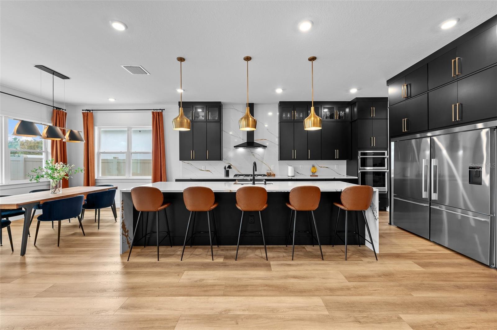 Laring Luxury Resort Pool Home na seção isolada de Robin's Cove da comunidade de Lagoon Epperson. Idealmente nomeado de cinco quartos, três e dois e dois banheiros, loft bônus, a casa da piscina de três carros é uma obra-prima de estilo e funcionalidade. Saia do seu quintal de estilo de férias particulares, com uma piscina de água salgada aquecida completa com um jato de natação Badu para natação de colo, borda de bronzeamento, cachoeira cativante e jatos de fonte e iluminação de gaiola de nebulosa de nebulosa, todos cercados por uma elegante parede de privacidade de mosaico. O coração da casa é a cozinha do chef, com o nível 4 de quartzo de nível 4 da ilha de cascata, armários de bordo elegante, fornos de convecção internos duplos com recursos de vapor e prova, um microondas de convecção com grelhar, um cozinheiro a gás e um refrigerador de 60 polegadas de estilo e estilo comercial. Uma despensa de café dedicada e uma despensa ampla e ampla oferecem amplo armazenamento. Entregue sem esforço com a cozinha ao ar livre, completa com uma churrasqueira ao ar livre do Mont Alpi, geladeira de bar e pia, acentuada por um backsplash de azulejos personalizados. A suíte primária é um retiro, com uma parede de sotaque de bom gosto, uma janela de grandes dimensões, um grande closet embutido, um chuveiro de vidro sem moldura com recurso de chuva, vaidade dupla e um armário de água separado. Desfrute de noites de cinema na sala de estar com um sistema de som surround 5.1 embutido. Additional features include dual AC systems, a built-out laundry room, a split three-car garage with four built-in overhead racks, UV protection film on windows, impact sliding glass doors, 10-foot ceilings, a water softener and filtration system, modern square baseboards, soft-close drawers, an upgraded builder option oversized window package, and a 50-gallon propane tank servicing the cooktop, grill and water heater. A famosa lagoa de cristal de Epperson compreende 7,5 acres de água azul clara, incluindo praias de areia, um bar de natação, caminhões de comida e várias atividades aquáticas. Epperson também mostra o Ultrafi, uma experiência em internet e a cabo da comunidade, luzes de rua solares da rua, caminhos de carrinho de golfe e quilômetros de trilhas. No bairro de Robin's Cove, é o Eagle Park, que inclui um clube comunitário, trilhas recreativas, estações de exercícios, parques de cães, playground e uma doca para King Lake. Esta área de crescimento fica do outro lado da rua da Kirkland Ranch Academy of Inovation e da New Kirkland Ranch K-8 School. Desfrute de acesso ao carrinho de golfe ao Publix e à Starbucks, enquanto também convenientemente menos de cinco minutos da Interestadual 75, fornecendo amplas opções de compras e refeições nas lojas de Tampa Premium, lojas de Wilegrass e Krate no Grove.