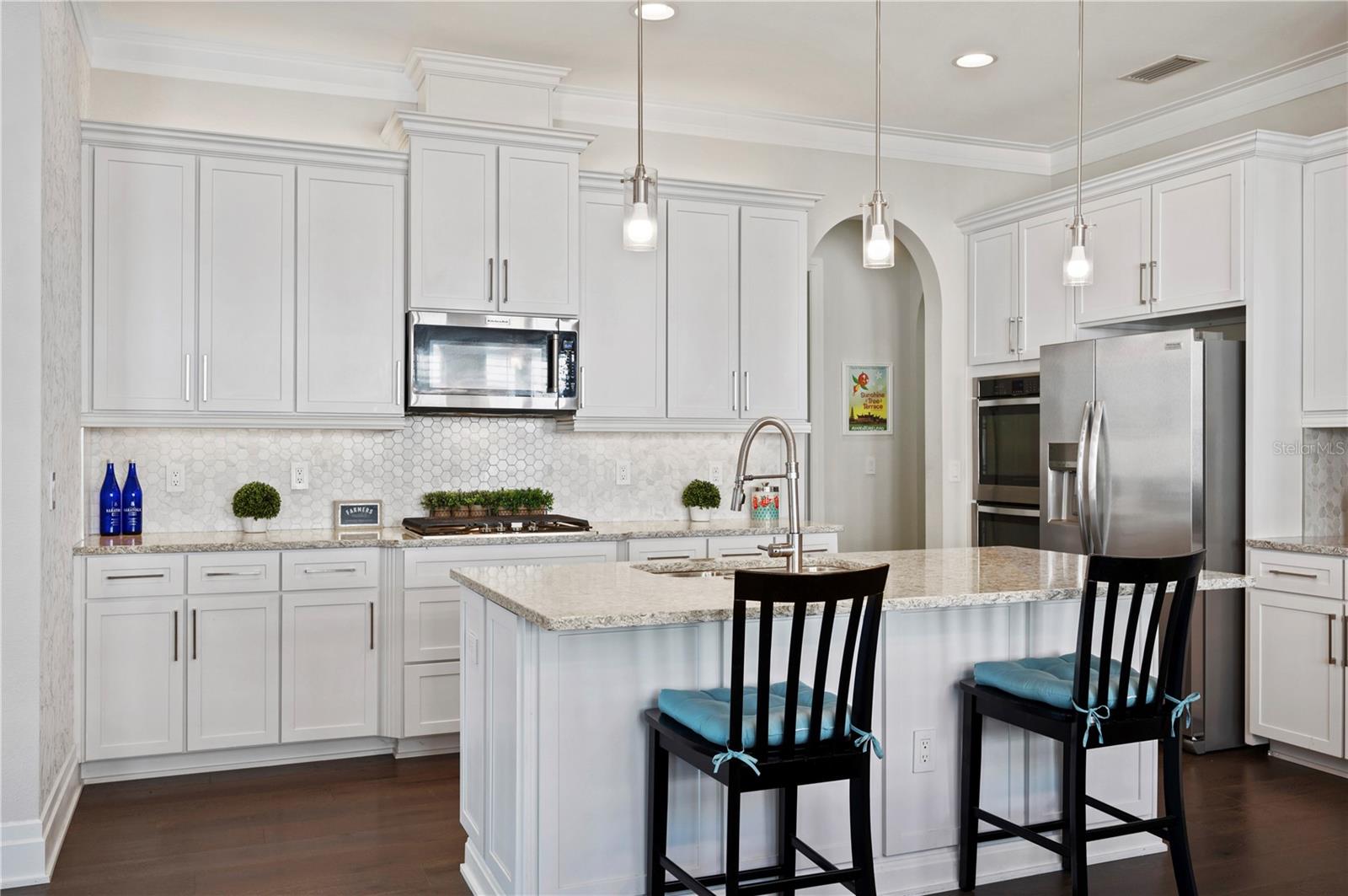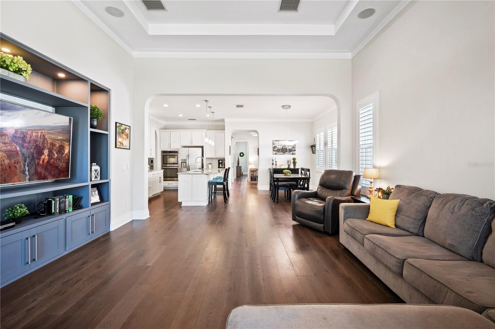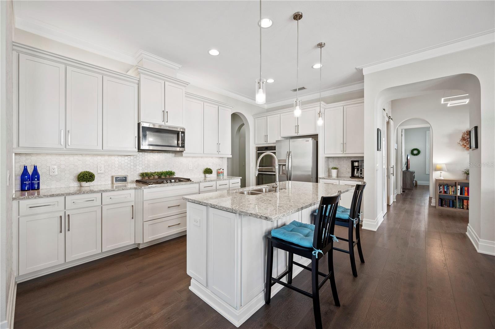 Desde o momento em que você entra, você sentirá a diferença-este incrível 2 quartos + escritório grande com armário-pode ser usado como um quarto de terceiro quarto, tetos crescentes de 10 a 14 pés, piso de madeira rica e pisos de ladrilhos, persianas personalizadas e toques de designers pensativos a cada turno. Este layout de conceito aberto é banhado em luz natural e perfeito para conforto diário e entretenimento elegante. A cozinha gourmet é o sonho de um chef, apresentando uma grande ilha, fogão a gás, fornos duplos, utensílios de aço inoxidável, armários de 42 ”e um designer backsplash. Ele flui lindamente para o jantar e a alface de vidro que lideram os alfândegas que levam o seu próprio centro de mídia de vidro. O pátio, perfeito para manhãs tranquilas com café ou reuniões de noite sob as estrelas. Para hobbies ou armazenamento. I-75/I-275, Wiregrass Mall, The Grove, Tampa Premium Outlets, escolas de primeira linha, hospitais, restaurantes e muito mais.