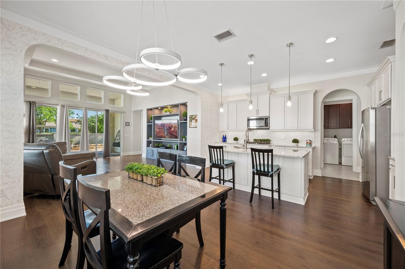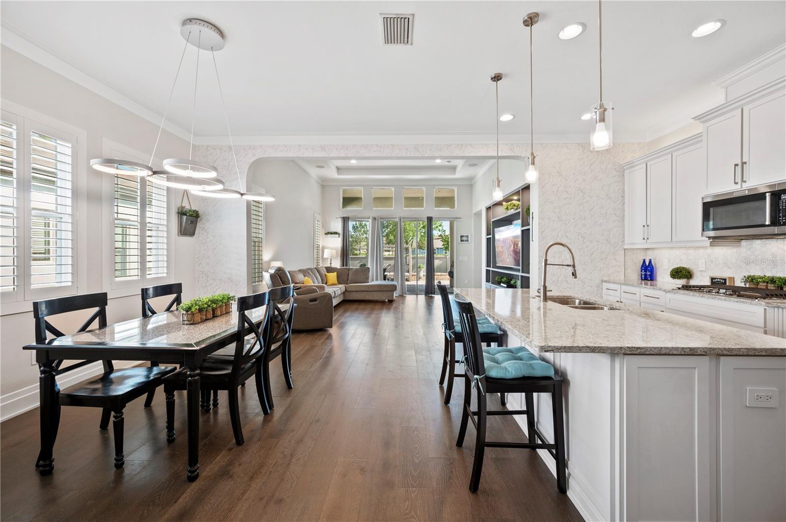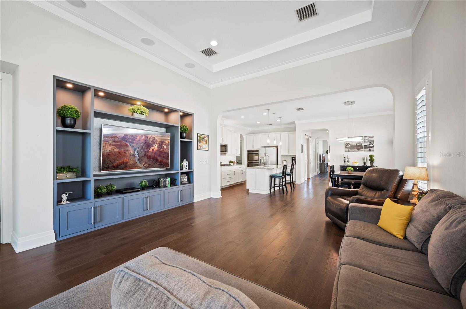 Desde o momento em que você entra, você sentirá a diferença-este incrível 2 quartos + escritório grande com armário-pode ser usado como um quarto de terceiro quarto, tetos crescentes de 10 a 14 pés, piso de madeira rica e pisos de ladrilhos, persianas personalizadas e toques de designers pensativos a cada turno. Este layout de conceito aberto é banhado em luz natural e perfeito para conforto diário e entretenimento elegante. A cozinha gourmet é o sonho de um chef, apresentando uma grande ilha, fogão a gás, fornos duplos, utensílios de aço inoxidável, armários de 42 ”e um designer backsplash. Ele flui lindamente para o jantar e a alface de vidro que lideram os alfândegas que levam o seu próprio centro de mídia de vidro. O pátio, perfeito para manhãs tranquilas com café ou reuniões de noite sob as estrelas. Para hobbies ou armazenamento. I-75/I-275, Wiregrass Mall, The Grove, Tampa Premium Outlets, escolas de primeira linha, hospitais, restaurantes e muito mais.