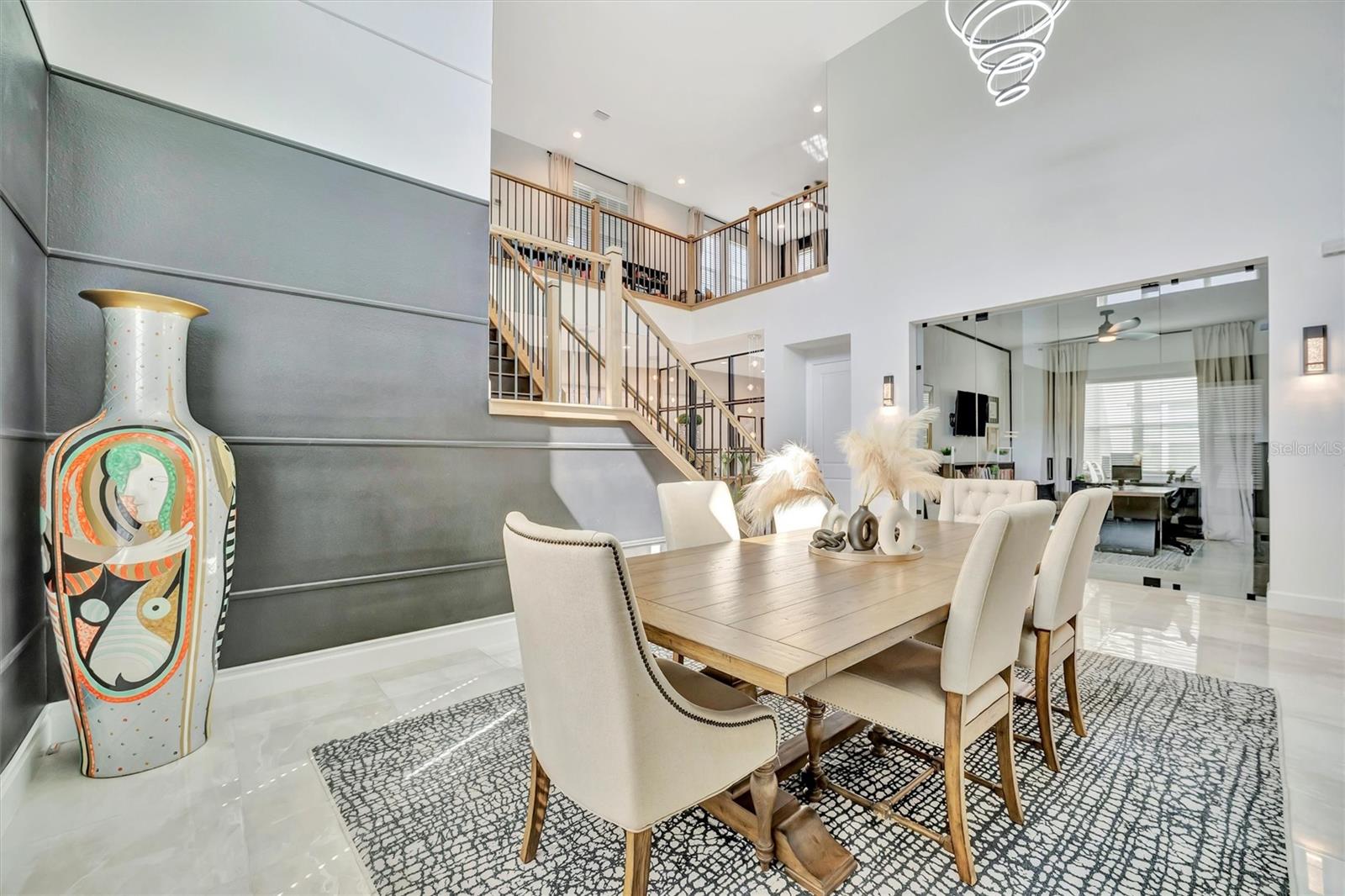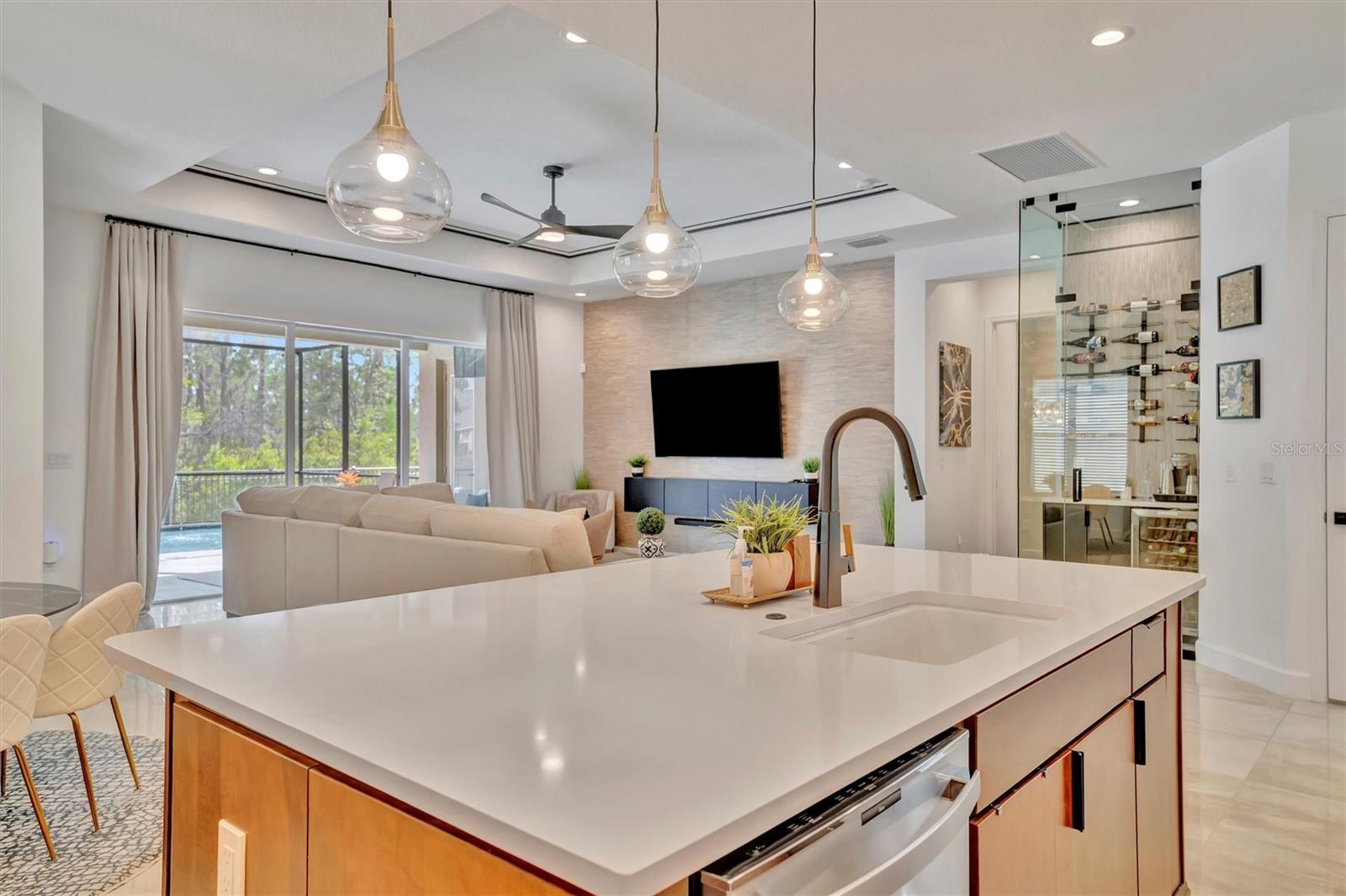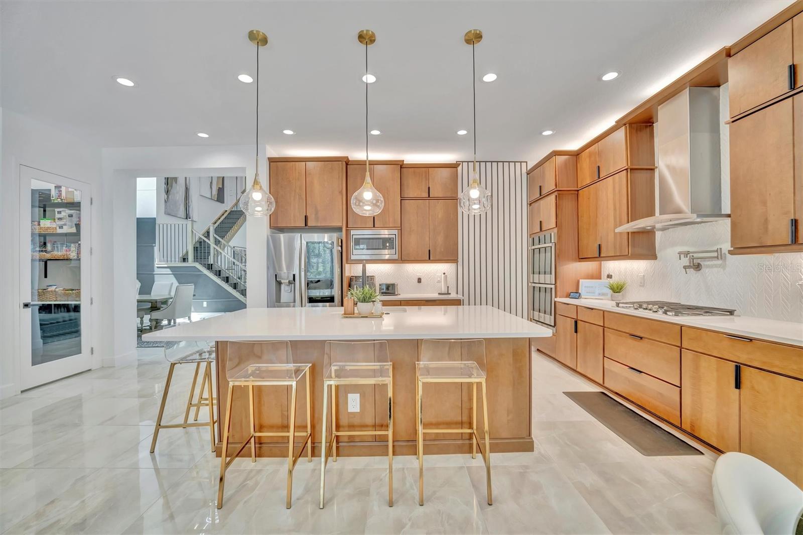Este biscoito não é cortado como o resto! Esta interpretação espetacular do popular modelo GL Homes Carson está exalando a elegância e aguardando seu novo proprietário. Esta casa de piscina de estilo executivo de 4100SF inclui 5 camas, 5 banheiros e é carregado com atualizações em abundância, incluindo um escritório separado, loft, cozinha ao ar livre e está localizada no ridículo muito procurado. Entre na entrada da porta dupla e os extensos tetos de 22 pés e ladrilhos grandes vão tirar o fôlego! O hall de entrada o recebe com a sensação de luxo e calor. Ao seguir em frente para o jantar formal com ladrilhos de mármore grande na parede, uma bela iluminação e madeira para o teto, você imagina instantaneamente que este será o espaço perfeito para reuniões. Do outro lado do espaço formal de jantar, as elegantes portas de vidro para este escritório único chamarão sua atenção imediatamente. É o espaço perfeito para quem trabalha em casa ou para quem trabalha tarde da noite. O caminho leva você à cozinha combinada, com recanto do café da manhã e sala de família com parede de destaque com papel de parede de Grasscloth, que torna o espaço perfeito para o entretenimento. Este espaço inclui fornos duplos, um fogão a 5 queimador, bancadas de mármore branco, muito armazenamento e uma despensa separada com porta de vidro! Mas isso não é tudo. Este espaço inclui um armário de vinho personalizado com armazenamento para mais de 25 garrafas, uma geladeira e uma bancada para o seu próprio bartesiano consertar o coquetel misto perfeito! Se isso não for suficiente, vá para o pátio, onde você encontrará uma piscina considerável (em comparação com outras casas do bairro;)) com o gabinete de tela para protegê -lo dos mosquitos brutais, uma cozinha decorada perfeita para um churrasco e um jardim totalmente cercado, caso você também tenha animais de estimação. O banho de piscina também fornece a conveniência de eliminar os pés molhados pela casa !! Mas não vamos esquecer a vista ... Não há vizinhos no quintal ... e uma bela vista panorâmica de uma área de conservação perfeita para desfrutar do clima da Flórida. Ao se retirar de volta para casa e entrar na suíte master, você será recebido com papel de parede de luxo que torna o espaço tão convidativo. O banho principal tem uma banheira separada, chuveiro, armário de água e armário de despensa para roupas de cama e muito armazenamento. O quarto é grande e espaçoso e também tem uma visão da área da piscina e da conservação. Neste plano dividido de quatro maneiras, você encontrará mais dois quartos no andar de cima, tanto com armários walk-in quanto muito espaço. O corrimão é de ferro forjado e os pisos nas escadas e o 2º andar são de madeira projetada. Um quarto no andar de cima é um privilégio que oferece o conforto e a privacidade perfeitos para os hóspedes. O 5º quarto é atualmente usado como uma sala de mídia/jogo separada, mas também há um loft separado, perfeito para relaxar informal e uma bela vista do primeiro andar. Descendo as escadas, você encontrará outra sala e uma lavanderia separada que inclui armários e armazenamento atualizados para manter sua lavanderia perfeitamente organizada. A pequena garagem atua como armazenamento e uma academia, as calhas foram instaladas, as pavimentadoras foram seladas e o HOA lida com a manutenção do gramado !!! Se você gosta de comodidades, a comunidade também o tem para você! Um luxuoso clube disponível para aluguel, atividades contínuas e caminhão de alimentos, quadras de tênis, quadras de basquete/vôlei, almofada molhada para os pequenos e piscina grande, playground e muito mais! Além disso, você está localizado a cerca de 10 minutos da I-75, I-275, 301, Morris Bridge e The Krates! Não durma neste. É um corte acima do resto!