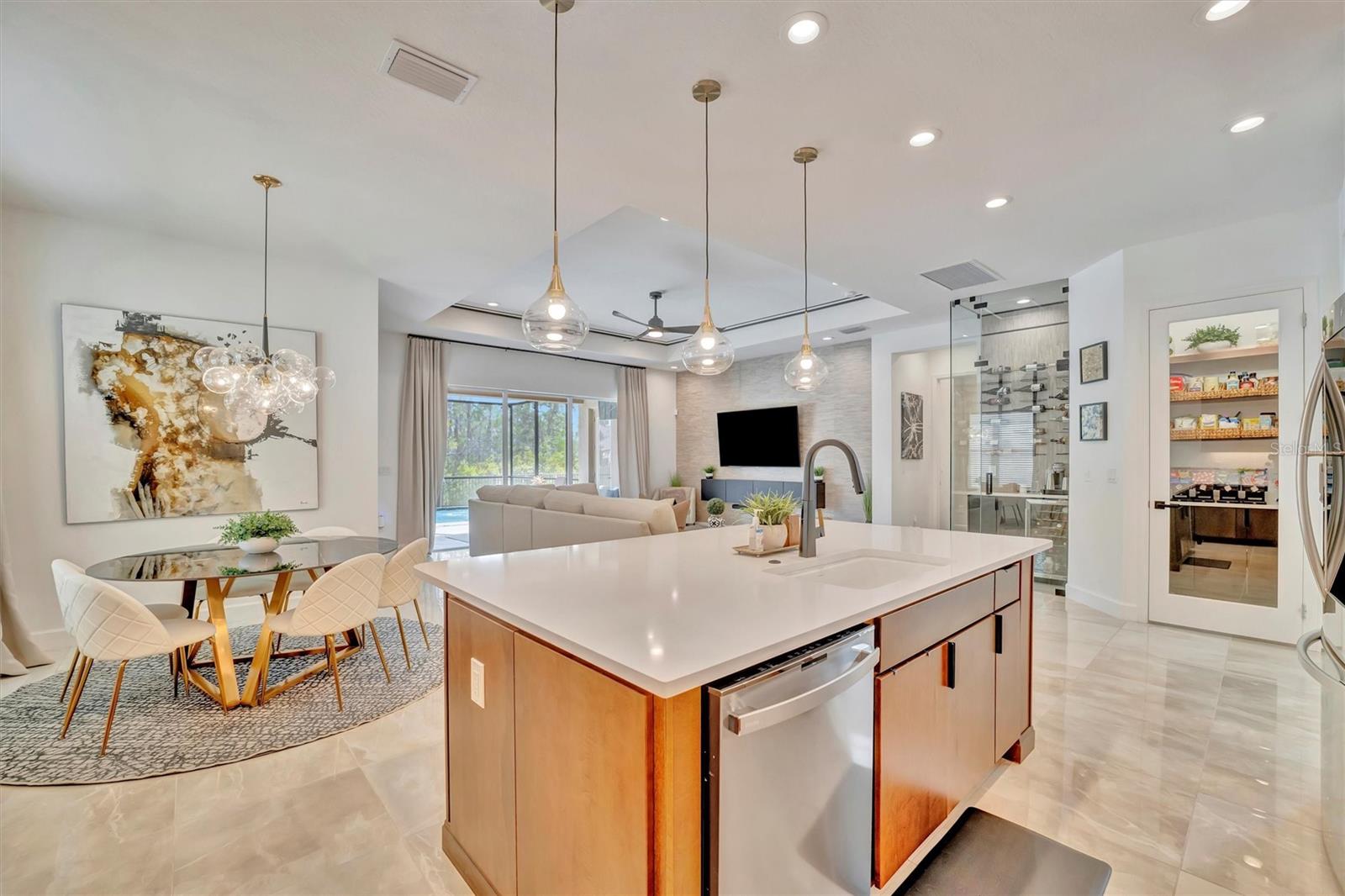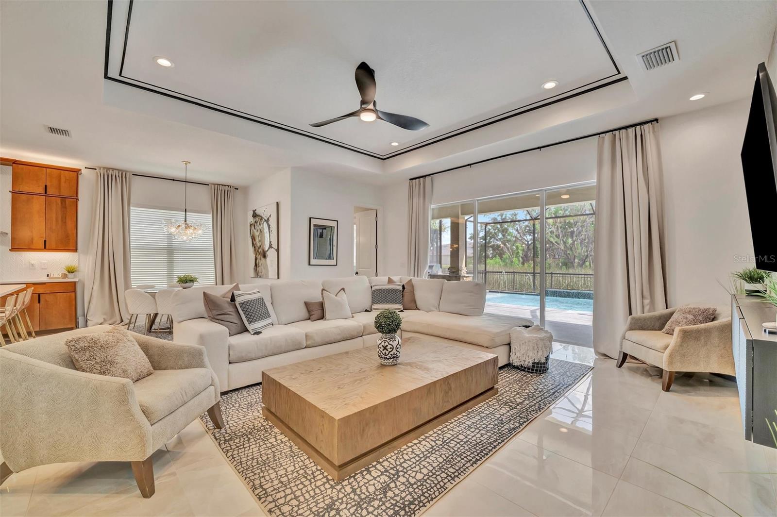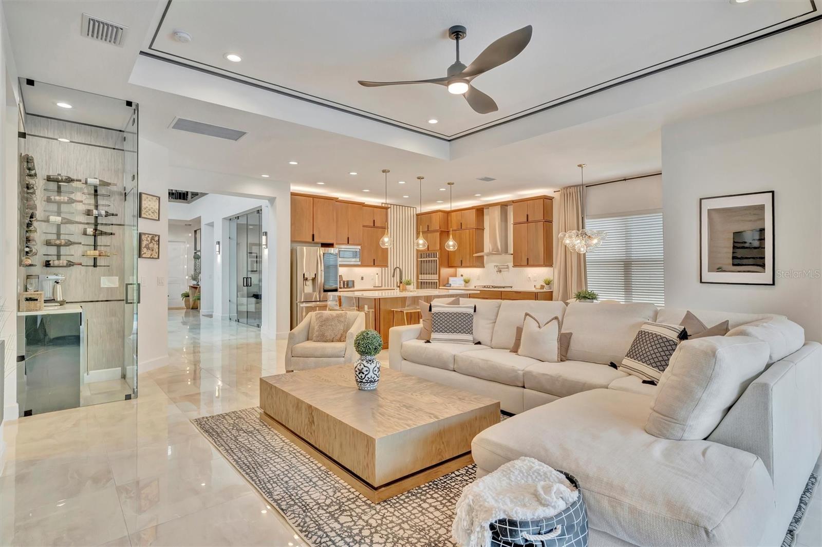 Este biscoito não é cortado como o resto! Esta interpretação espetacular do popular modelo GL Homes Carson está exalando a elegância e aguardando seu novo proprietário. Esta casa de piscina de estilo executivo de 4100SF inclui 5 camas, 5 banheiros e é carregado com atualizações em abundância, incluindo um escritório separado, loft, cozinha ao ar livre e está localizada no ridículo muito procurado. Entre na entrada da porta dupla e os extensos tetos de 22 pés e ladrilhos grandes vão tirar o fôlego! O hall de entrada o recebe com a sensação de luxo e calor. Ao seguir em frente para o jantar formal com ladrilhos de mármore grande na parede, uma bela iluminação e madeira para o teto, você imagina instantaneamente que este será o espaço perfeito para reuniões. Do outro lado do espaço formal de jantar, as elegantes portas de vidro para este escritório único chamarão sua atenção imediatamente. É o espaço perfeito para quem trabalha em casa ou para quem trabalha tarde da noite. O caminho leva você à cozinha combinada, com recanto do café da manhã e sala de família com parede de destaque com papel de parede de Grasscloth, que torna o espaço perfeito para o entretenimento. Este espaço inclui fornos duplos, um fogão a 5 queimador, bancadas de mármore branco, muito armazenamento e uma despensa separada com porta de vidro! Mas isso não é tudo. Este espaço inclui um armário de vinho personalizado com armazenamento para mais de 25 garrafas, uma geladeira e uma bancada para o seu próprio bartesiano consertar o coquetel misto perfeito! Se isso não for suficiente, vá para o pátio, onde você encontrará uma piscina considerável (em comparação com outras casas do bairro;)) com o gabinete de tela para protegê -lo dos mosquitos brutais, uma cozinha decorada perfeita para um churrasco e um jardim totalmente cercado, caso você também tenha animais de estimação. O banho de piscina também fornece a conveniência de eliminar os pés molhados pela casa !! Mas não vamos esquecer a vista ... Não há vizinhos no quintal ... e uma bela vista panorâmica de uma área de conservação perfeita para desfrutar do clima da Flórida. Ao se retirar de volta para casa e entrar na suíte master, você será recebido com papel de parede de luxo que torna o espaço tão convidativo. O banho principal tem uma banheira separada, chuveiro, armário de água e armário de despensa para roupas de cama e muito armazenamento. O quarto é grande e espaçoso e também tem uma visão da área da piscina e da conservação. Neste plano dividido de quatro maneiras, você encontrará mais dois quartos no andar de cima, tanto com armários walk-in quanto muito espaço. O corrimão é de ferro forjado e os pisos nas escadas e o 2º andar são de madeira projetada. Um quarto no andar de cima é um privilégio que oferece o conforto e a privacidade perfeitos para os hóspedes. O 5º quarto é atualmente usado como uma sala de mídia/jogo separada, mas também há um loft separado, perfeito para relaxar informal e uma bela vista do primeiro andar. Descendo as escadas, você encontrará outra sala e uma lavanderia separada que inclui armários e armazenamento atualizados para manter sua lavanderia perfeitamente organizada. A pequena garagem atua como armazenamento e uma academia, as calhas foram instaladas, as pavimentadoras foram seladas e o HOA lida com a manutenção do gramado !!! Se você gosta de comodidades, a comunidade também o tem para você! Um luxuoso clube disponível para aluguel, atividades contínuas e caminhão de alimentos, quadras de tênis, quadras de basquete/vôlei, almofada molhada para os pequenos e piscina grande, playground e muito mais! Além disso, você está localizado a cerca de 10 minutos da I-75, I-275, 301, Morris Bridge e The Krates! Não durma neste. É um corte acima do resto!