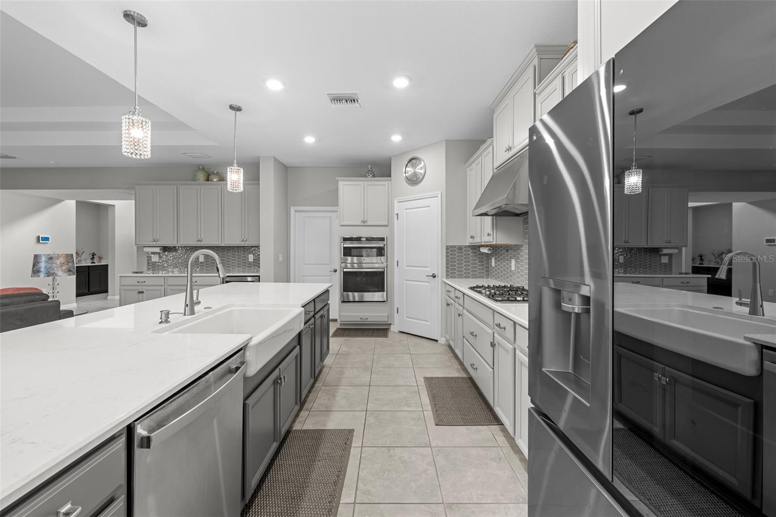 Bem -vindo ao pouso no rio em Wesley Chapel! Apresentando a tortola de Taylor Morrison-uma casa meticulosamente projetada de 5 quartos e 4,5 banheiros com 3.461 pés quadrados de espaço de vida refinado. Entre pelas grandes portas duplas em um hall de entrada de dois andares que prepara o cenário para esta planta brilhante e aberta. No coração da casa, há uma espaçosa sala de reuniões, acentuada por portas de vidro deslizantes de bolso atualizadas que se abrem para a Lanai, tanto da sala de reuniões quanto da Dinette-ideal para a vida na Flórida em interior. A cozinha gourmet possui uma ilha de grandes dimensões, despensa, barra seca/úmida, armários abundantes, fogão a gás atualizado com capuz e fornos de parede embutidos-todos conectados perfeitamente à sala de jantar e áreas de estar. A suíte do proprietário do primeiro andar oferece um retiro tranquilo com um luxuoso banho privativo, incluindo uma banheira de imersão, chuveiro inspirado em spa, vaidades duplas, armário de água privado e um grande armário. Uma suíte de convidado com banho privativa também está no nível principal - perfeito para os visitantes. No andar de cima inclui três quartos adicionais-um com seu próprio banho de suíte e dois compartilhando um banheiro de pia dupla-todos com armários walk-in. Uma espaçosa sala de jogos completa o andar de cima, ideal para entreter, relaxar ou trabalhar/estudar. O River Landing é um condomínio fechado que oferece comodidades no estilo resort no River Club-incluindo uma piscina com cabanas cobertas, centro de fitness de 24 horas, quadras esportivas, campos de bola, trilhas e muito mais. A poucos minutos dos pontos de venda premium de Tampa, restaurantes, hospitais com melhor classificação e com fácil acesso ao centro de Tampa e ao aeroporto TPA. Aproveite a mistura perfeita de luxo e conveniência em uma das comunidades mais desejáveis da Wesley Chapel.
