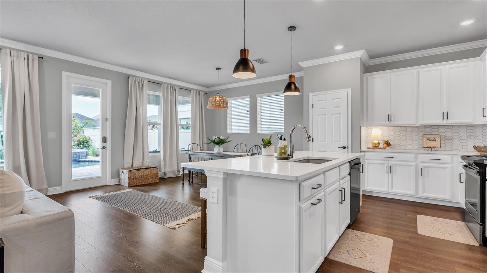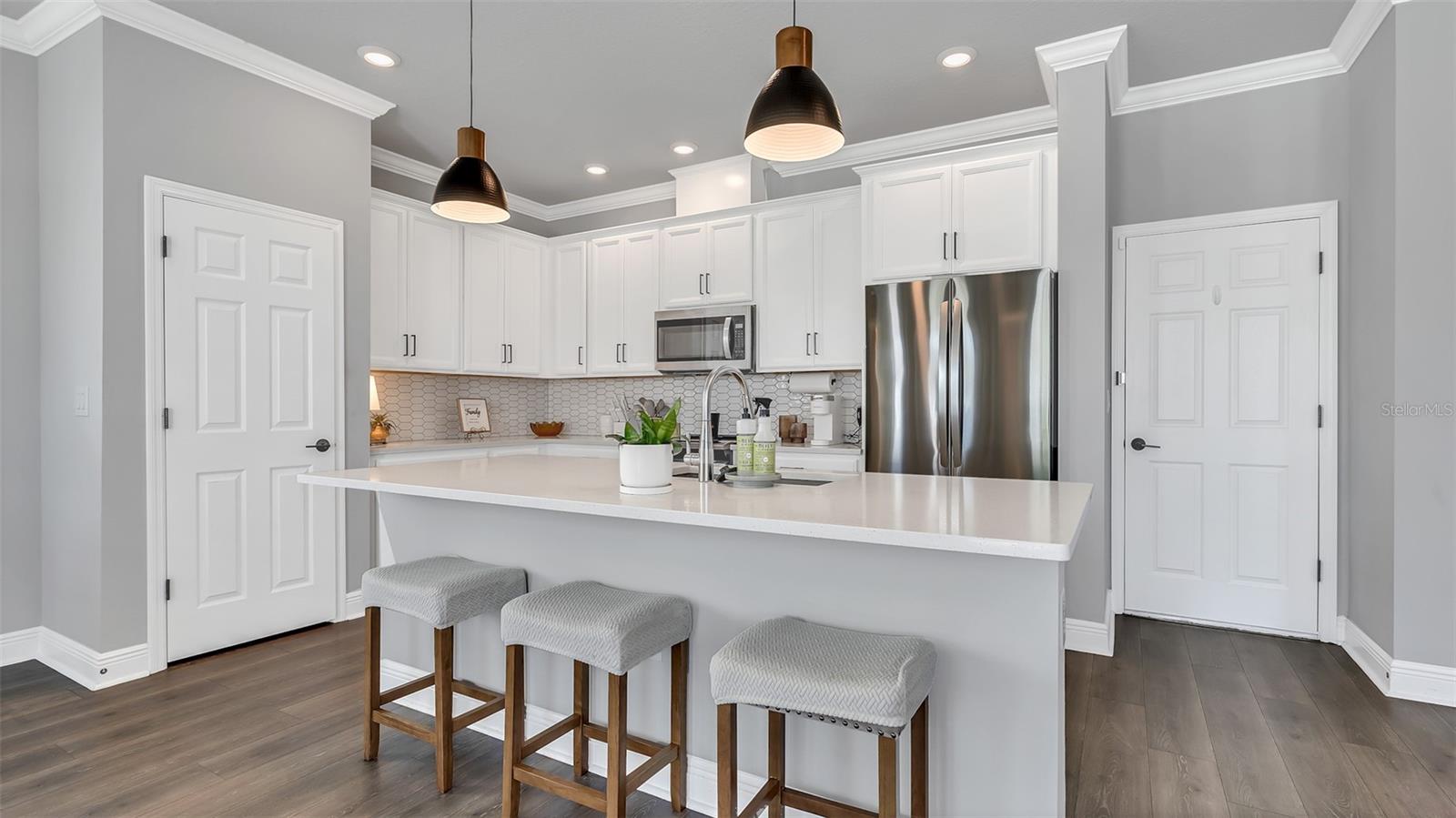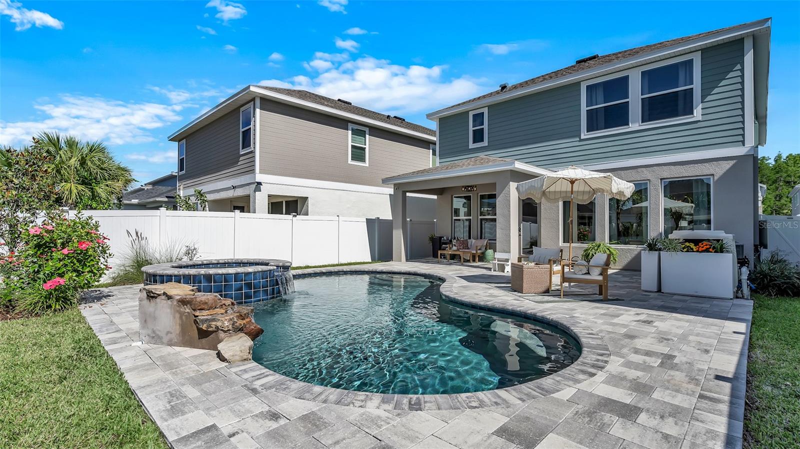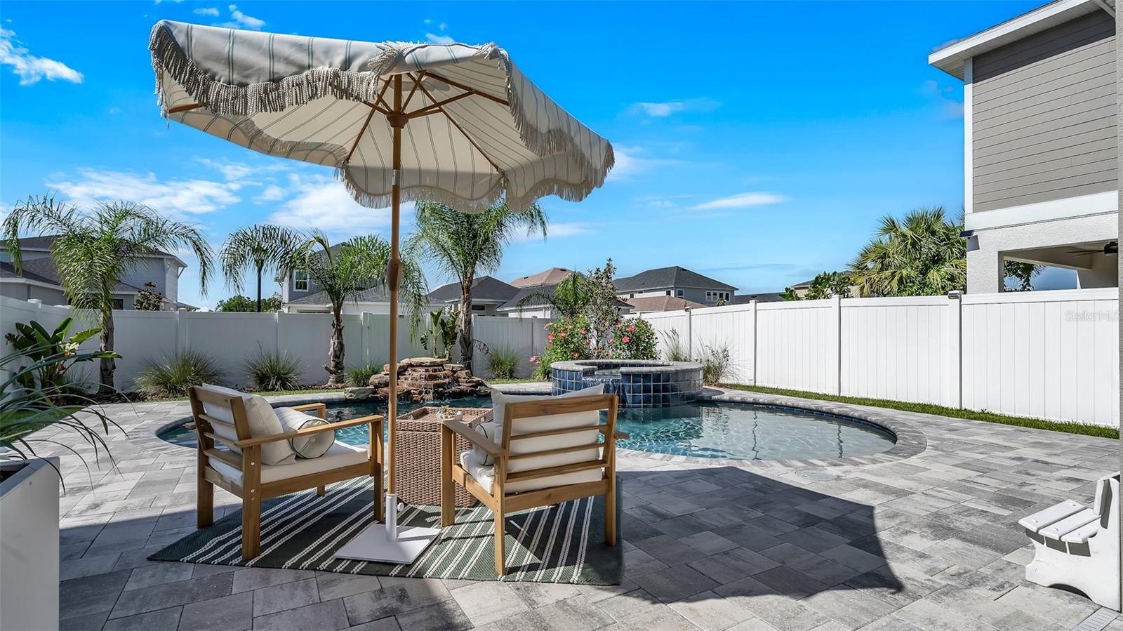 Lindo 3 Br, 2,5 BA, garagem de 2 carros com piscina de água salgada + casa de spa, localizada na comunidade de candidatos altamente procurada em Wesley Chapel. Toneladas de atualizações, incluindo uma lareira elétrica recém -instalada com manto personalizada de madeira e estantes de livros! Construído em 2021, por David Weekly Homes. Essa beleza de 2 andares possui 2.274 pés quadrados, oferece uma varanda da frente. Planta de piso de conceito aberto, sem tapete, tetos altos, janelas grandes, oferecendo muita luz natural e molduras elegantes da coroa no primeiro andar. O primeiro andar também possui um banho ½ com acessórios atualizados. Uma cozinha totalmente gourmet com utensílios de aço inoxidável, uma retirada de lixo escondida, bancadas em granito, uma ilha de grandes dimensões e uma pia profunda perfeita para entretenimento. Iluminação moderna sobre a mesa de jantar e o bar. Luzes de escurecimento na sala de estar. Saindo para o lanai coberto, você verá um quintal lindamente paisagístico que é totalmente cercado com um portão se abrindo para estacionamento adicional na rua. A piscina de água salgada oferece uma cachoeira de rocha personalizada para relaxar nas noites quentes de verão. A paisagem tropical inclui belas palmeiras. Subindo as escadas, você será recebido por um espaçoso loft/escritório/academia que está pronto para você fazer o seu! A barra seca (logo após o loft) inclui armários de vidro, recorte personalizado para frigoneral/refrigerador de vinho e gavetas adicionais para armazenamento. Em seguida, você encontrará dois quartos espaçosos com um banheiro no meio. Com a lavanderia do outro lado do caminho. A lavanderia inclui espaço para dobrar e uma pia. Entrando na suíte master, você verá grandes janelas olhando para o lindo oásis da piscina abaixo. Iluminação mais escura para definir um clima relaxante. O espaçoso banheiro privativo privado possui bancadas de quartzo com pias duplas, um chuveiro e um banheiro separado com armário de linho. O armário personalizado do seu sonho aguarda ... com muito espaço de gaveta, prateleiras e prateleiras. E se você está procurando armazenamento, não procure mais, não! Esta casa também possui muito espaço de armazenamento com armários Hall, uma despensa, prateleiras de armazenamento de garagem e um armário de armazenamento abaixo da escada. Não perca a chance de conferir esta linda casa em uma comunidade que parece ser direta de um livro de histórias. O parque de permissão inclui: uma piscina comunitária, parque de cães, playground, calçadas e é dividida em escolas de primeira classificação, escola primária de arame, Dr. John Long Middle School e Wiregrass Ranch High School! Perto do Wiregrass Mall, muitos restaurantes e fácil acesso às principais rodovias, SR-54, SR-56 e I-75!