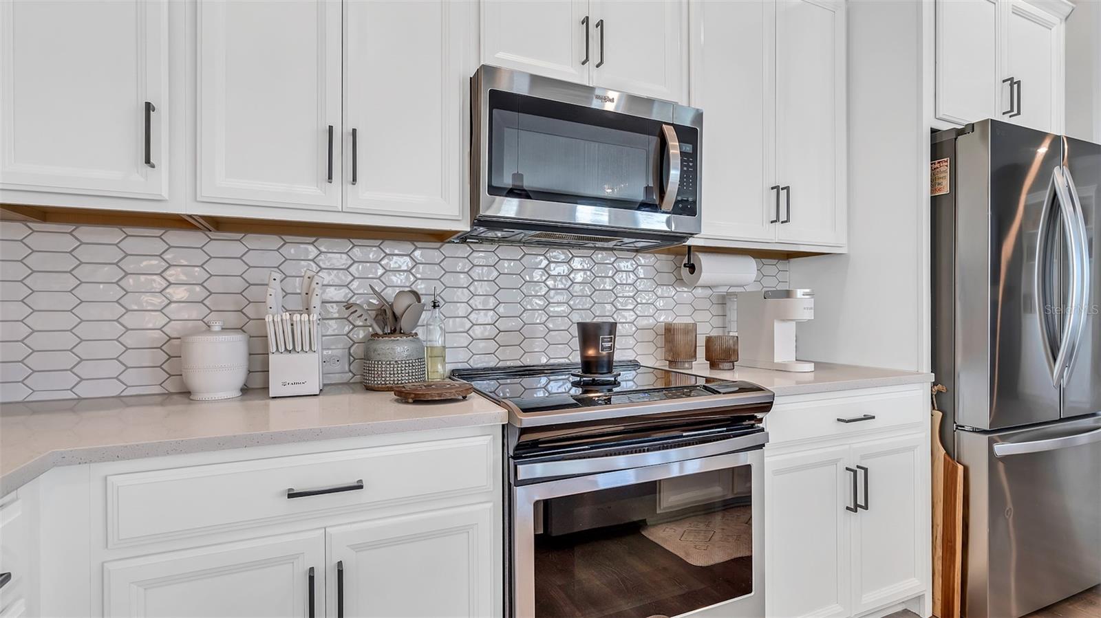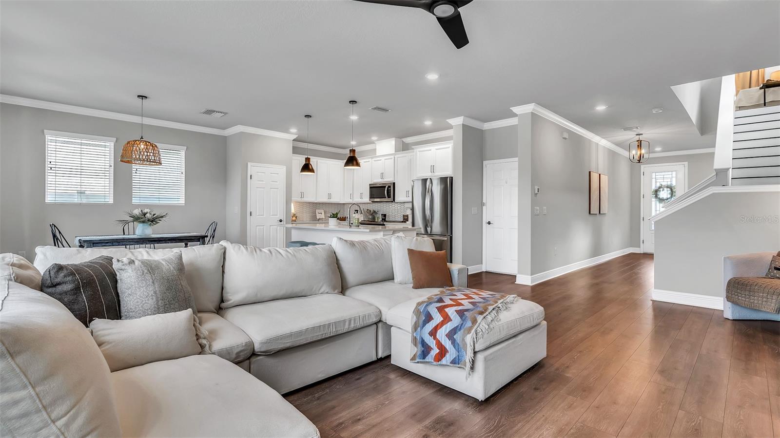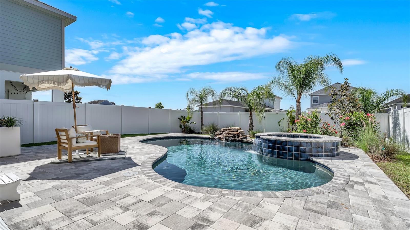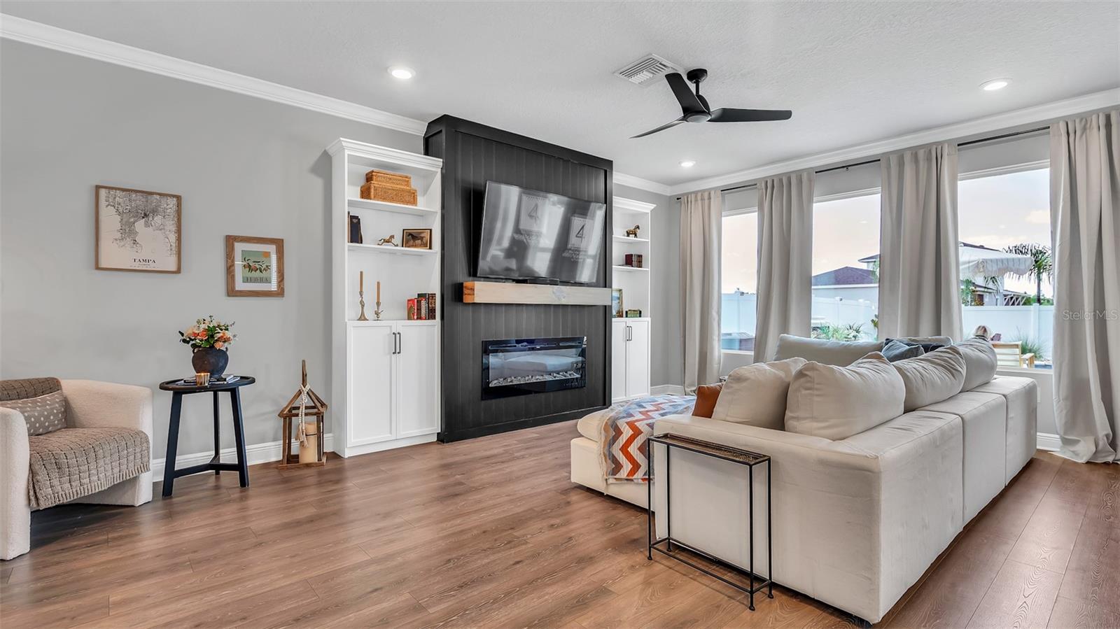 Lindo 3 Br, 2,5 BA, garagem de 2 carros com piscina de água salgada + casa de spa, localizada na comunidade de candidatos altamente procurada em Wesley Chapel. Toneladas de atualizações, incluindo uma lareira elétrica recém -instalada com manto personalizada de madeira e estantes de livros! Construído em 2021, por David Weekly Homes. Essa beleza de 2 andares possui 2.274 pés quadrados, oferece uma varanda da frente. Planta de piso de conceito aberto, sem tapete, tetos altos, janelas grandes, oferecendo muita luz natural e molduras elegantes da coroa no primeiro andar. O primeiro andar também possui um banho ½ com acessórios atualizados. Uma cozinha totalmente gourmet com utensílios de aço inoxidável, uma retirada de lixo escondida, bancadas em granito, uma ilha de grandes dimensões e uma pia profunda perfeita para entretenimento. Iluminação moderna sobre a mesa de jantar e o bar. Luzes de escurecimento na sala de estar. Saindo para o lanai coberto, você verá um quintal lindamente paisagístico que é totalmente cercado com um portão se abrindo para estacionamento adicional na rua. A piscina de água salgada oferece uma cachoeira de rocha personalizada para relaxar nas noites quentes de verão. A paisagem tropical inclui belas palmeiras. Subindo as escadas, você será recebido por um espaçoso loft/escritório/academia que está pronto para você fazer o seu! A barra seca (logo após o loft) inclui armários de vidro, recorte personalizado para frigoneral/refrigerador de vinho e gavetas adicionais para armazenamento. Em seguida, você encontrará dois quartos espaçosos com um banheiro no meio. Com a lavanderia do outro lado do caminho. A lavanderia inclui espaço para dobrar e uma pia. Entrando na suíte master, você verá grandes janelas olhando para o lindo oásis da piscina abaixo. Iluminação mais escura para definir um clima relaxante. O espaçoso banheiro privativo privado possui bancadas de quartzo com pias duplas, um chuveiro e um banheiro separado com armário de linho. O armário personalizado do seu sonho aguarda ... com muito espaço de gaveta, prateleiras e prateleiras. E se você está procurando armazenamento, não procure mais, não! Esta casa também possui muito espaço de armazenamento com armários Hall, uma despensa, prateleiras de armazenamento de garagem e um armário de armazenamento abaixo da escada. Não perca a chance de conferir esta linda casa em uma comunidade que parece ser direta de um livro de histórias. O parque de permissão inclui: uma piscina comunitária, parque de cães, playground, calçadas e é dividida em escolas de primeira classificação, escola primária de arame, Dr. John Long Middle School e Wiregrass Ranch High School! Perto do Wiregrass Mall, muitos restaurantes e fácil acesso às principais rodovias, SR-54, SR-56 e I-75!
