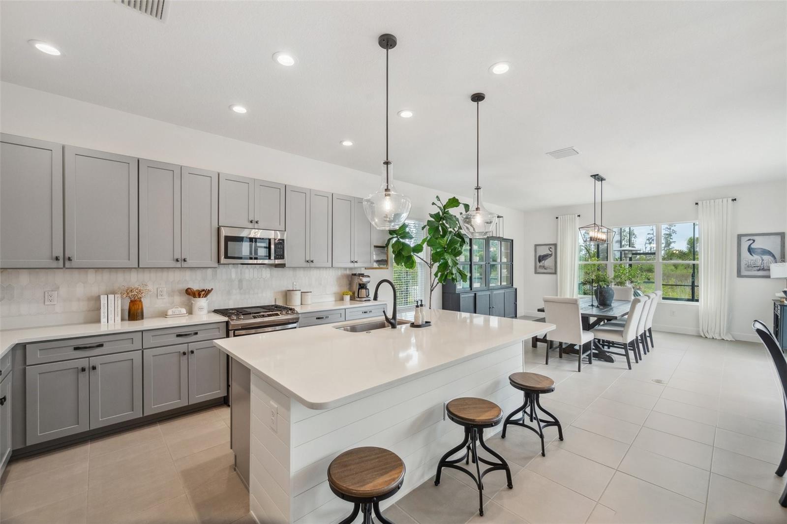 Entre no luxo moderno com esta extraordinária casa de 6 quartos e 5 banheiros na altamente procurada comunidade Winding Ridge da Wesley Chapel. Projetado para impressionar a cada turno, esta residência de dois anos oferece mais de 4.000 pés quadrados de espaço elegante que combina perfeitamente estilo, funcionalidade e conforto. A elevação impressionante de pedra, a entrada de automóveis expandida e a entrada de portas duplas criadas criam uma primeira impressão inesquecível, preparando o cenário para os recursos notáveis que aguardam dentro. Após a entrada, você é recebido por uma atmosfera brilhante e convidativa, aprimorada por um layout cuidadosamente projetado. As salas de vida e jantar formais oferecem o cenário perfeito para entretenimento, enquanto o espaçoso quarto da família convida o relaxamento e a conexão. A cozinha gourmet é um verdadeiro showstopper, exibindo armários de grife, uma grande ilha acentuada com shiplap, bancadas de quartzo e iluminação pendente personalizada, que é o sonho de um artista e o deleite de um chef. No andar de cima, um loft versátil oferece espaço adicional, enquanto a luxuosa suíte primária oferece um retiro privado completo com um banheiro na suíte e acabamentos elegantes. Dois quartos adicionais no andar de cima apresentam seus próprios banheiros em suíte, criando acomodações confortáveis para a família e os hóspedes. Mais dois quartos compartilham um banheiro lindamente decorado, e um quarto e um banheiro no primeiro andar oferecem opções de vida flexíveis para visitantes ou vida multigeracional. Saia para abraçar a Flórida que vive no seu melhor. A piscina exibida com uma plataforma solar é o lugar perfeito para relaxar e descontrair, tudo no cenário de uma visão tranquila de conservação que garante privacidade e serenidade. Um pátio espaçoso oferece muito espaço para entretenimento, criando uma experiência perfeita para a vida inteira outdoor. Os recursos adicionais incluem uma garagem de três carros, calhas de chuva atualizadas, pisos de luxo no andar de cima e acabamentos de grife personalizados por toda parte, todos mantidos meticulosamente com o mais alto padrão. A Winding Ridge oferece um estilo de vida no estilo resort com um clube de última geração, piscina em estilo resort, quadras de tênis e pickleball, basquete e muito mais, proporcionando uma experiência de vida incomparável em uma das comunidades de maior prestígio da Wesley Chapel. Esta casa pronta para baixo representa a melhor mistura de luxo, conforto e estilo de vida. Não perca a oportunidade de possuir essa propriedade excepcional em um dos bairros mais desejáveis da região. Aproveite o vídeo personalizado e os links 3D Tour.